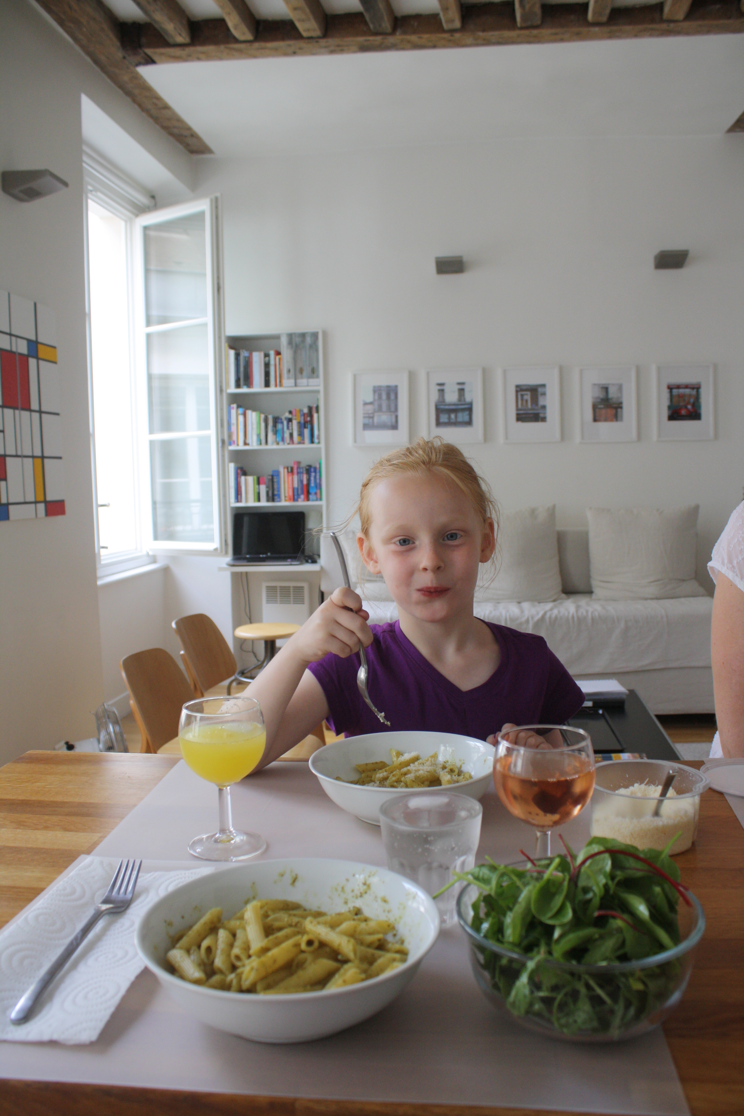 After we journeyed back to the apartment, we were literally dead tired.  Our bodies were shutting down…so we decided to make a quick dinner at home and hit the hay.  Lena was in bed by 7:30PM and Josette soon after.  As soon as I finish this post, I will be right behind them.