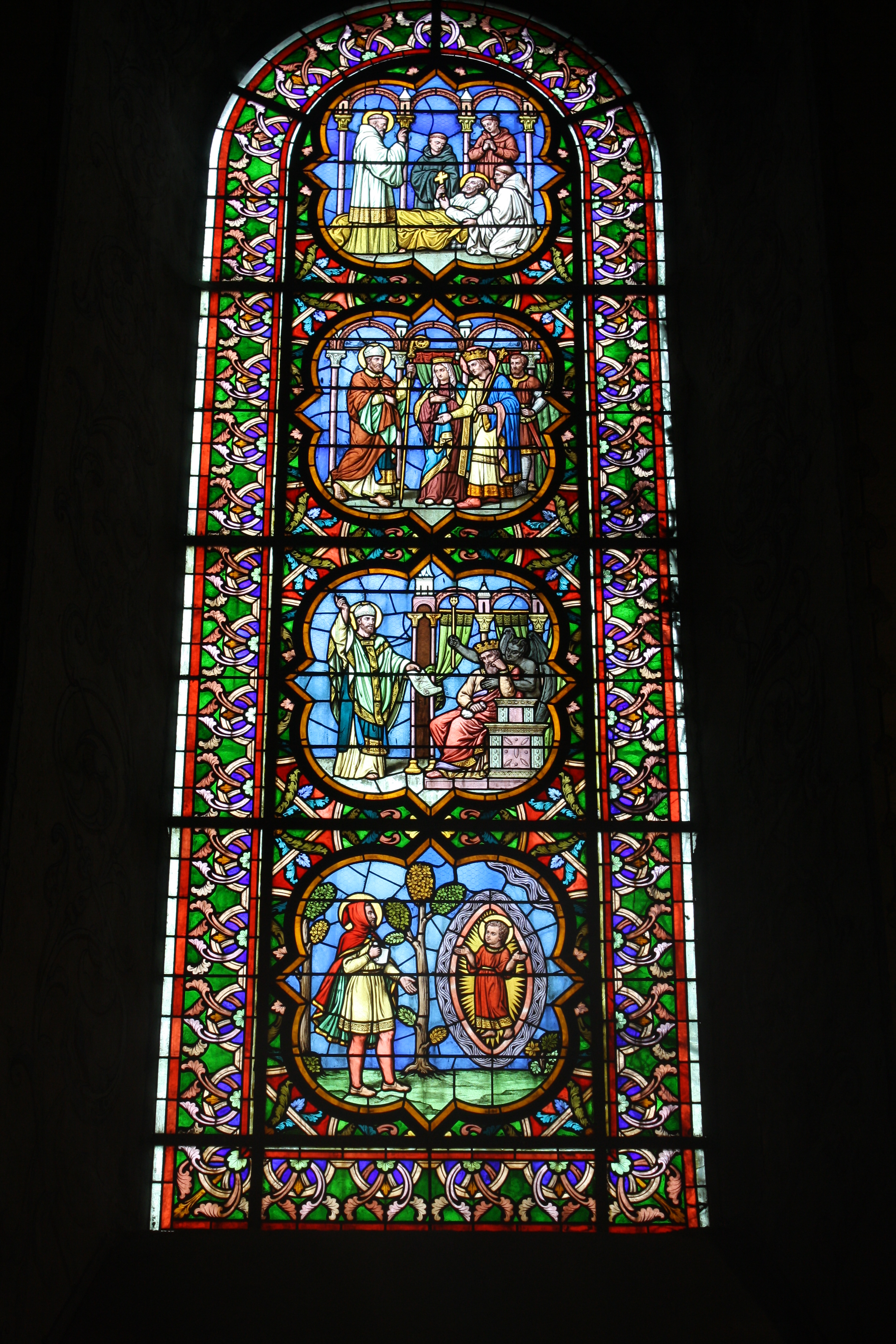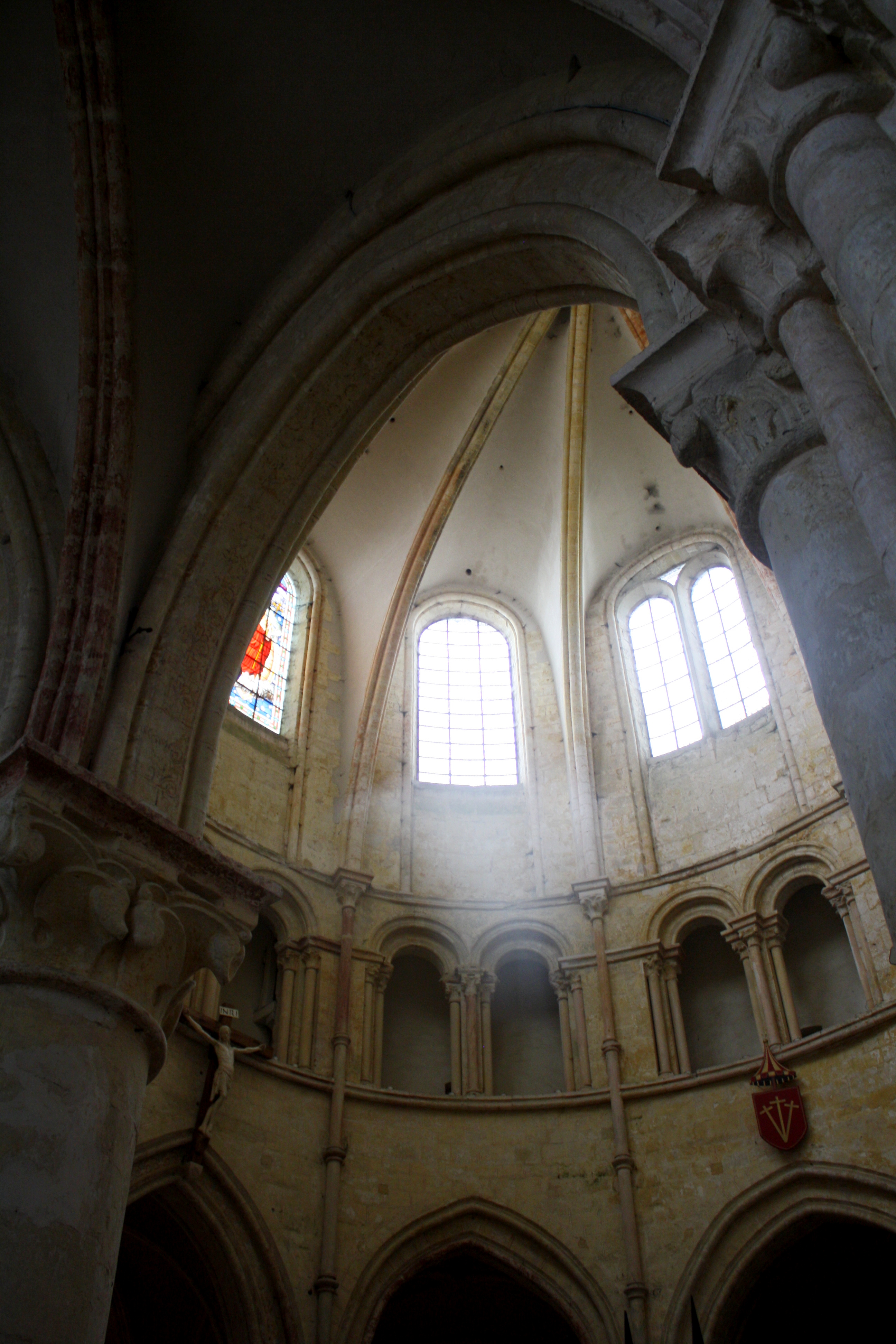 Next up, we walked down to the Church at St. Quiriace, which was begun in 1160 by King Henri I….but over the centuries, parts of the church were reconstructed, renovated, and it was practically destroyed in the French Revolution…but what remains is amazing.  From the outside it is quite plain, dark and dreary looking.  Apparently, the $$ to fancy up the exterior never came thru, so it was left very simple.  But once you step inside, prepare for your jaw to drop.  It was beautiful, surprisingly large.