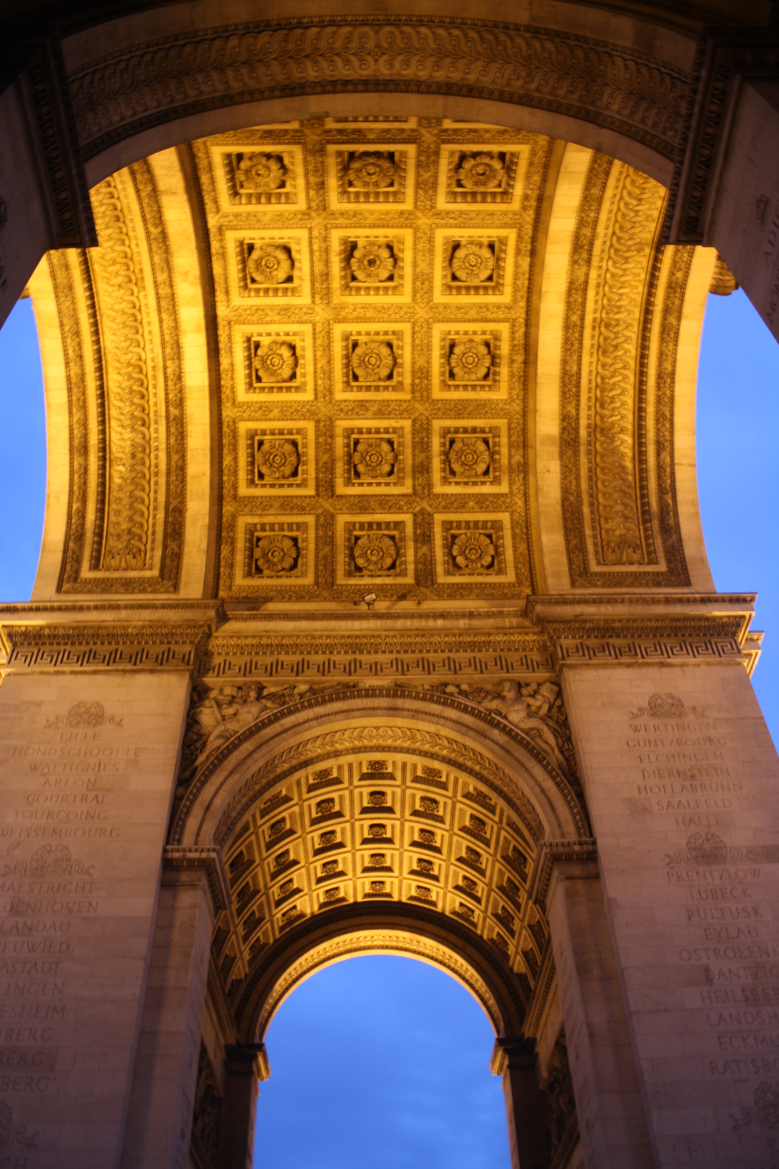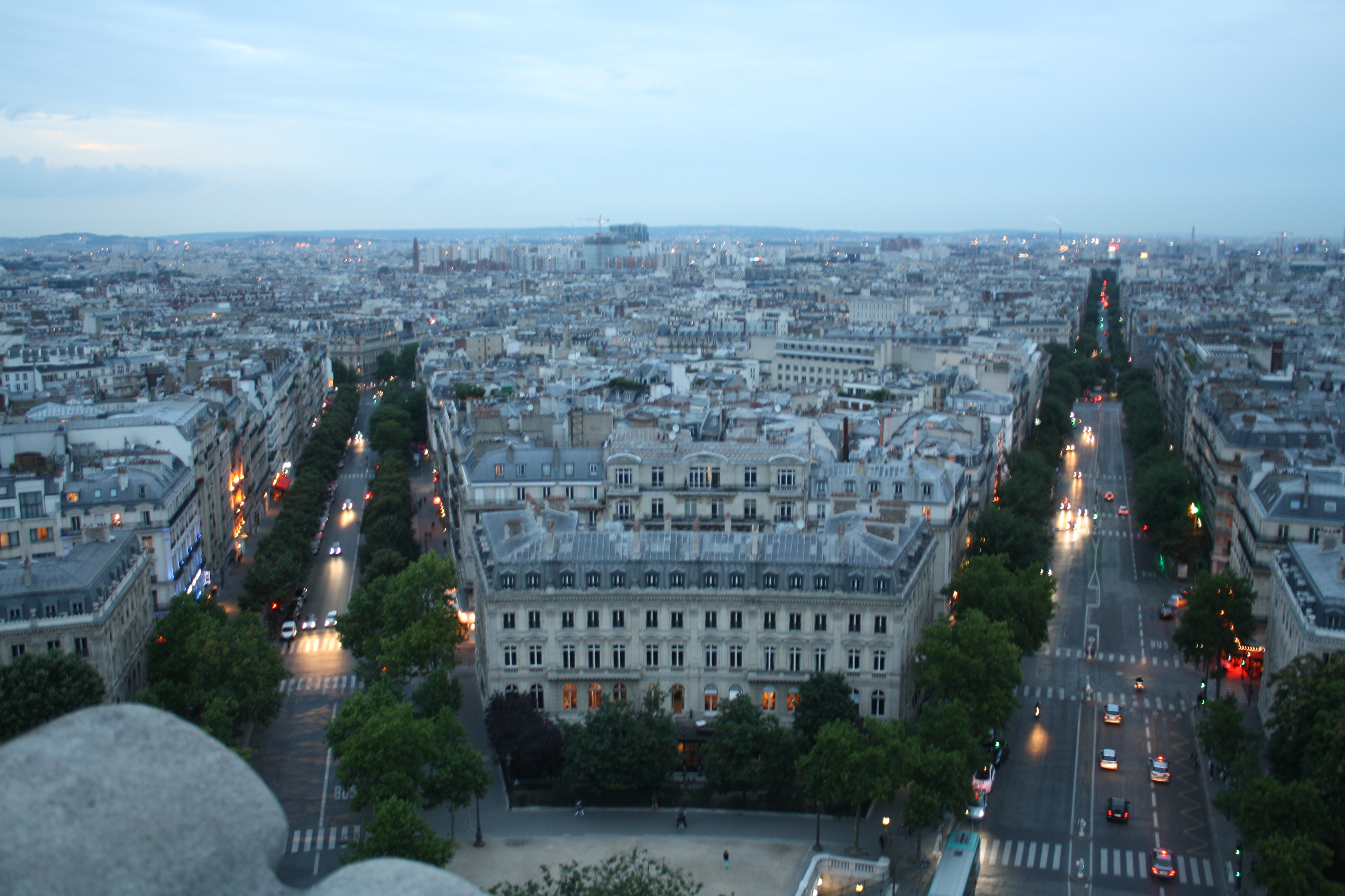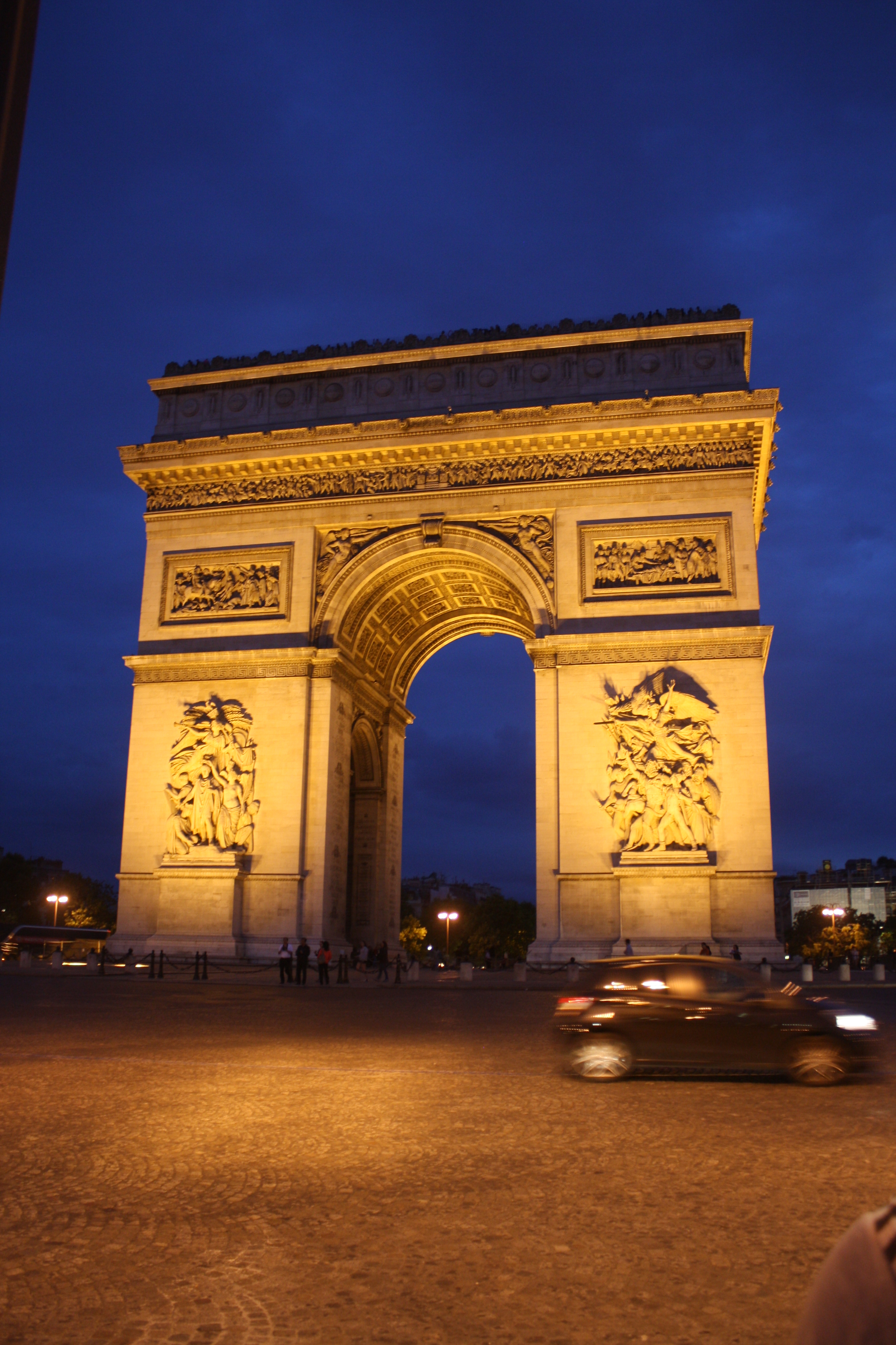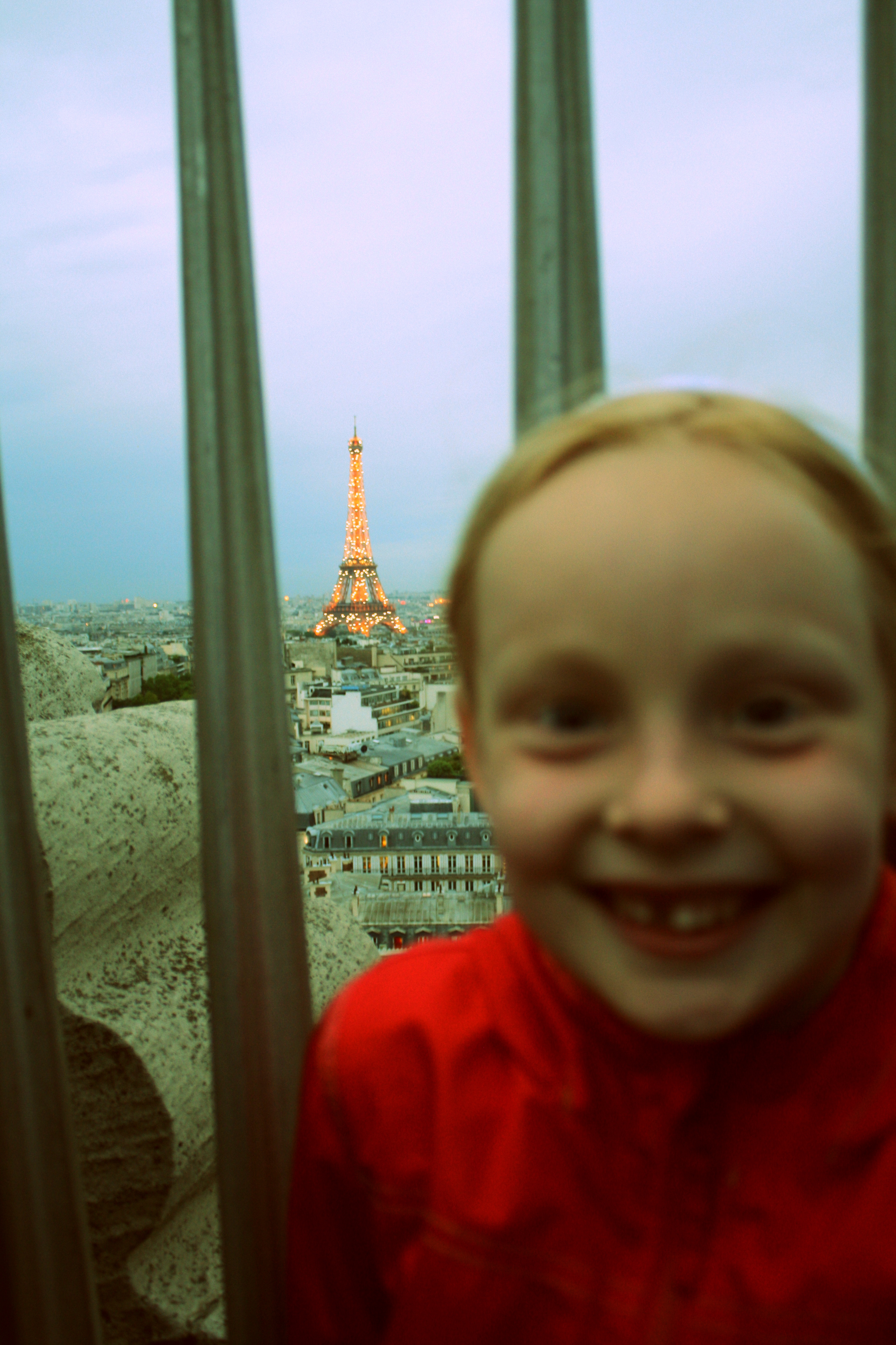 At the food market on Sunday we bought some fresh pesto gnocchi…delicioso!   We rested for a bit…and then headed out to see the Arc de Triomphe.  We wanted to see some sights at night, and we knew the view of the Eiffel Tower would be great.   So, after climbing up that tower in Provins earlier in the day, we climbed another 300+ stairs to the top of the Arc de Trimpohe!  No need for the gym on this trip!