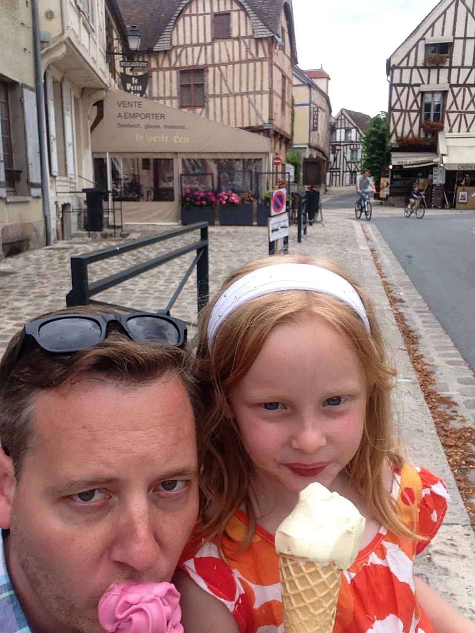 We started by having a picnic lunch on one of the ramparts…we had a view of the French Countryside on one side and the old town on the other.  I mean seriously….who can say they had lunch on a 12th century medieval wall?
