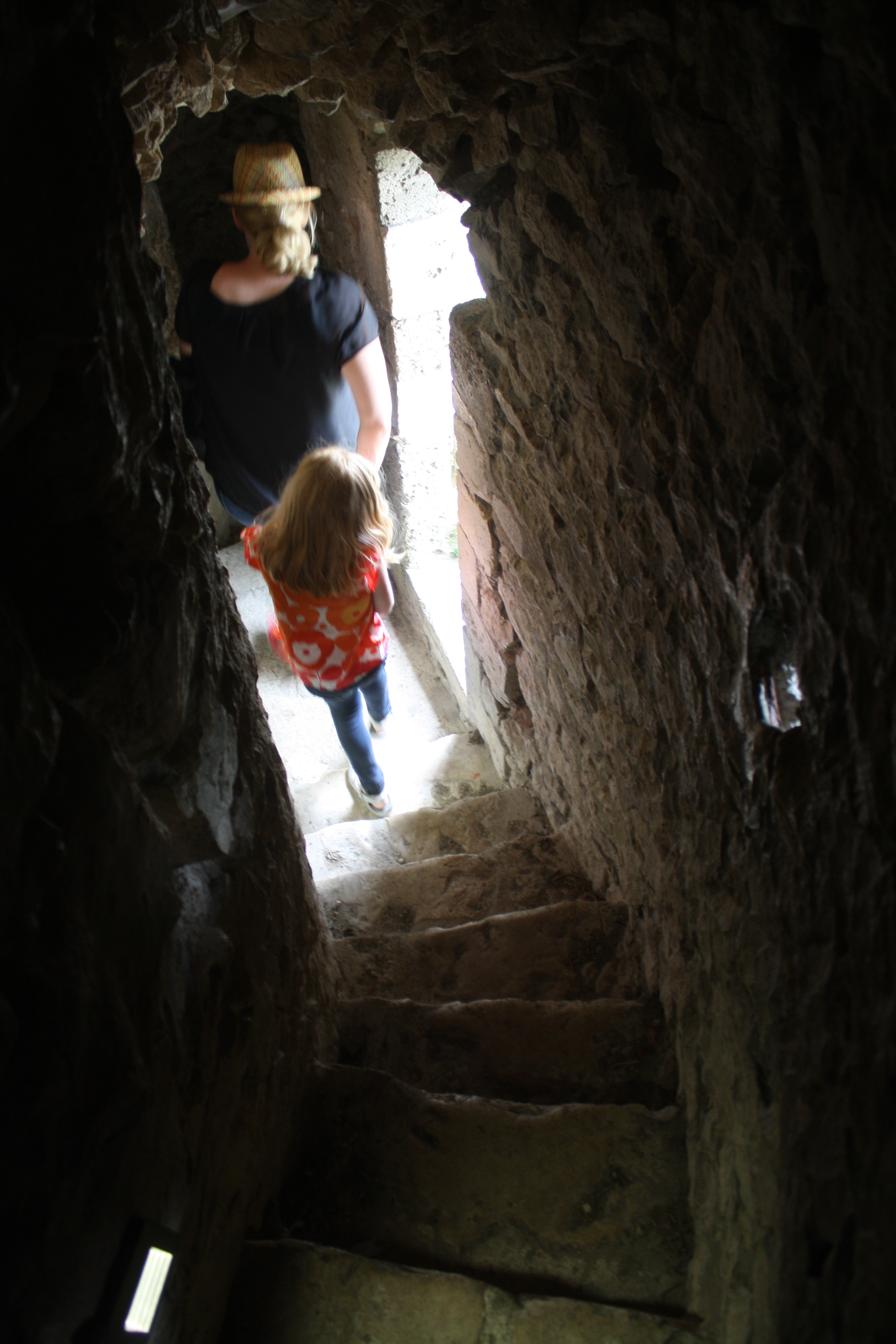 Technically, this was climbing DOWN the stairs, but you can see how narrow they were…and these were the ones with a railing and light…there were more narrow, steeper ones without lights