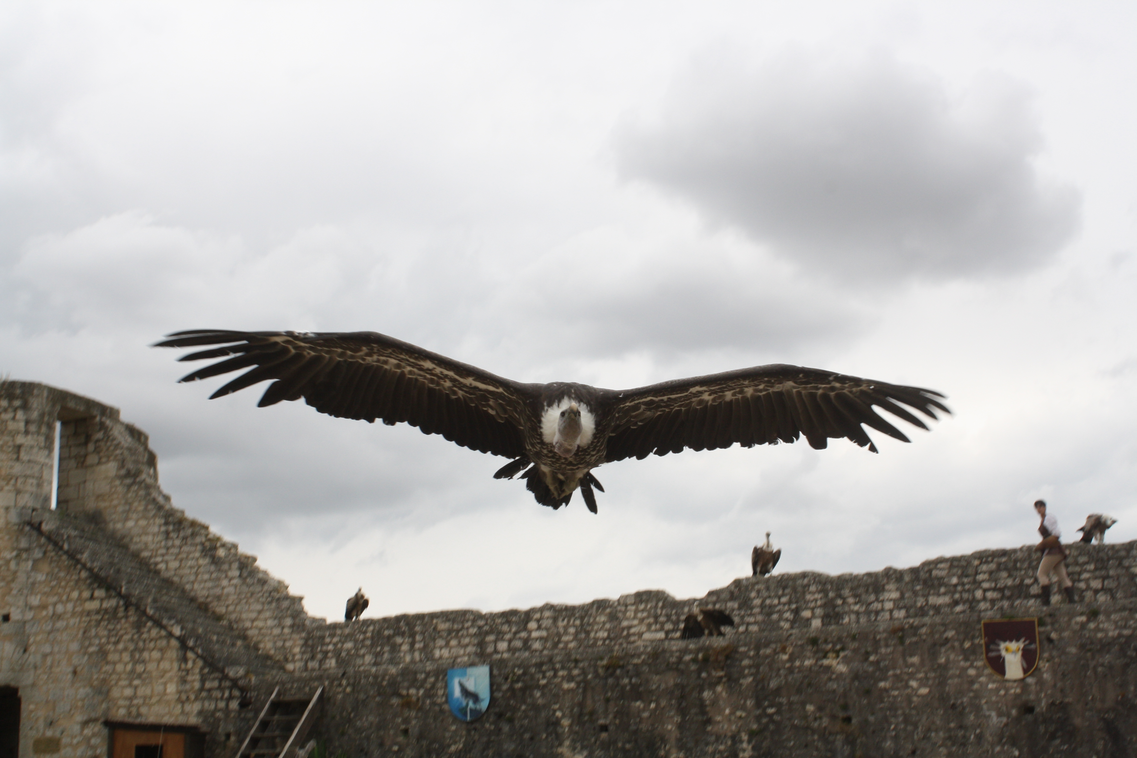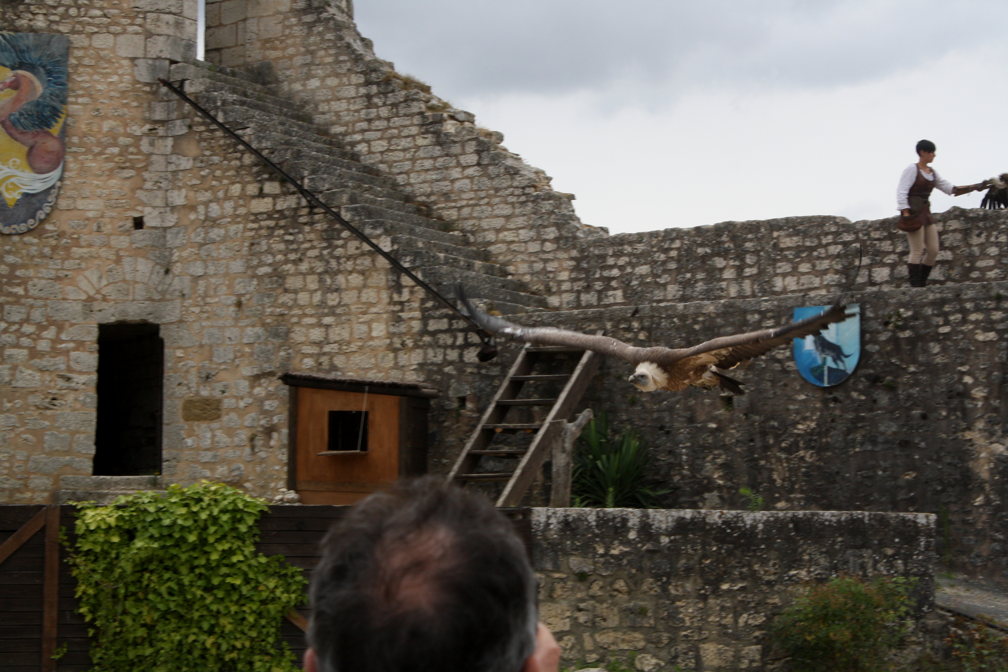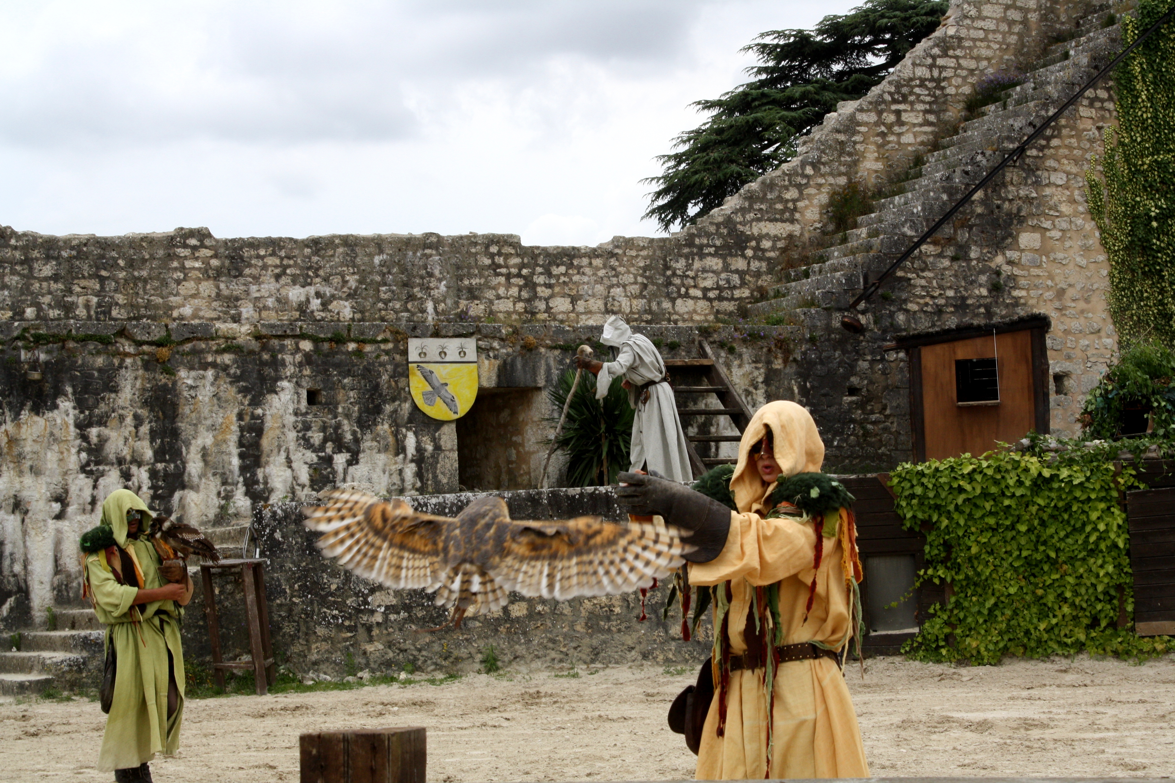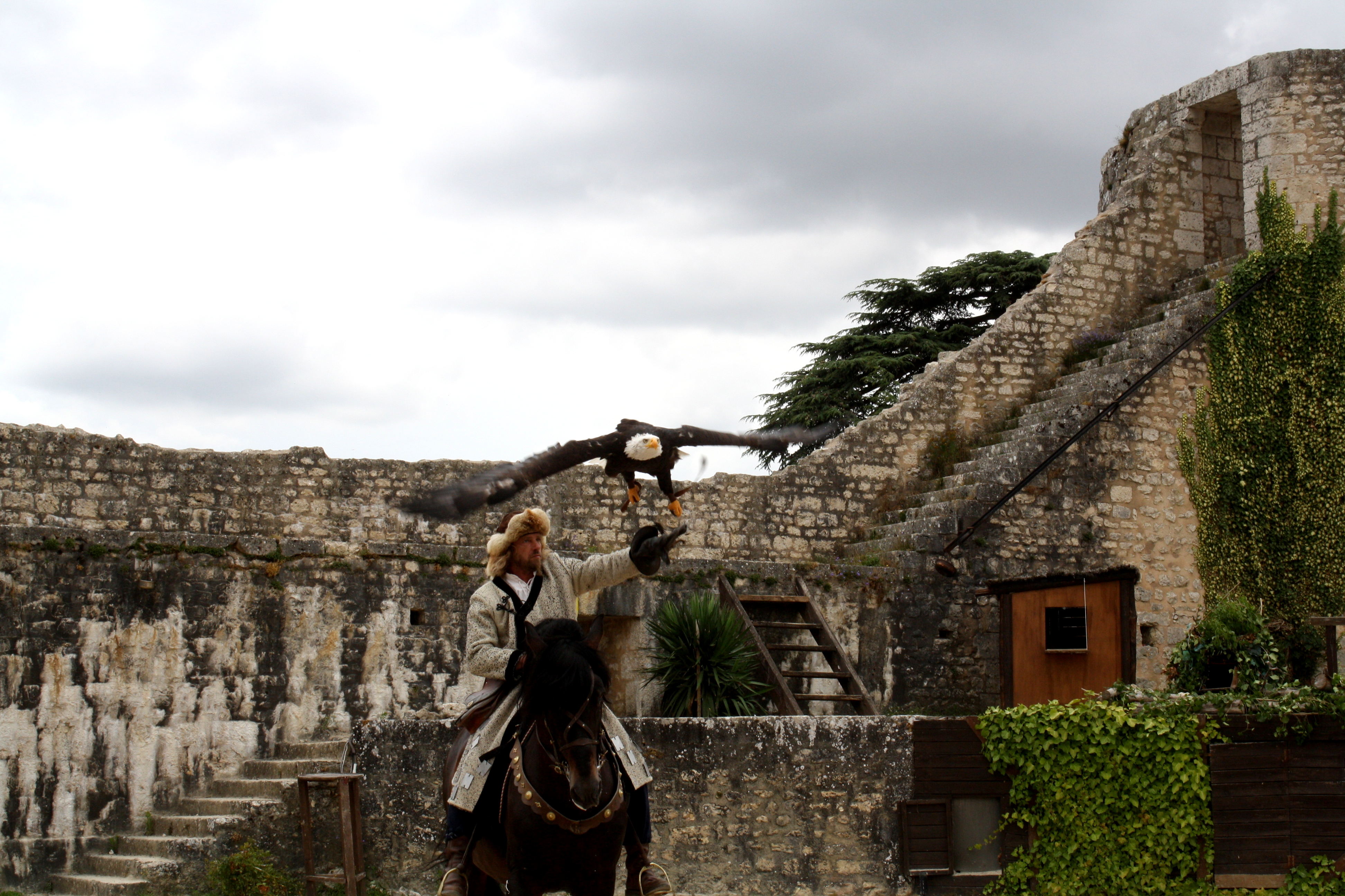 And to end the day, we got tickets to a falconry show called “The Eagles of the Ramparts”.  They have several different Renaissance-type shows in Provins (it is a tourist town)…but we were intrigued by this one.   It was 100% in french, and we had no idea what they said the entire 45 minutes…but it was so cool!!  They had falcons, Bald Eagles, Owls, Condors,…and these birds were HUGE…and they would fly back and forth so low…they wings would graze your head (at least twice for Josette).  It was something I have never seen before.  Really interesting experience.