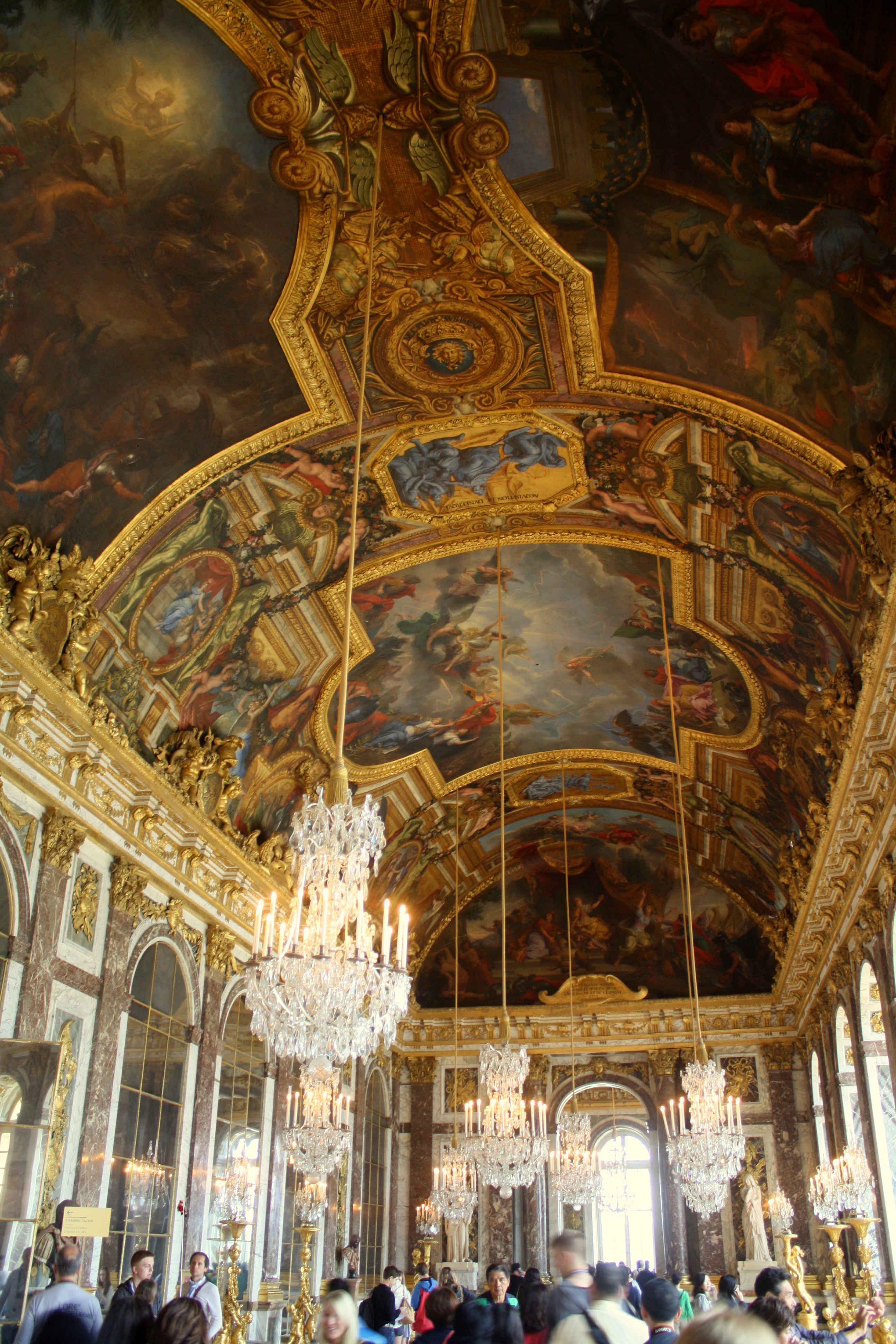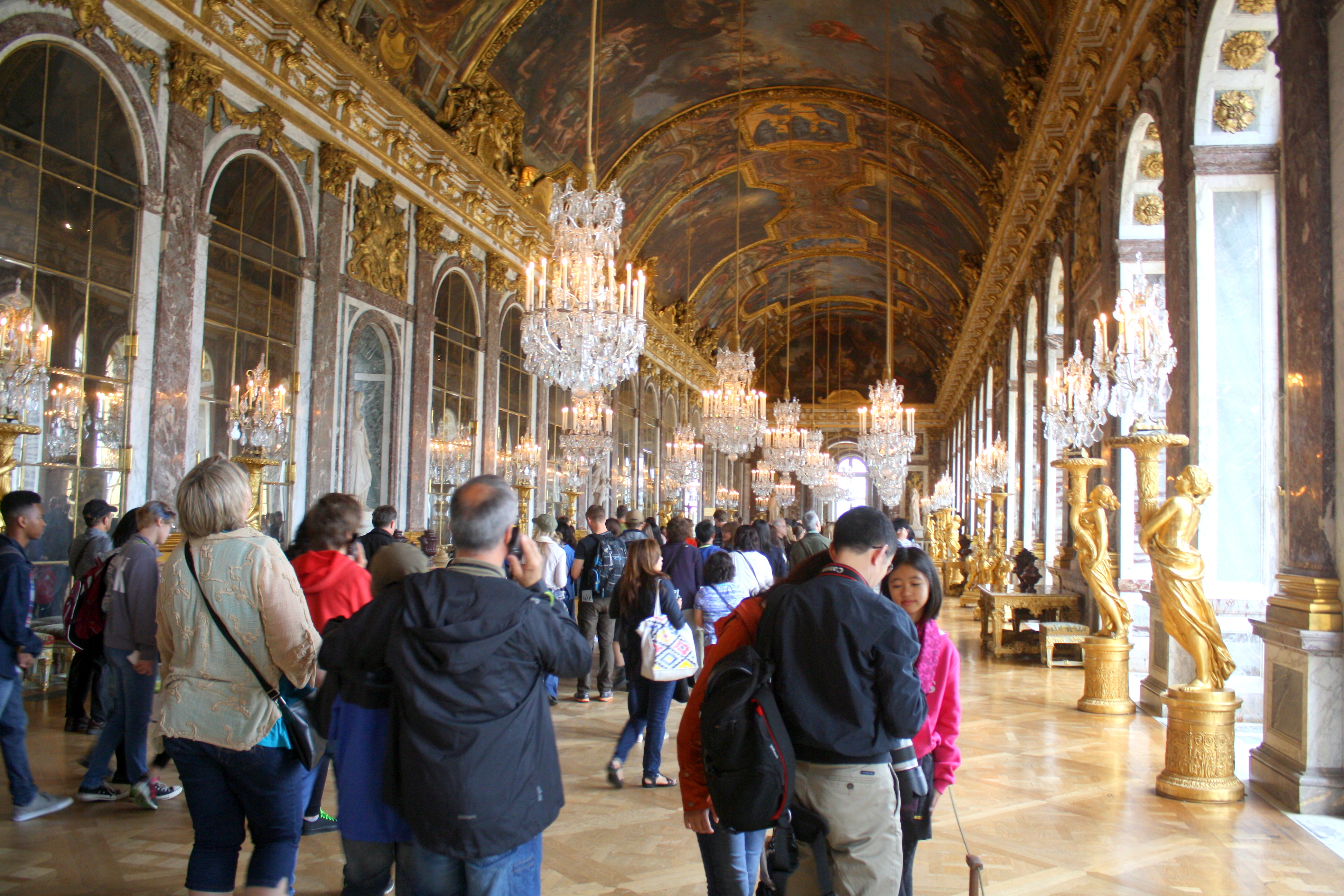 I specifically recall learning about Versailles in my 9th grade history class.  My eccentric, older teacher, Ms. Hoskins, was very dramatic in her descriptions.  I remember her describing the vain and powerful King Louis XIV, the Sun King, who remodled Versailles during his reign.  It was he who had the famous Hall of Mirrors constructed.  Ms. Hoskins would pretend to be a visitor to Versailles, and she would pace back and forth in the classroom, pretending to be walking down the Hall of Mirrors, admiring all of the wealth and grandiosity of the French Court.  Looking up and around at the reflected light of the mirrors, the artwork and chandeliers.   And having been there now, I realize that she nailed it…this is exactly what you feel when you walk in the space (when you aren’t being trampled by the other tourists who insist on taking selfies every 5 feet).  The Hall of Mirrors is beautiful, over the top…a little gaudy…ostentatious…but truly amazing.  Over 240 feet long, with a total of 347 mirrors…and at the time it was built, in the 1670’s, mirrors were super expensive, rare, and were imported from Venice.  So having this many mirrors in one room was the ultimate display of power and wealth.