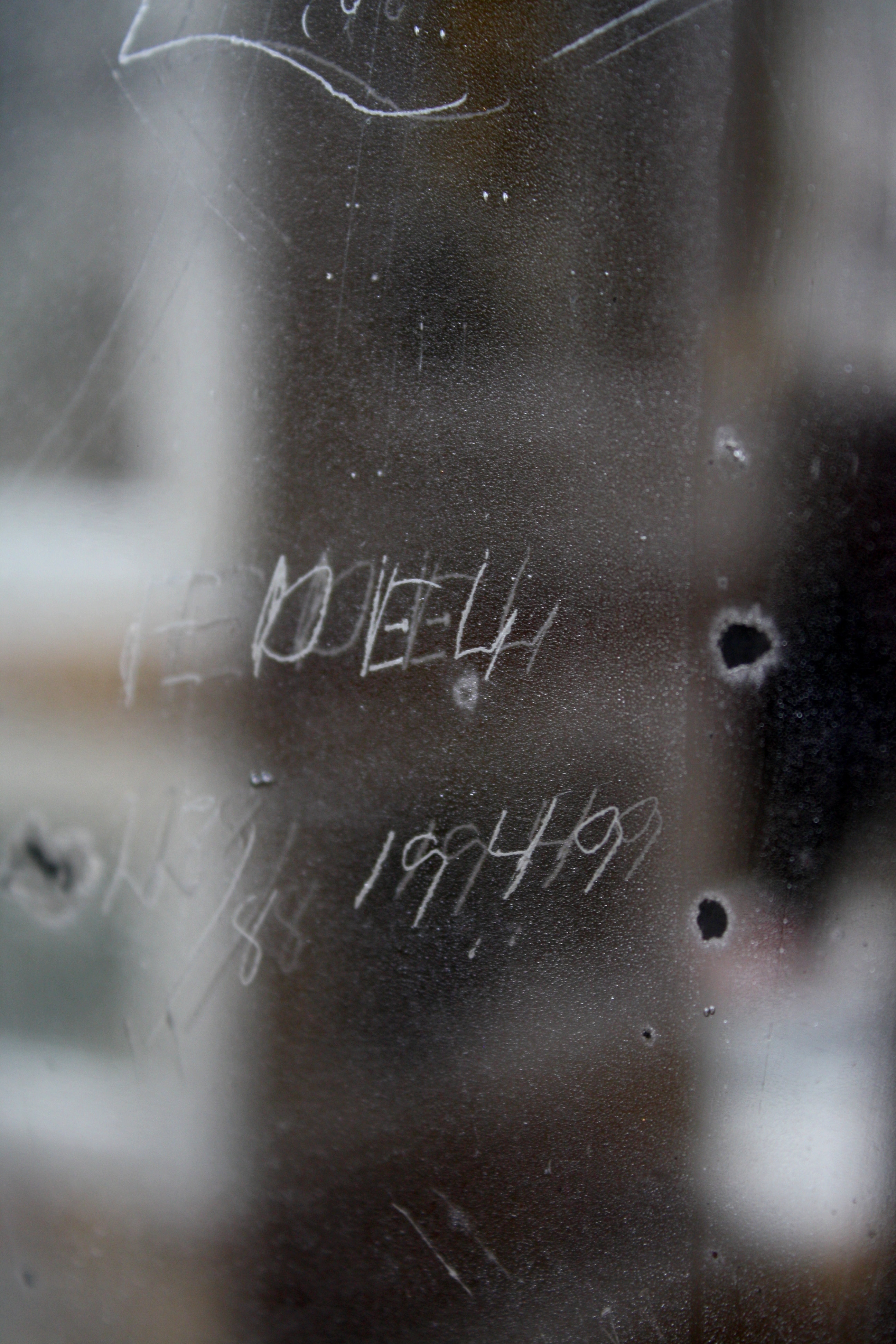Some of the mirrors had “scratchiti” (graffiti on glass) from different time periods, but it was hard to photograph. This one is from 1949.