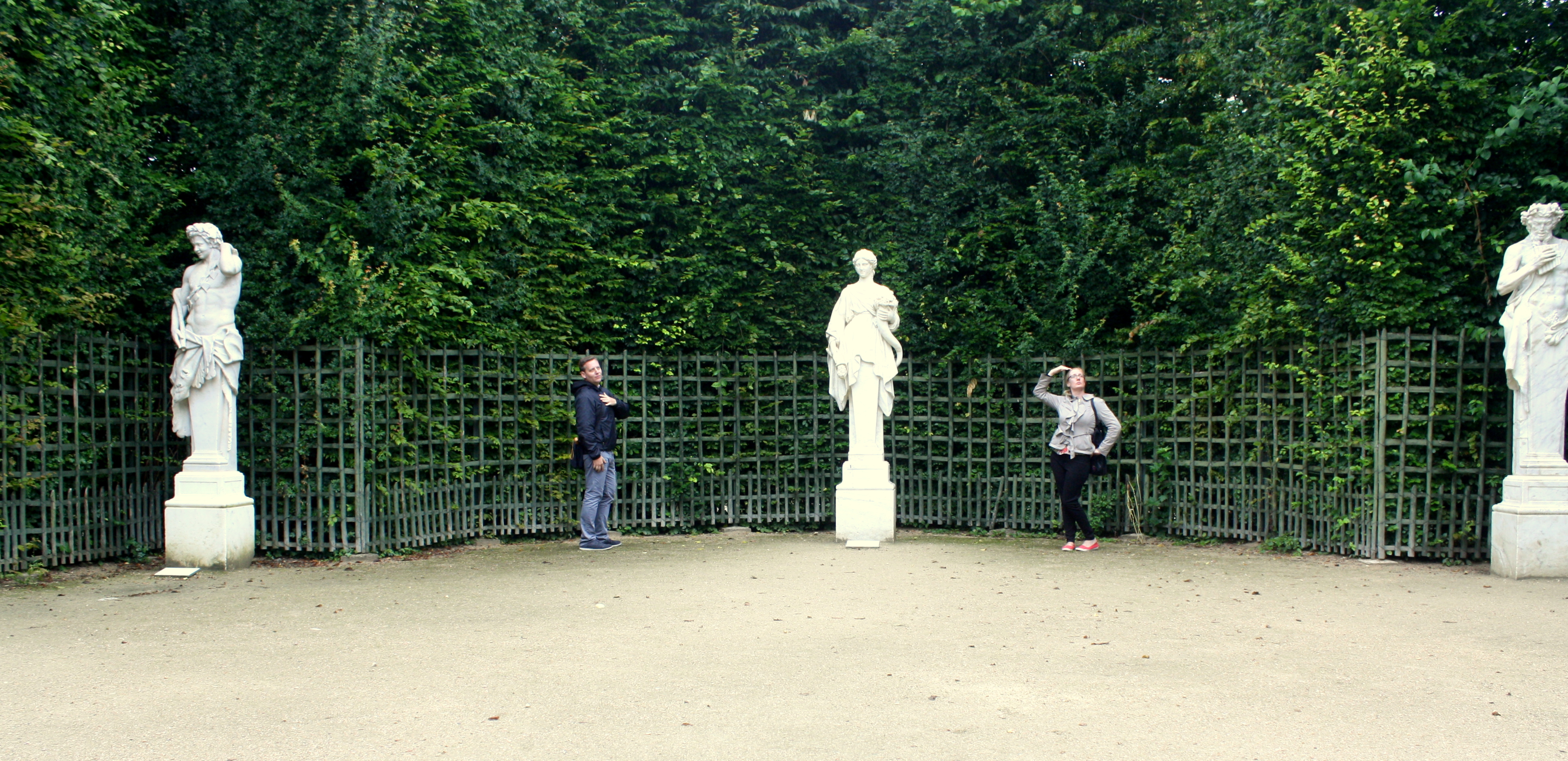 Besides being vast beyond comprehension, the gardens are VERY French and very formal….every tree and shrub is manicured to within an inch of its life.   It’s quite different from the English gardens that we toured last summer that were designed to look natural and untamed, but are actually very man-made and cultivated.  With the French, there is no question that nature has been tamed by man.