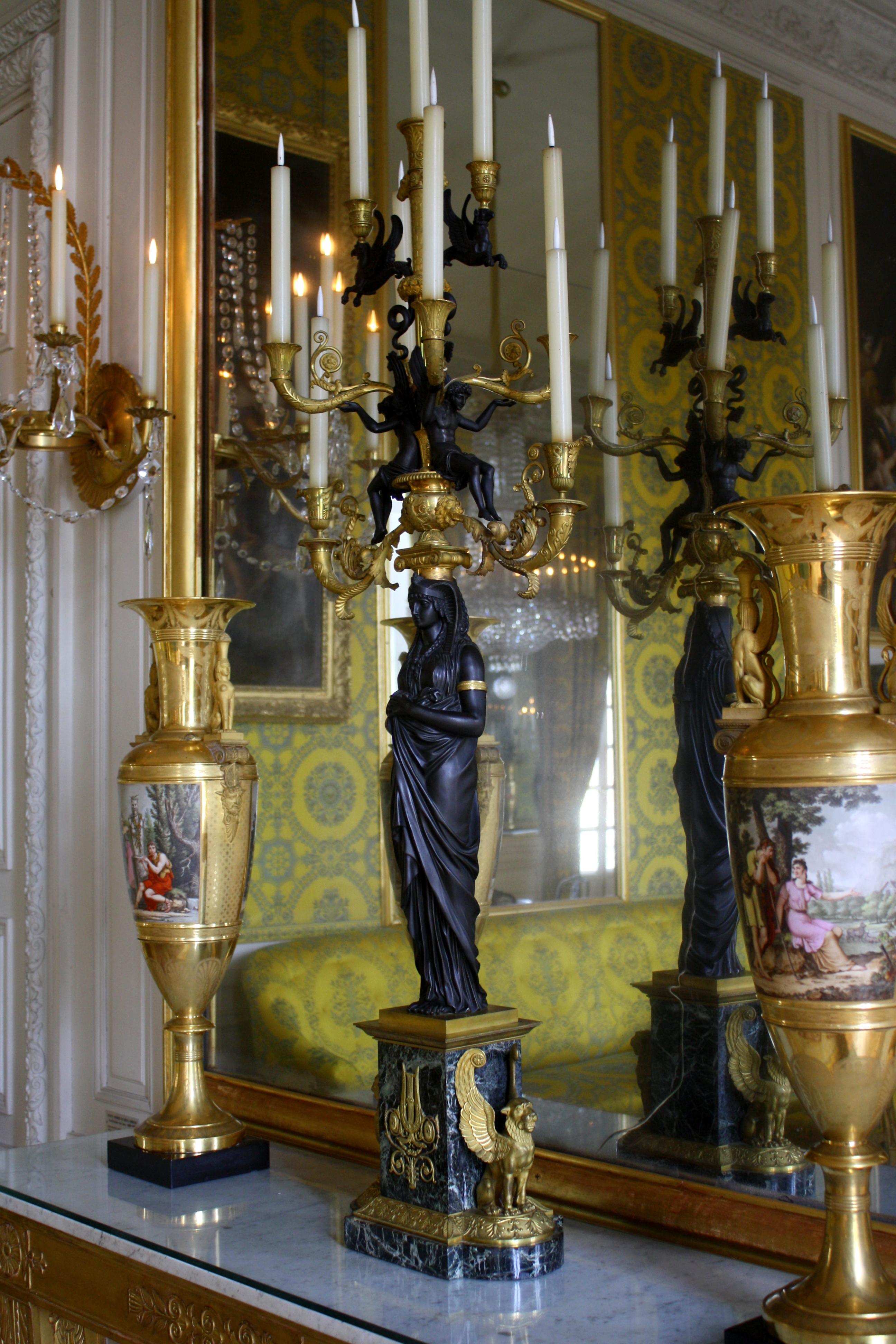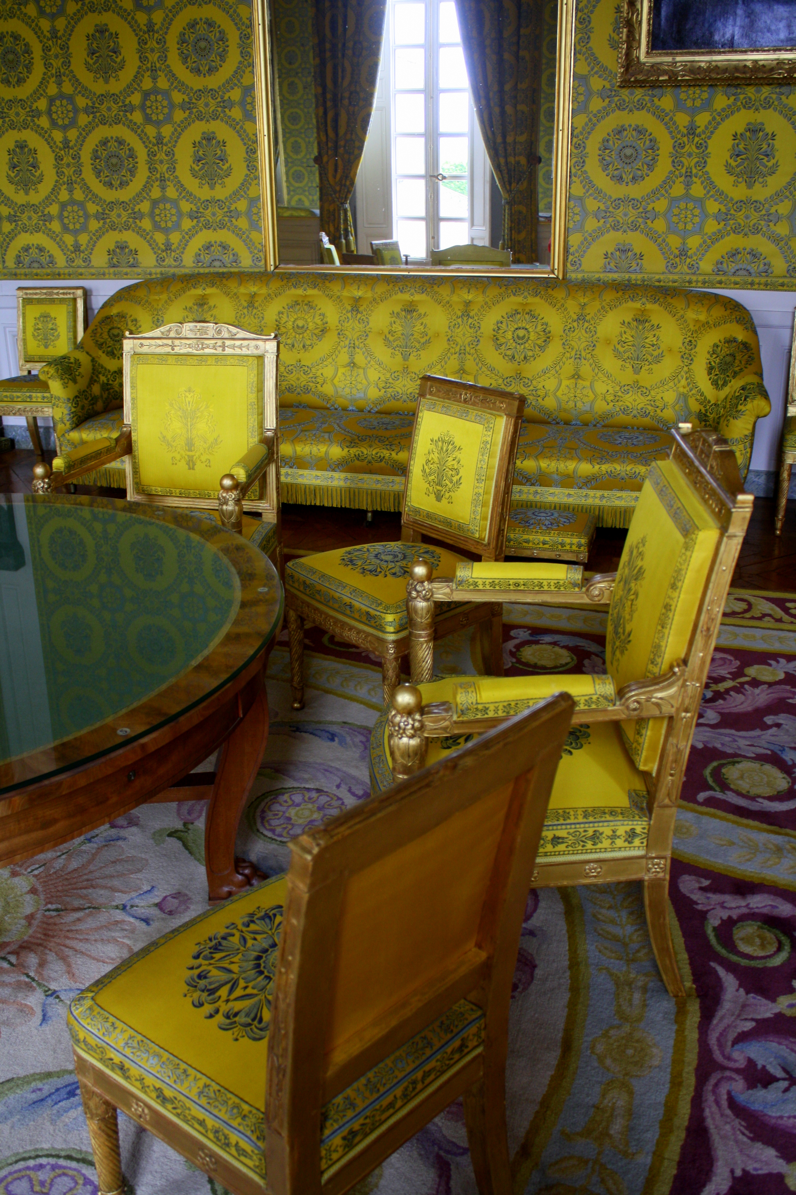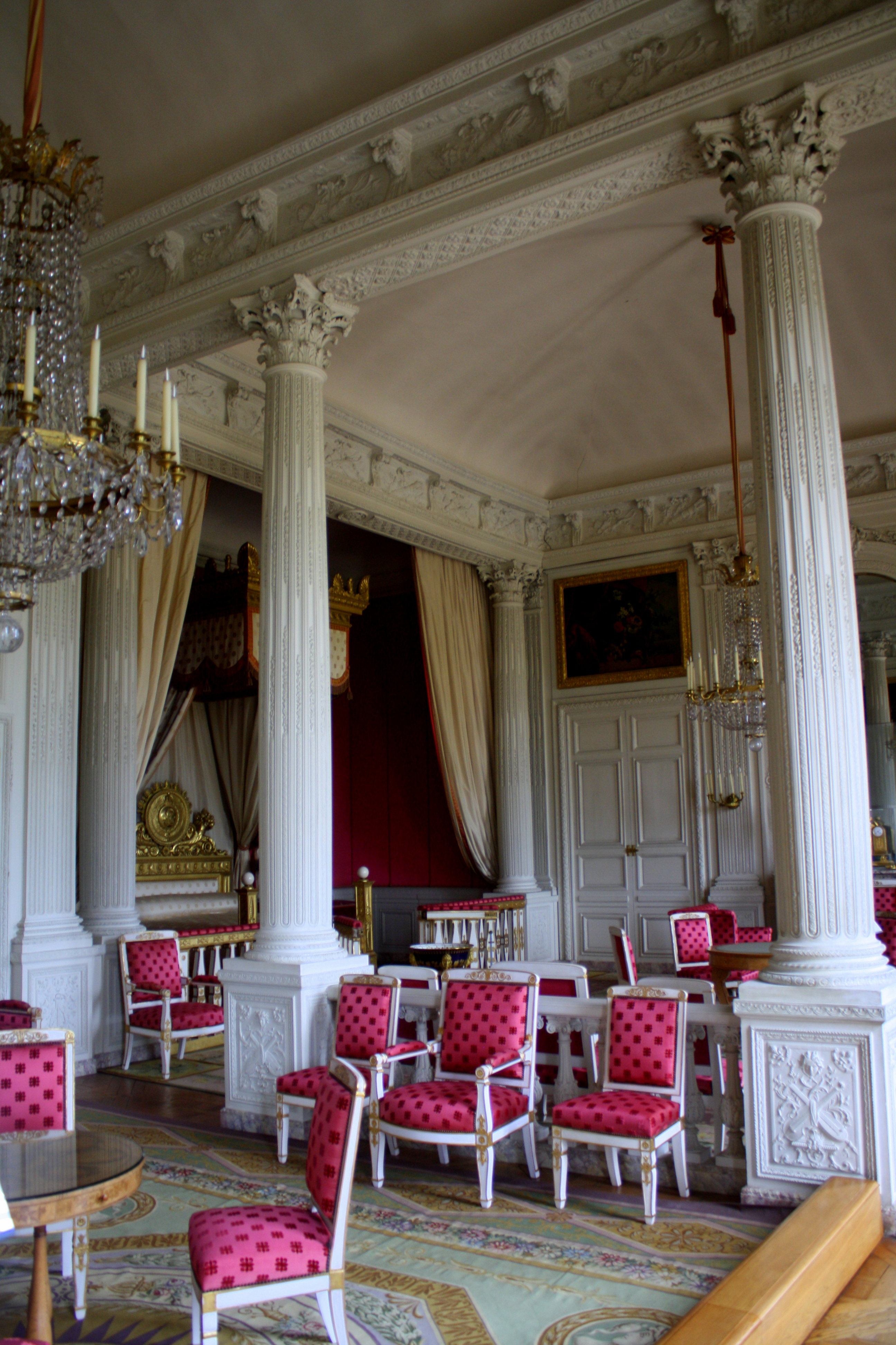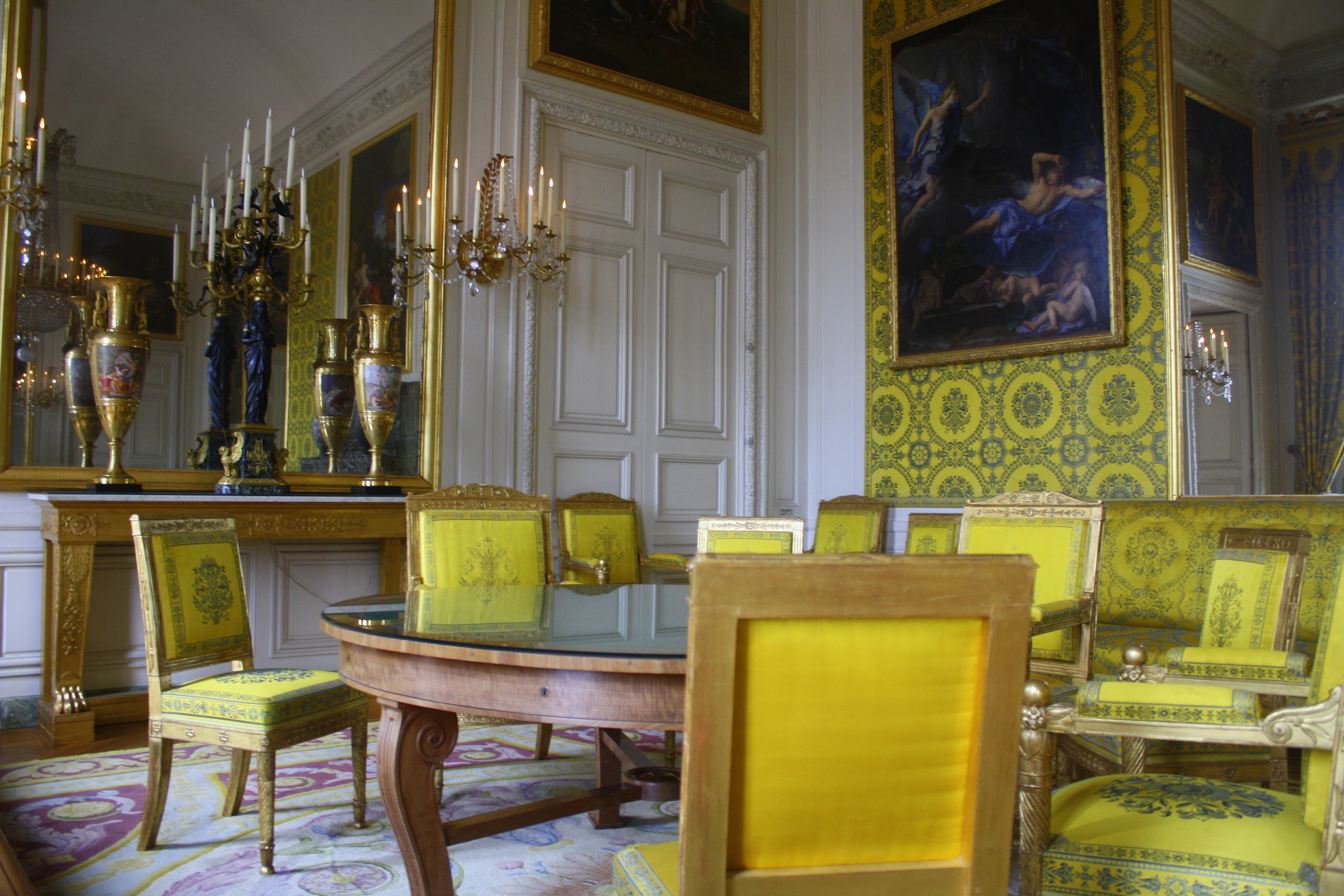 So…for the Sun King…the Palace wasn’t enough.  He needed a retreat from the formality of the French Court.   Being royalty was intense…every minute of every day was a planned, intricate, formal affair and it got tedious for the King and his close friends.  So King Louis XIV  had Le Grand Trianon built.  He and his friends could go down to the Le Grand Trianon and hang out in this 1672 version of a “man cave”.  It was also a great place to hide his mistress, the Marquise de Montespan.   In the pictures, you might notice that the interiors don’t look 17th century…they were redecorated by Napoleon and Josephine when he was living at Versailles…and they have remained in that Empire Style.  But you get the idea of just how “low key” this more informal retreat was.