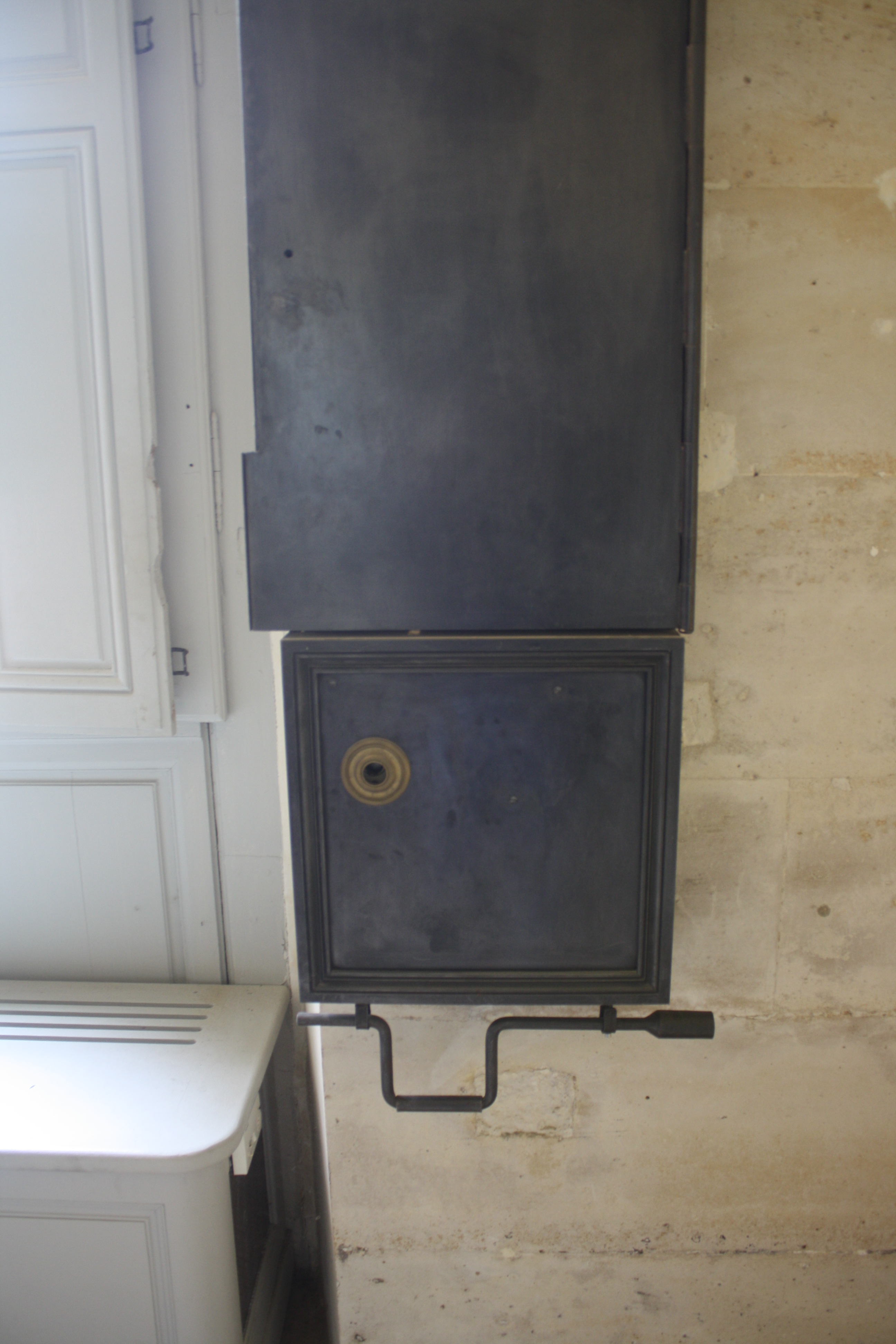 The panel with the mirror could be lowered and raised for privacy…this is the room where she changed clothes. There was a crank in the room below…she would ring a bell and the servants would turn the crank and the wall would go up or down, as needed.