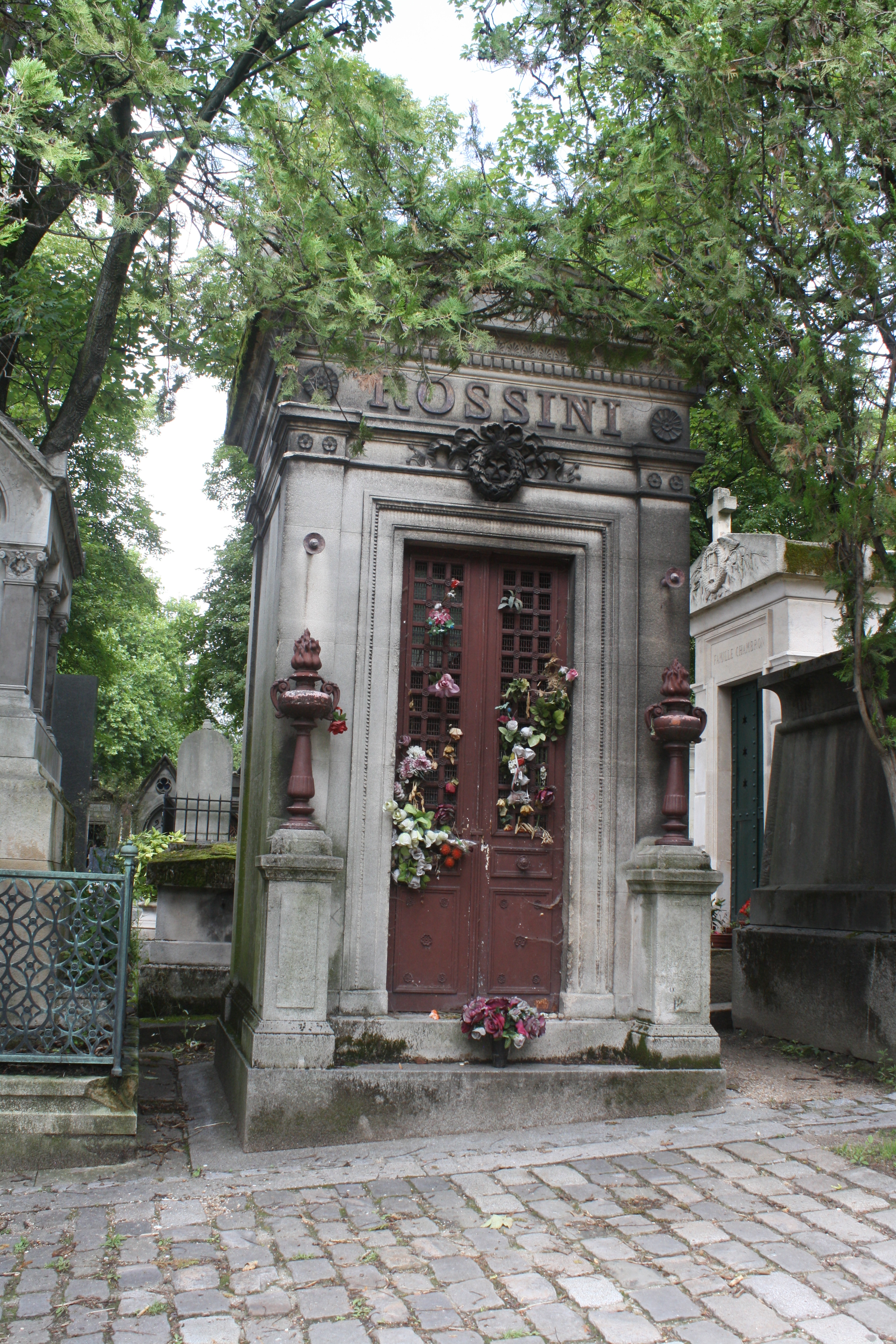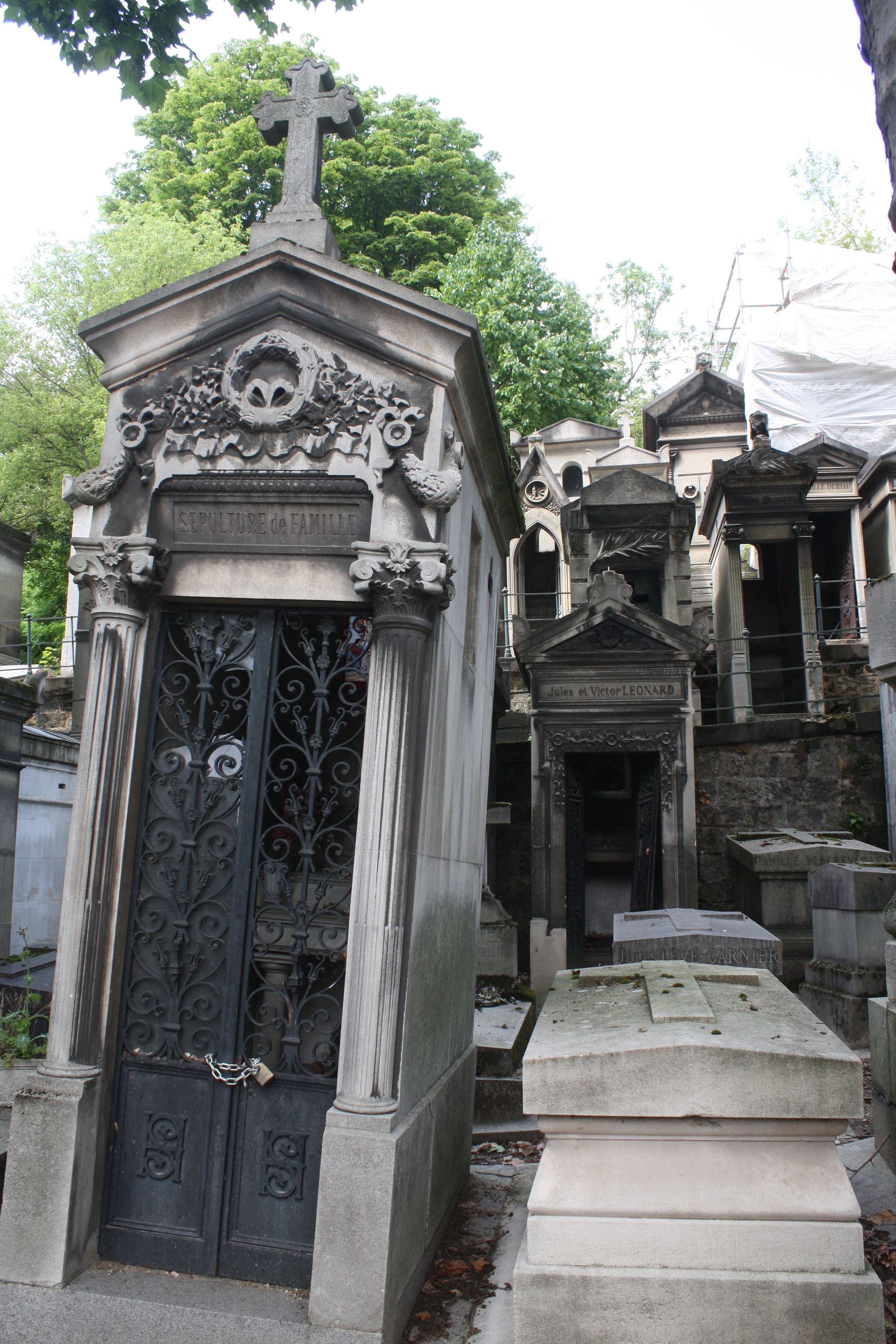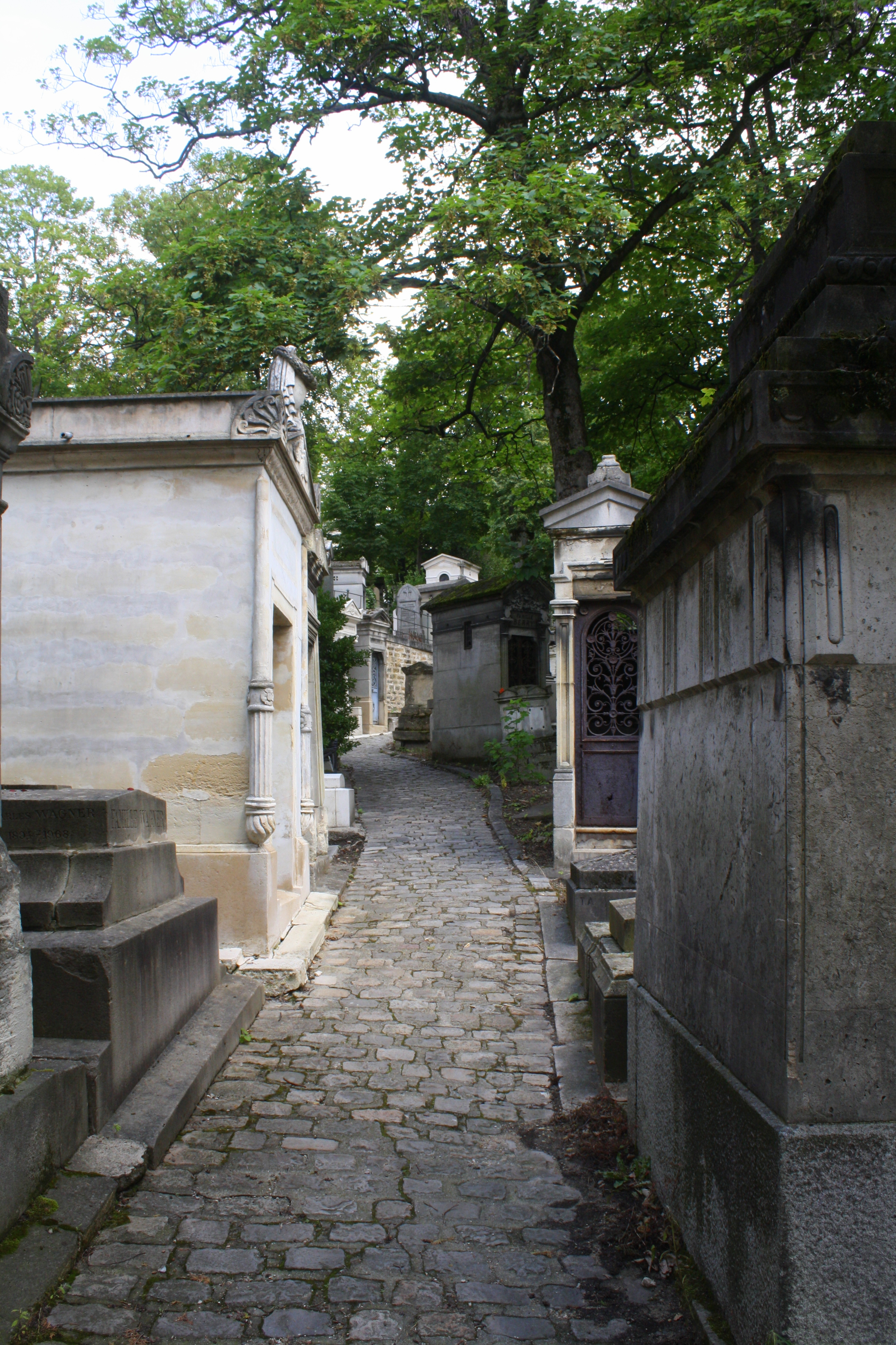 Truth be told, I wanted to visit Père Lachaise. I had studied it when I was working on my thesis for Architecture. My thesis was on a chapel in a cemetery, and Père Lachaise is famous for being the first “garden cemetery”. In the past, people were buried in church yards or in family plots…but this cemetery was the very first planned, garden-like community for the dead…with streets and trees and vistas. People actually came to visit just to take a relaxing walk. And it was emulated all over the world…all over America. There are some famous people buried there…but very particular sort of famous people. The composer Rossini, the French singer Edith Piaf, Paris City Planner Haussman, Jim Morrison of The Doors, Oscar Wilde.