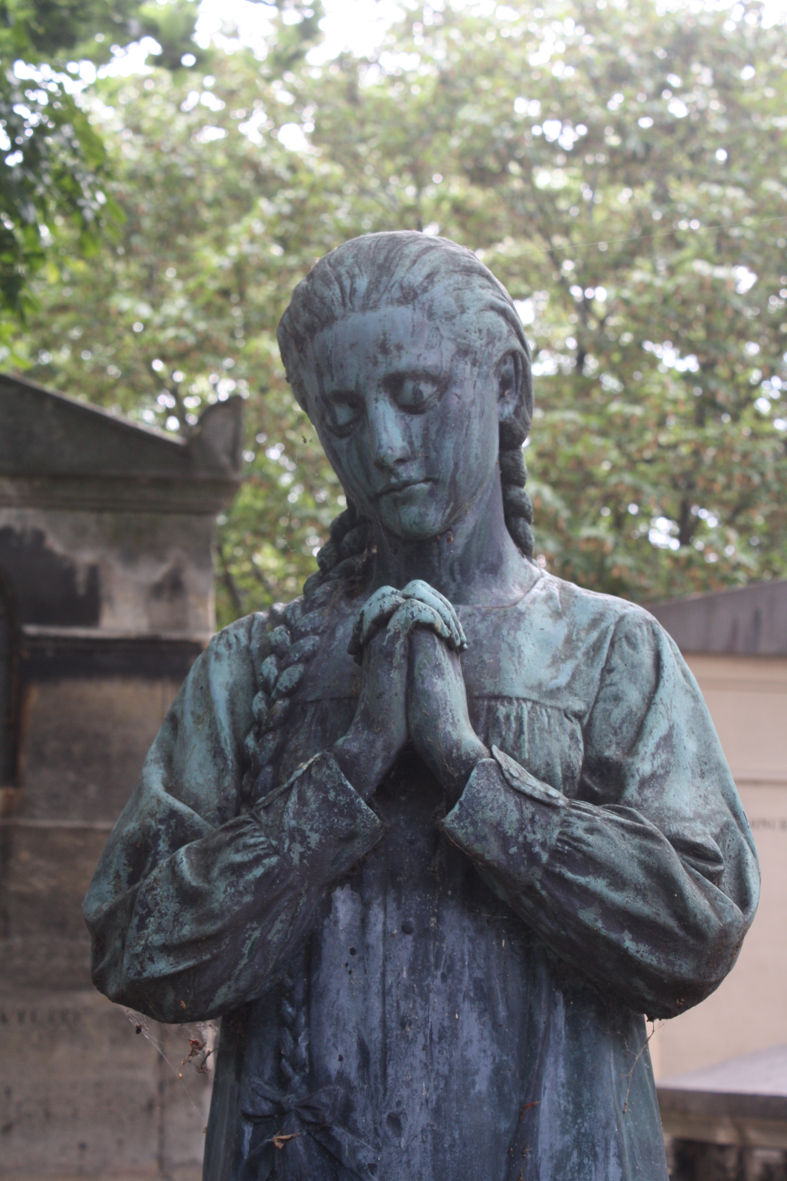 What a nice way to end your visit. I think the sun-shiny day was Paris tempting you to come back. Two beautiful pictures of Josette today! I love, love, love old cemeteries but I see what you mean about the creepy eyes!