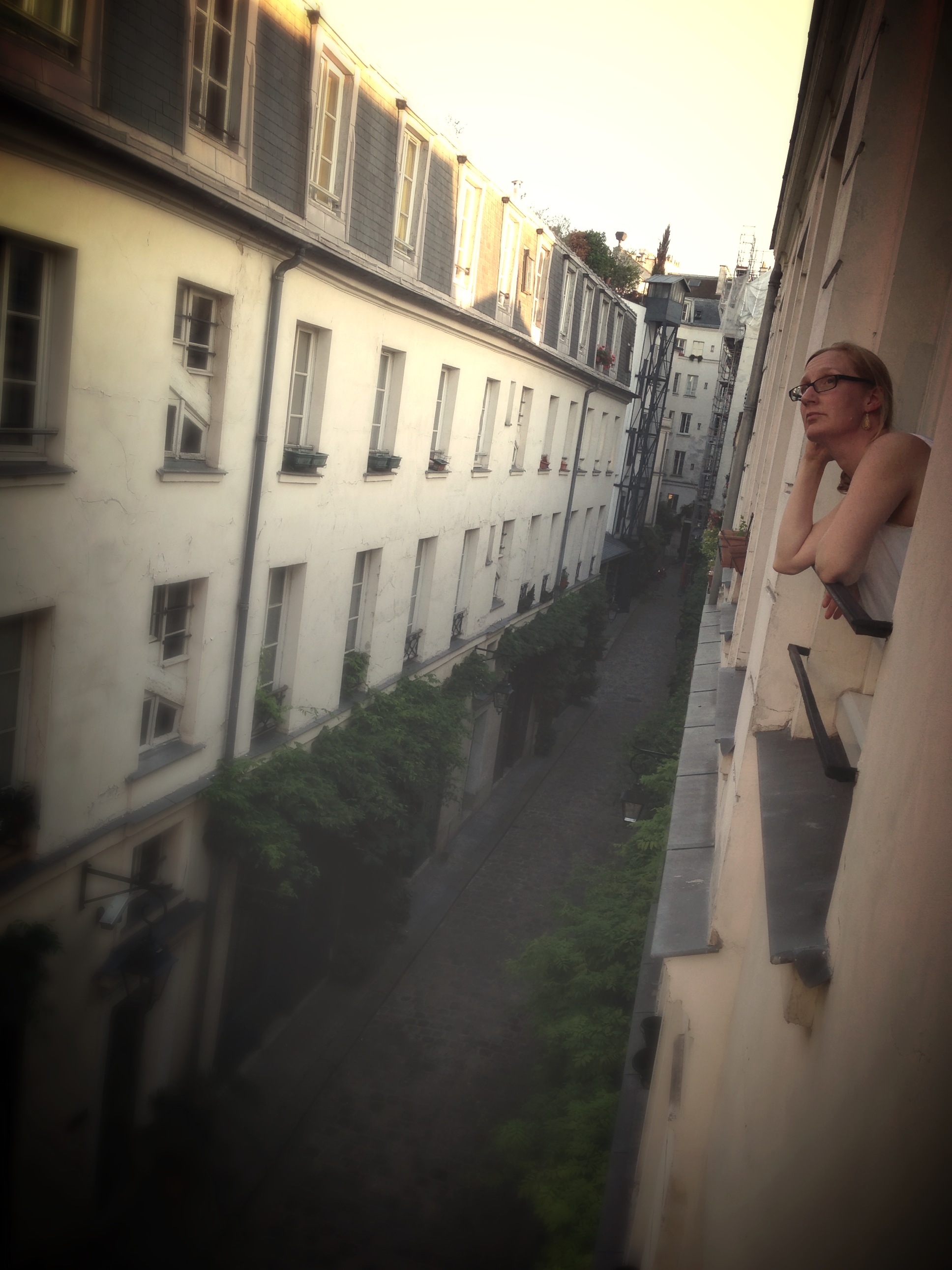 It’s funny what nice weather can do to your state of mind. We were like kids this evening. Hanging out of our windows…smiling…enjoying being temporary Parisians…just happy that it was nice and warm…and not raining. 10 days of the wet stuff starts to soak into your brain.