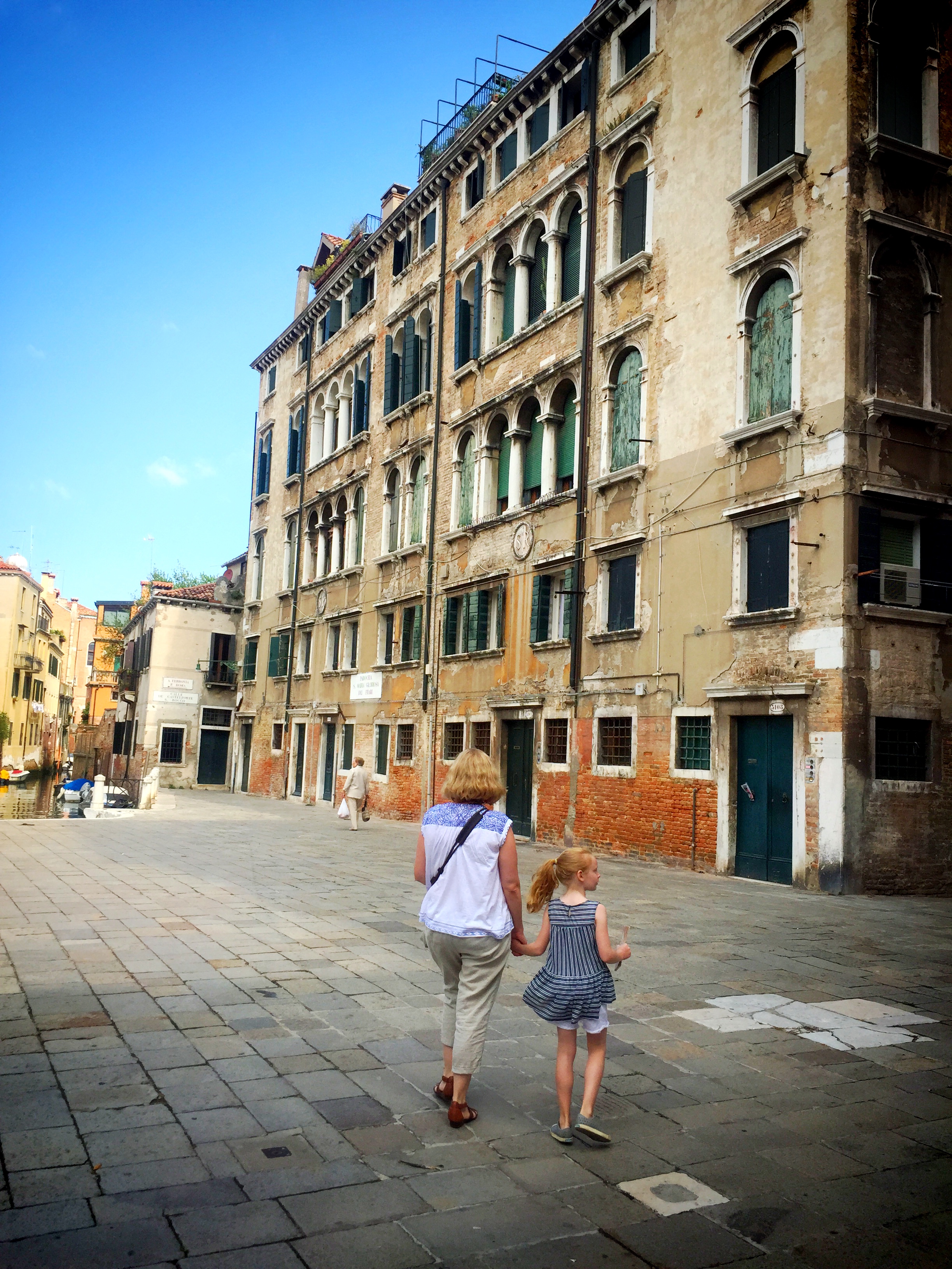 Venice has grown on us. Very quickly.  I remember being overwhelmed by the heat and crowds when we first arrived by train, and being underwhelmed with Venice (yes, I just wrote that).  But once we got settled in our apartment, which is tucked away on a tiny, shoulder-width alley… and we started to understand the complex maze of bridges and alley ways…Venice became charming and exciting.  If you can stay away from the touristy areas, it is a gorgeous feast for the eyes and like no other place in the world.