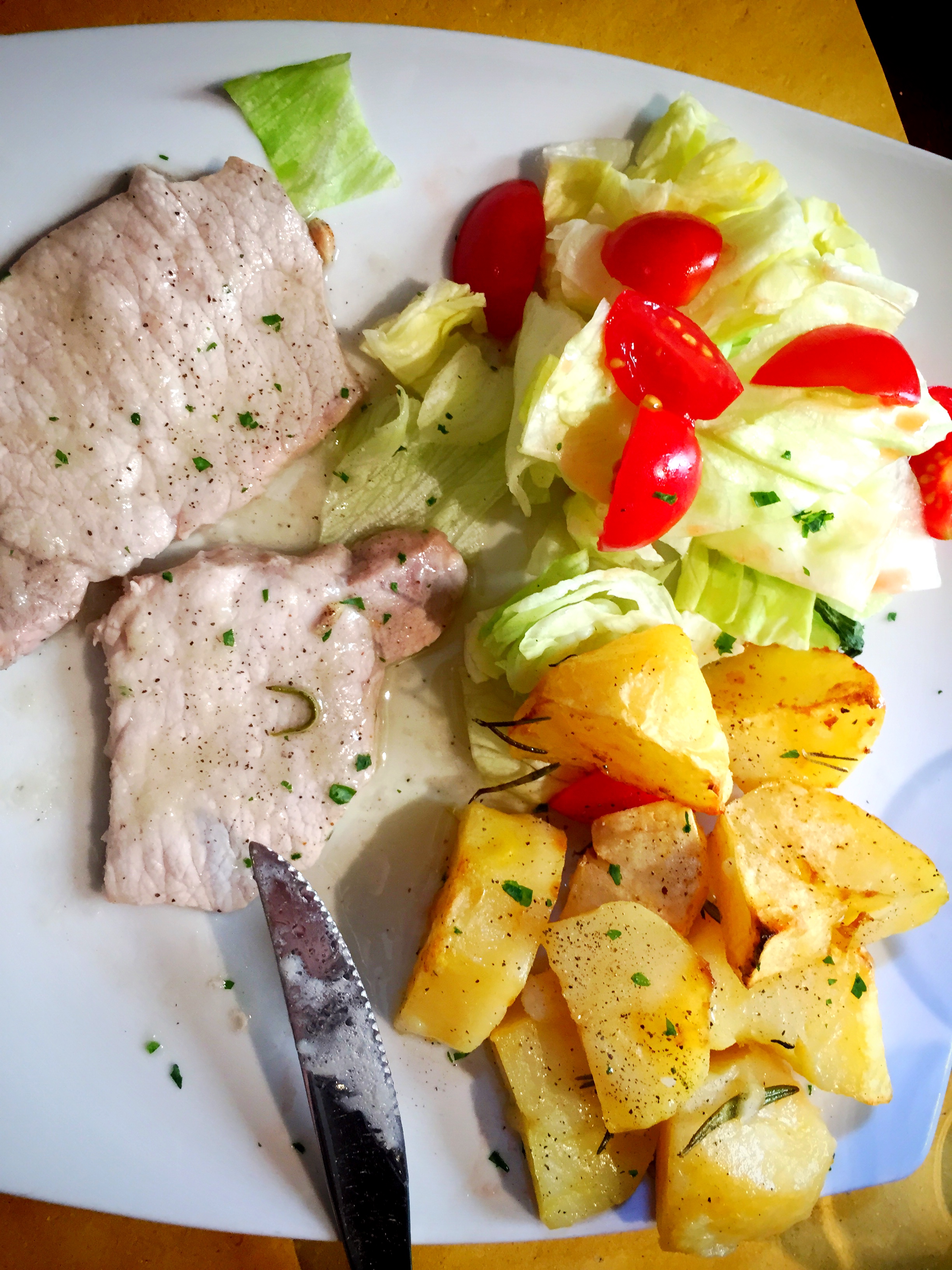 After we finished at the museum we found a little restaurant across the street serving a lot of locals, which is always a good sign.  They had several lunch specials for €12 that included an entree, sparkling water and a caffe…so we decided to give it a try.   I had scaloppina & potatoes and a little wine and Josette and Lena shared a lasagna.
