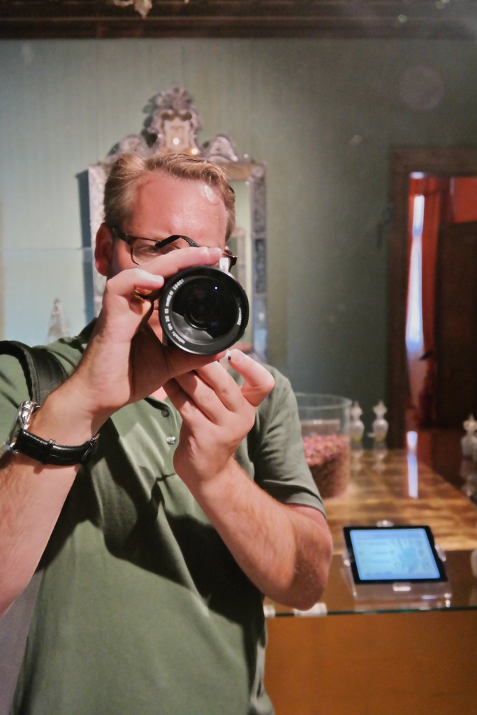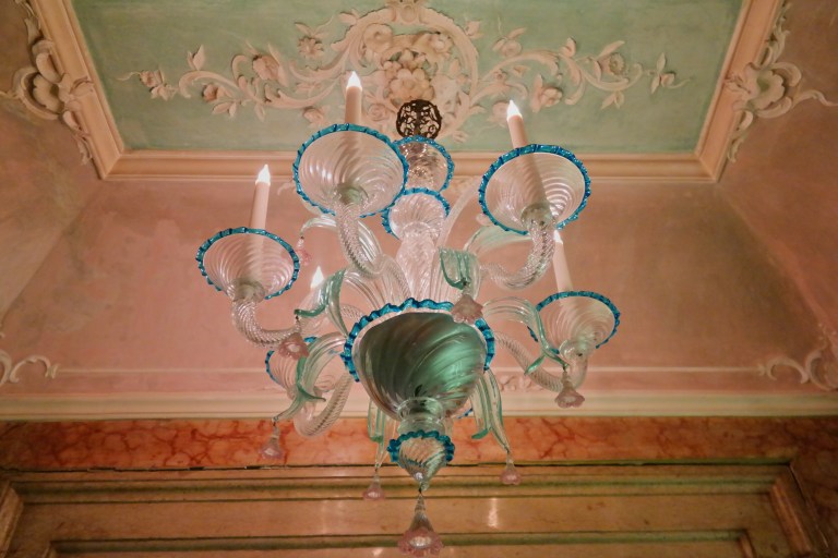 The Palazzo Mocenigo, the textile/costume museum, is housed in a 17th century grand Palazzo owned by the Mocenigo Family, one of the wealthiest and most important families in Venice.  The displays are all shown within period rooms…and when we were there they had an exhibit about how Venetians revolutionized perfumery during the 18th century.  They had a room set up with old, venetian glass perfume bottles with various floral sources used for perfumes… the entire museum and smelled delicious.