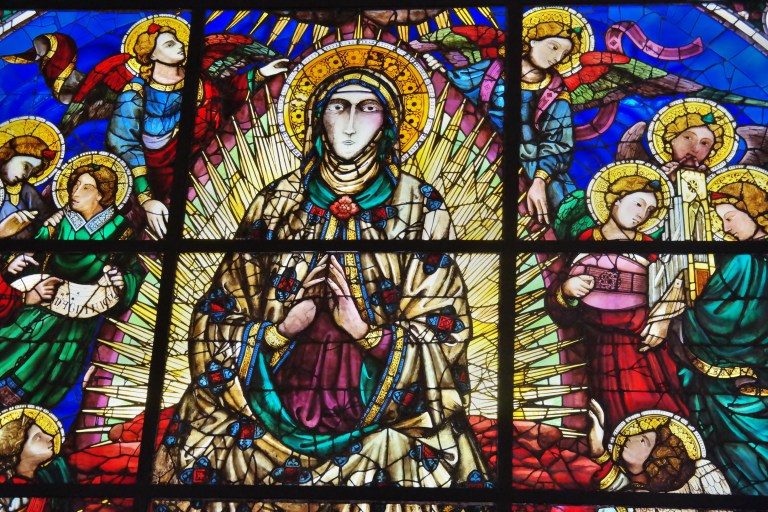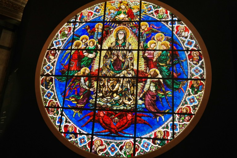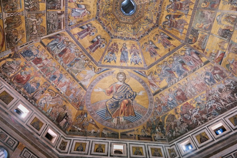 They are actually restoring the stained glass window from the Duomo and have it resting inside the Baptistery. It’s interesting to get to see a huge stained glass window like this up close.