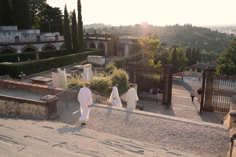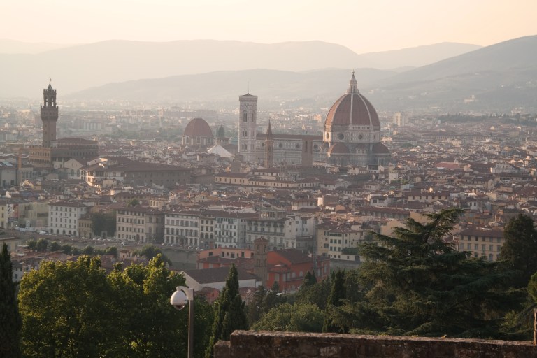 Then the monks came out and started to lock up the gates…we got worried that we would be locked in, so we quickly split and finally walked the final few steps over to the Piazzale Michelangelo to see the incredible view of Florence and watch as the sun descended for the day.