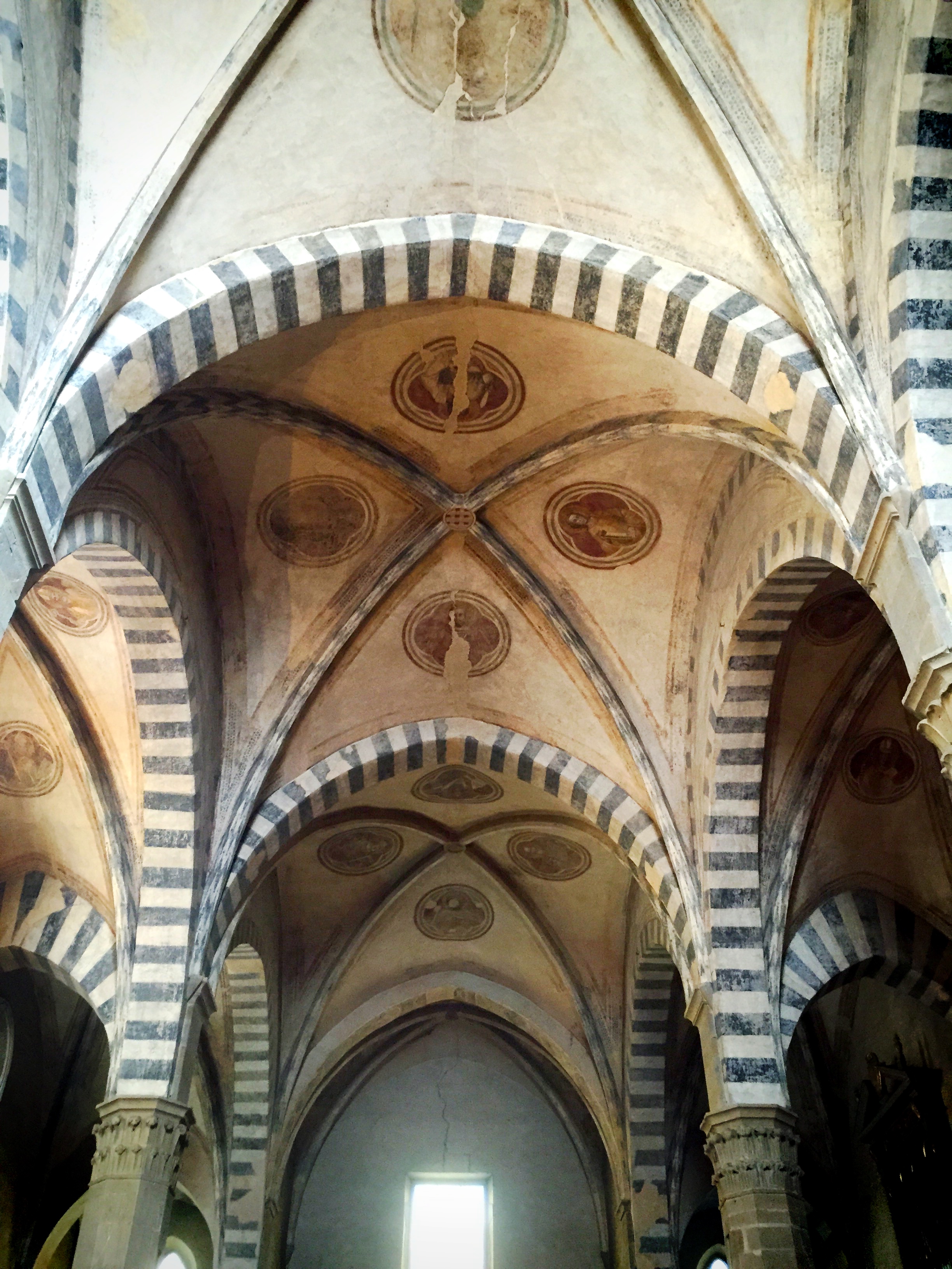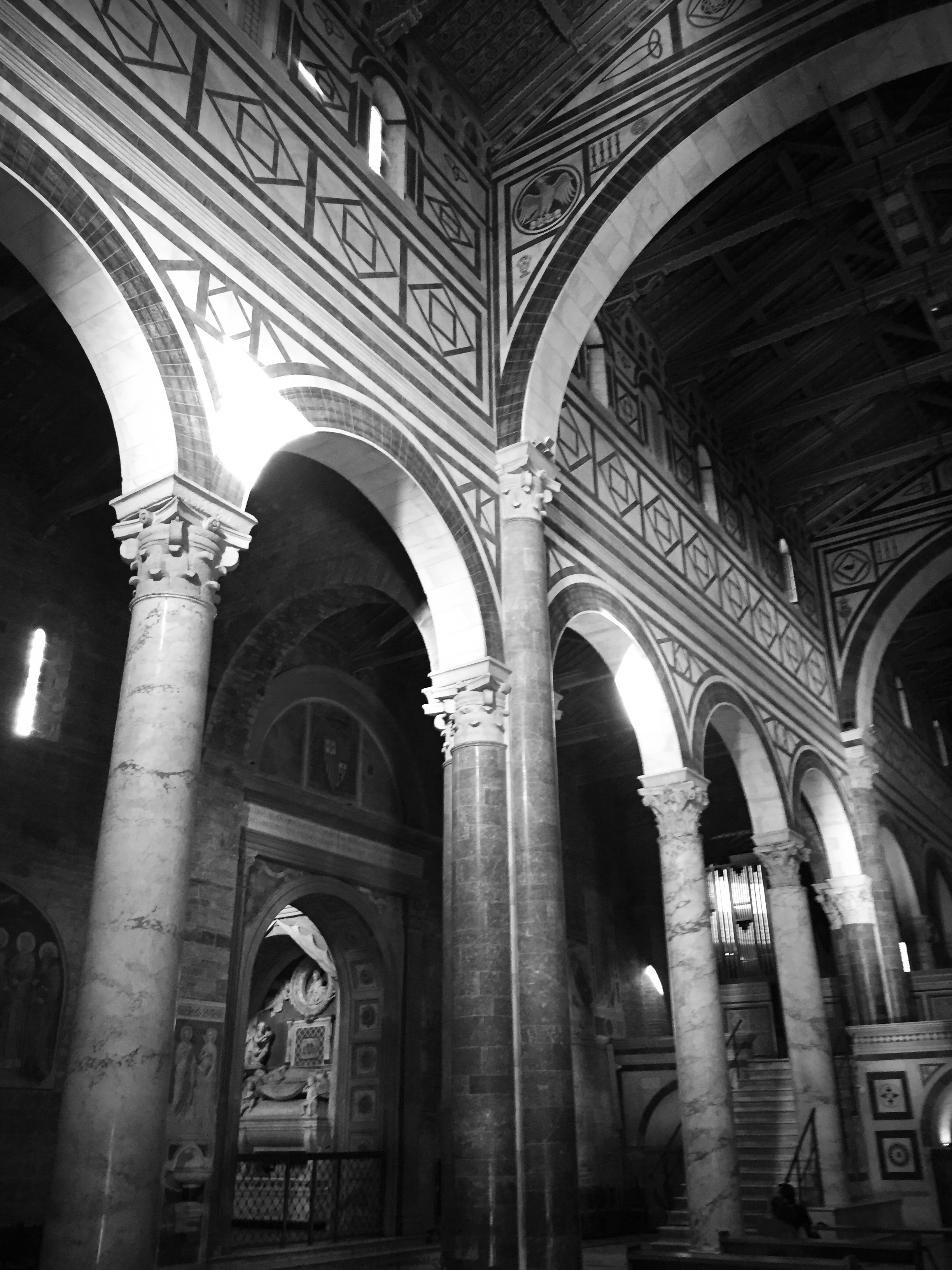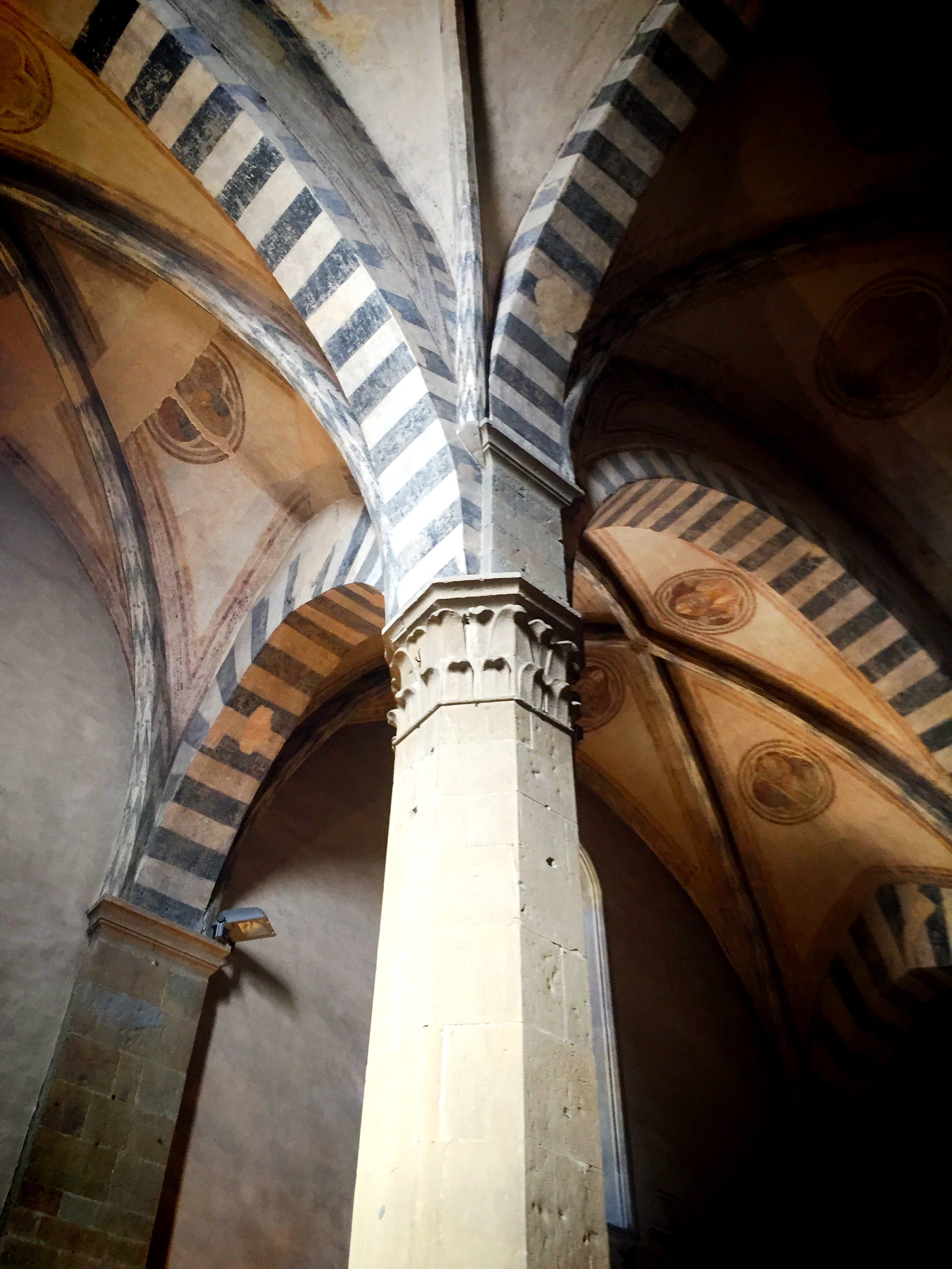 San Miniato was built in about 1018 and honors St. Miniato, who had been serving in the Roman army but was found out to be Christian. Brought before the Roman Emperor, he was given the punishment of being thrown to the panthers in the local Colosseum….but the animals would not attack him, so they decided to behead him. After the beheading, St. Miniato got up, picked up his head and climbed up what was then called Mons Fiorentinus. And this is where the church honoring him would be built years later.