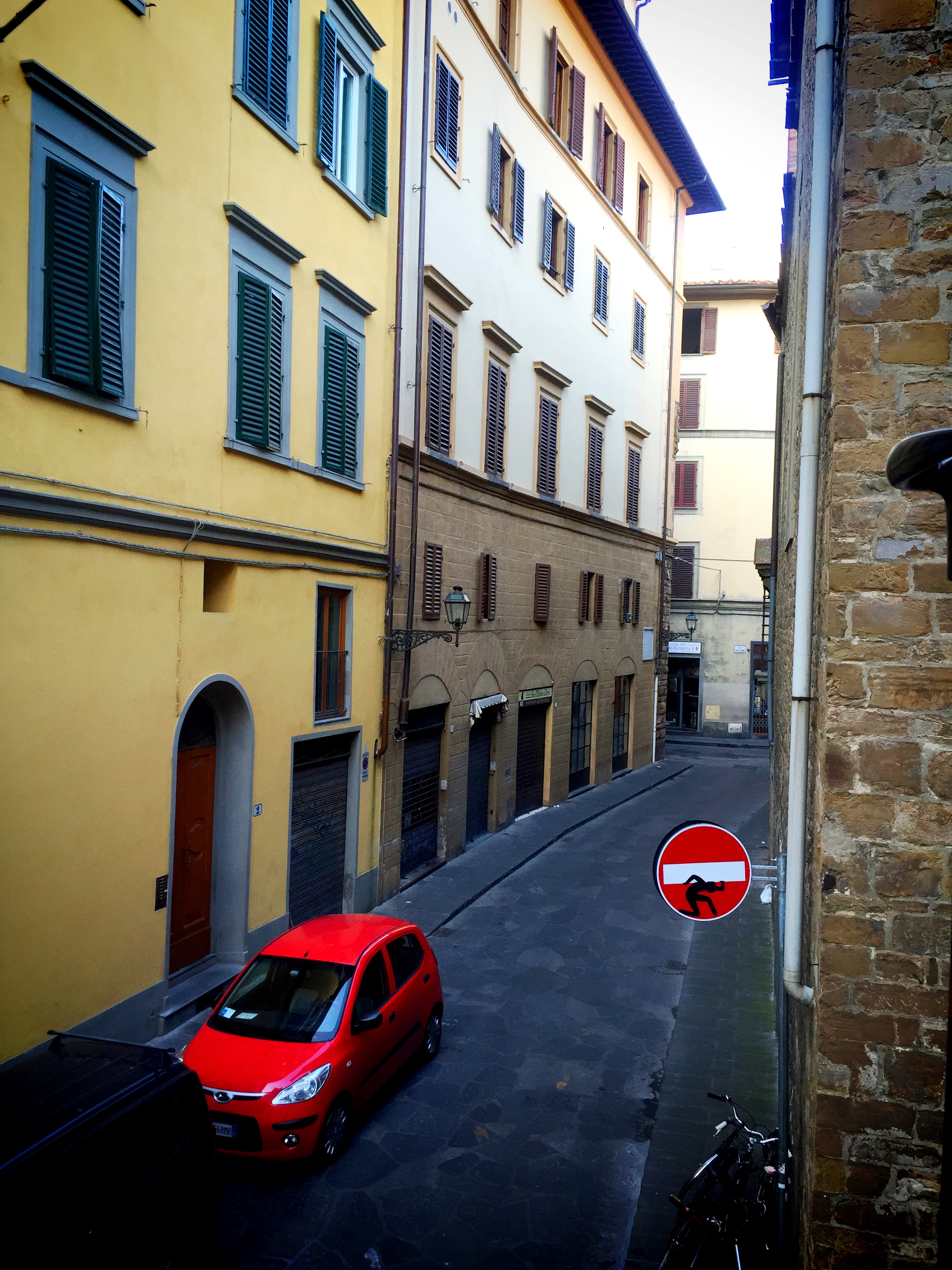 So far, our apartment in Florence has been our favorite. Not because it’s in Florence…just the space itself. It has a lot of charm and it’s very first rate. We are staying on the Via Vinegia, a narrow side street. Literally a few feet from our front door sits one of the oldest churches in Florence…the tiny little San Remigio built in 1200.