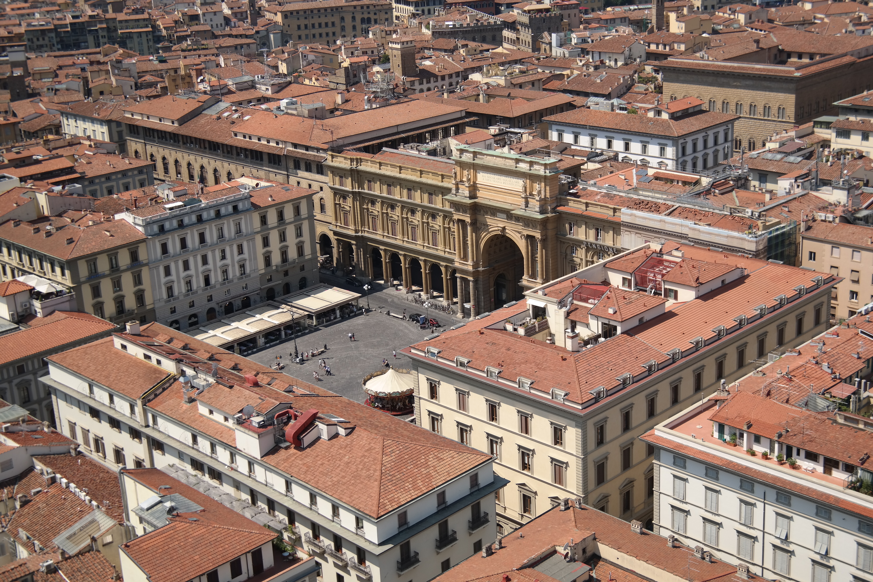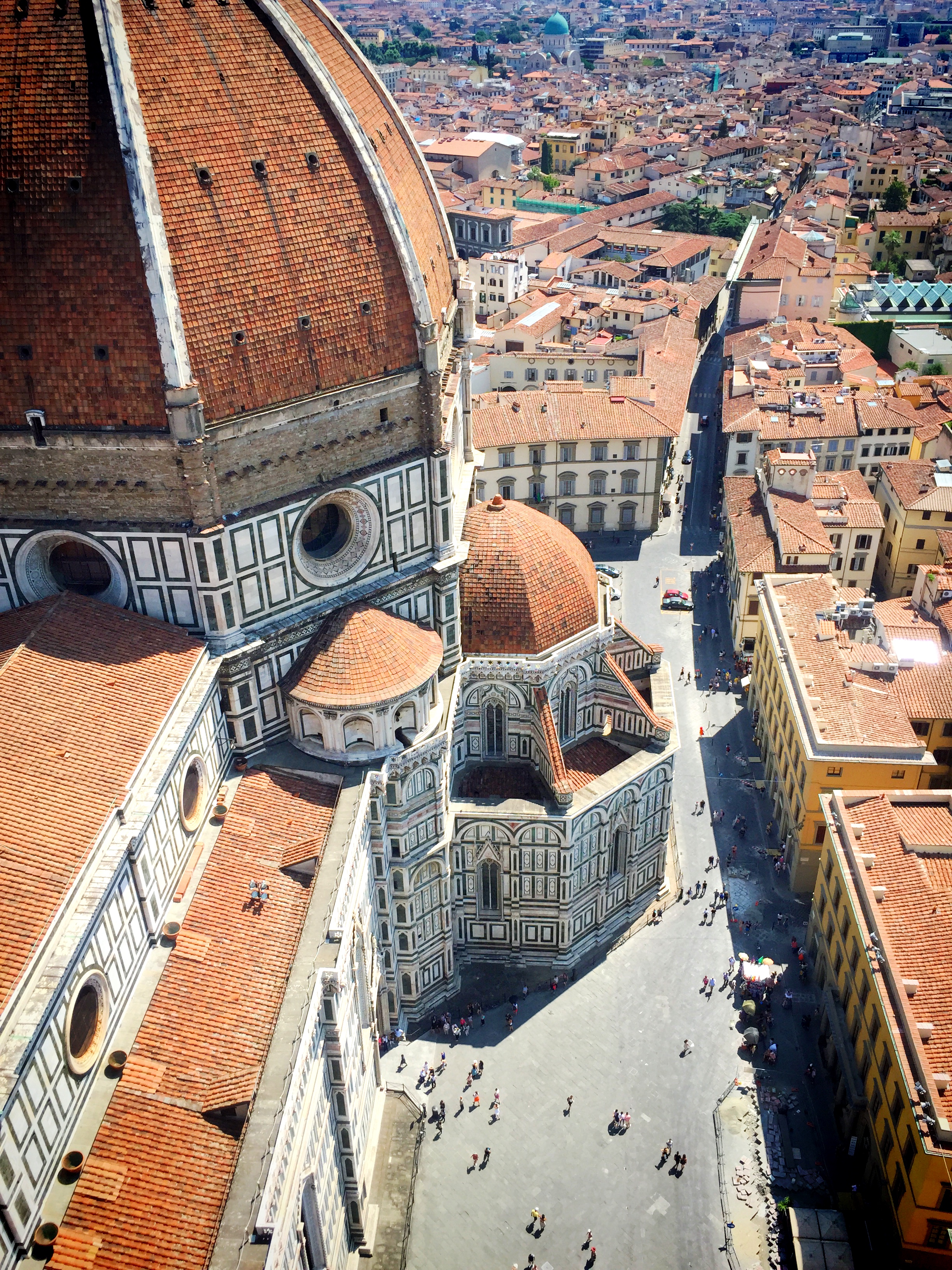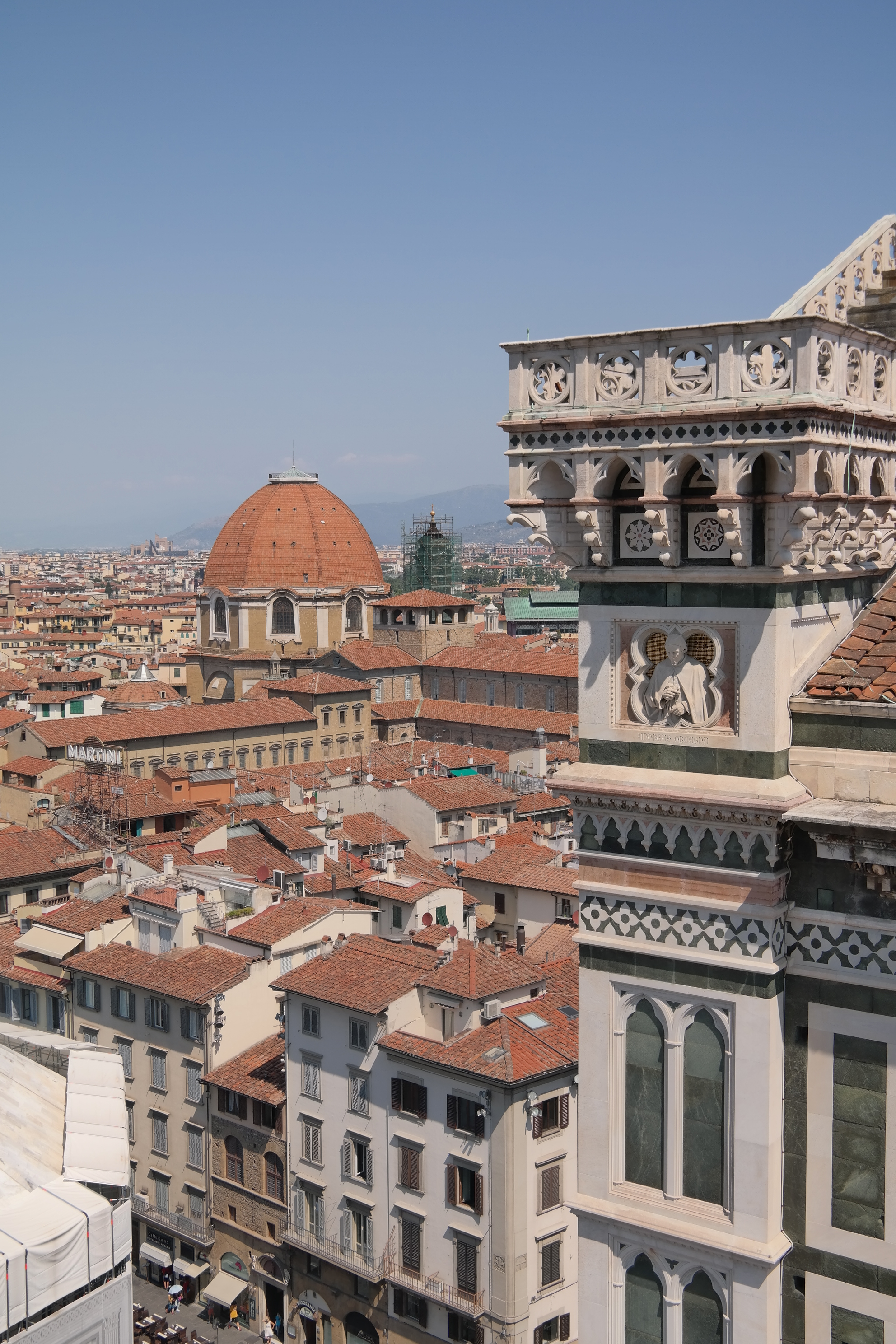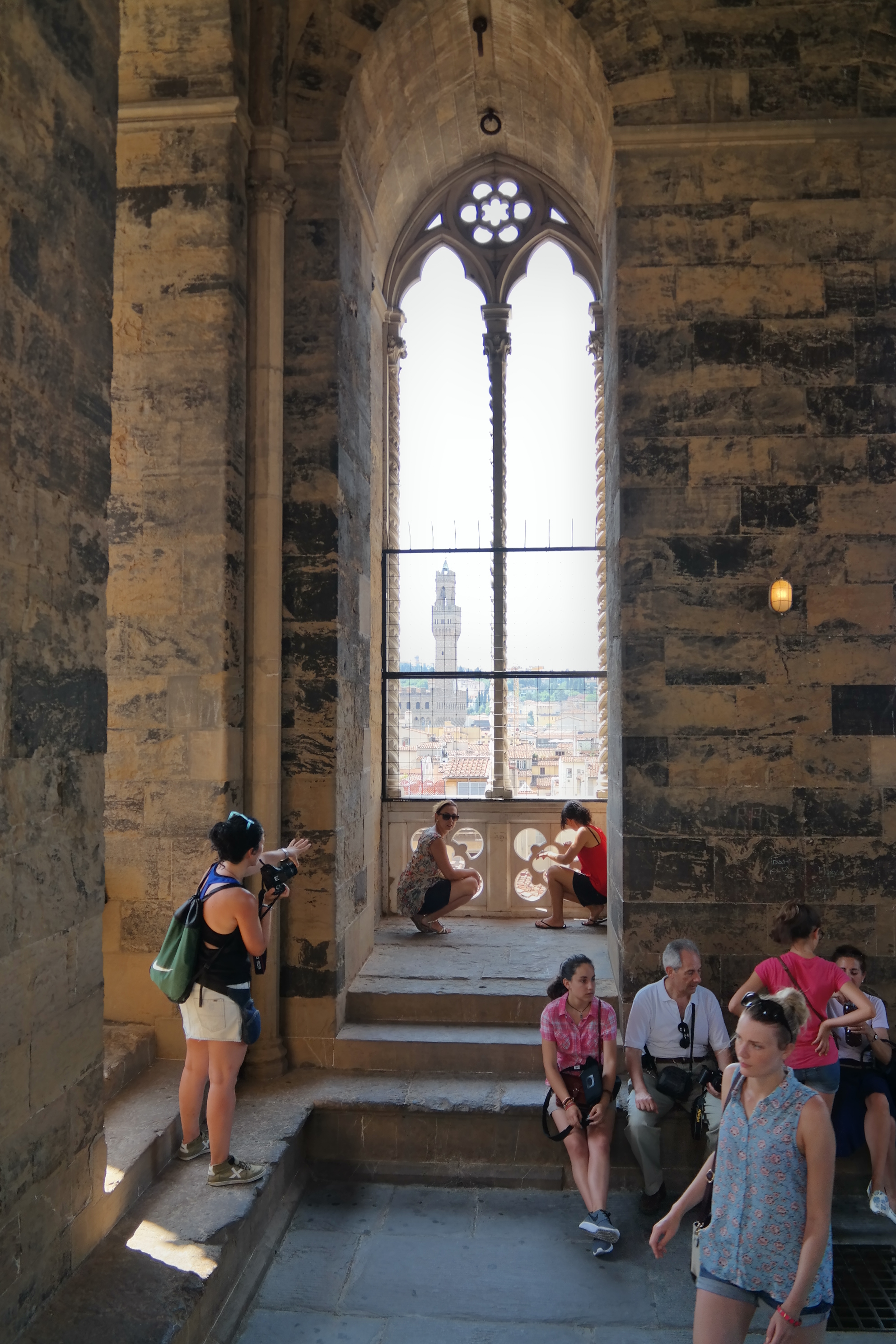 The red and green marble patterns of the facade are beautiful and there are inlaid panels with statuary representing everything from religion, science, farming, astronomy, virtues, etc. The climb was intense, due to the heat and the tiny stair, with people coming up and going down–shoulder to shoulder– and honestly, it smelled like the inside of a 15 year old boy’s shoe. But the pay off was worth it.