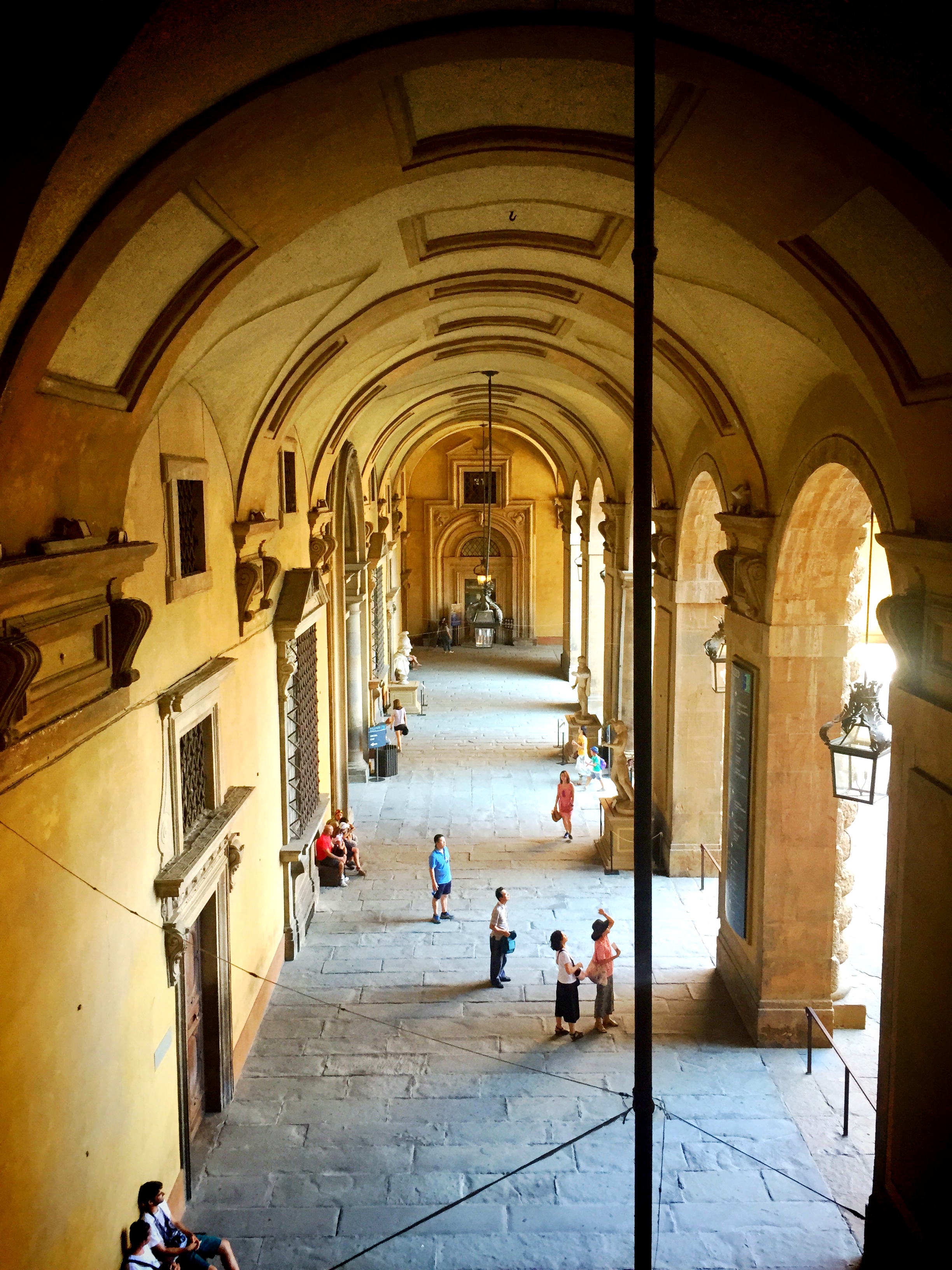 The jury is still out on how much we liked our visit to the Palazzo Pitti. There is no question that it is a grand and beautiful palace. But as a visitor, I have to say that it was all very confusing and there was very little signage in English, so we were never sure what we were looking at…who painted it and when. We didn’t even know where to get tickets…which tickets to get…what to see…what we were seeing. For whatever reason, and to our fault for not doing better research, we were under the impression that we were to tour a Renaissance Palace…decorated and in the style of the Renaissance period. However, since the Palace was used from the 1550’s up until the 1920’s (when it was donated to the City)….the decoration and decorative arts were from a HUGE array of styles and periods, most of it being in a revivalist 19th century style. Once again, very beautiful, just not what we expected. There was also a costume exhibit in one wing showing the fashions of several individual female Italian style makers…from the 1920’s up women of today….but even that exhibit was a bit wonky.