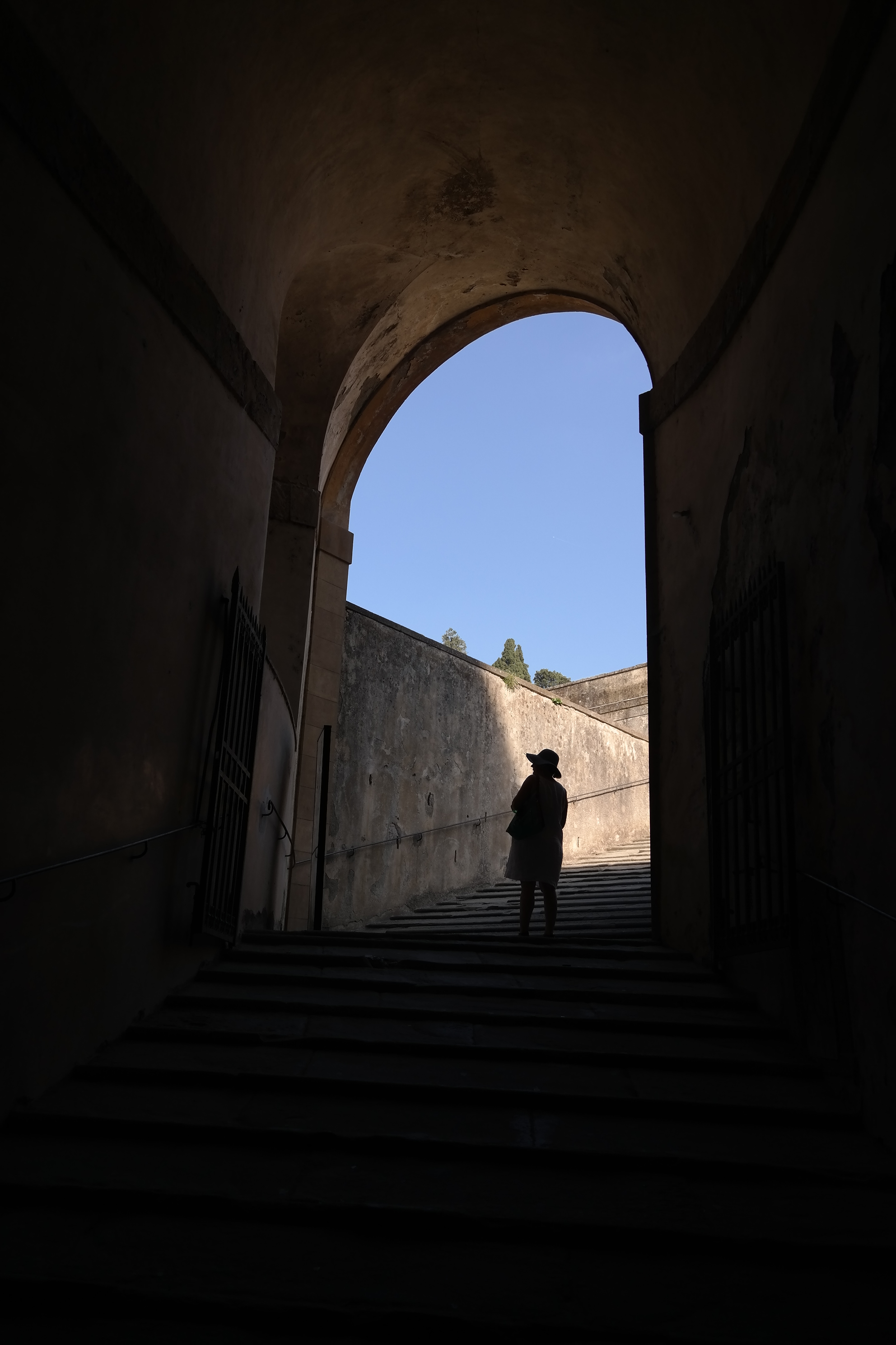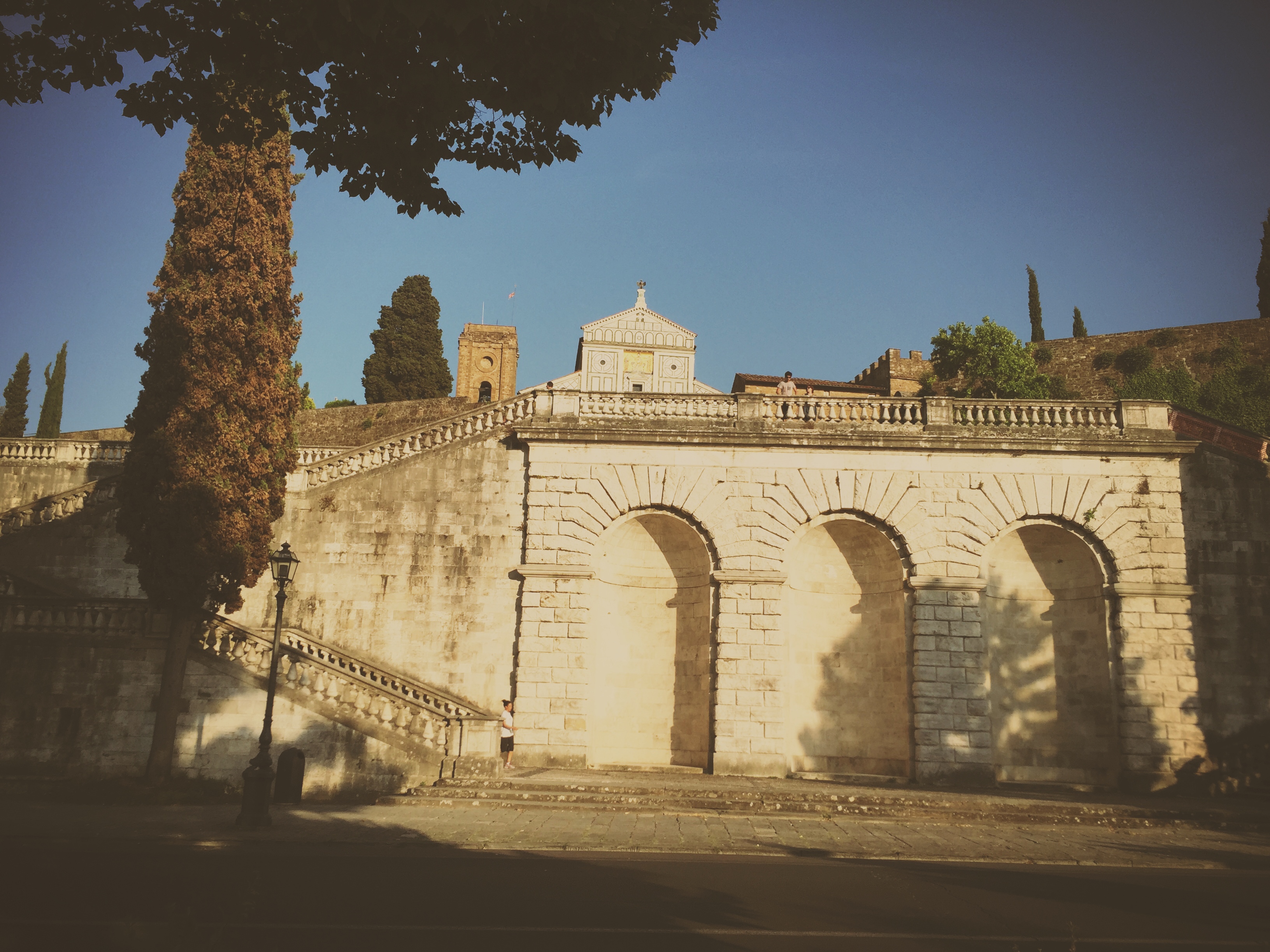 The day was winding down…we had already climbed 400+ steps up the campanille in the morning and then walked around Florence all day, not to mention the ALL uphill tour of the Boboli gardens. But despite that, we were determined to walk up to Piazzale Michelangelo, a famous square way up on a hill offering a panoramic view of Florence…where we would see the sunset. We would also visit San Miniato, a beautiful little gem of a church on Florence’s highest point. But first, we had to get there. We passed through a very quaint neighborhood on our way there.