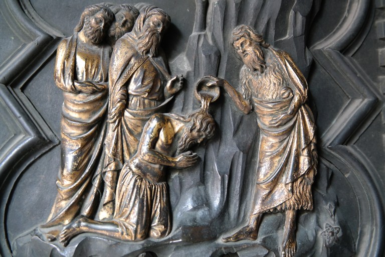 The Baptistery is also known for it’s famous bronze doors…two sets for each entry. These intricately sculpted doors tell various New or Old Testament stories from the Bible. One set famously called the “Gates of Paradise”.