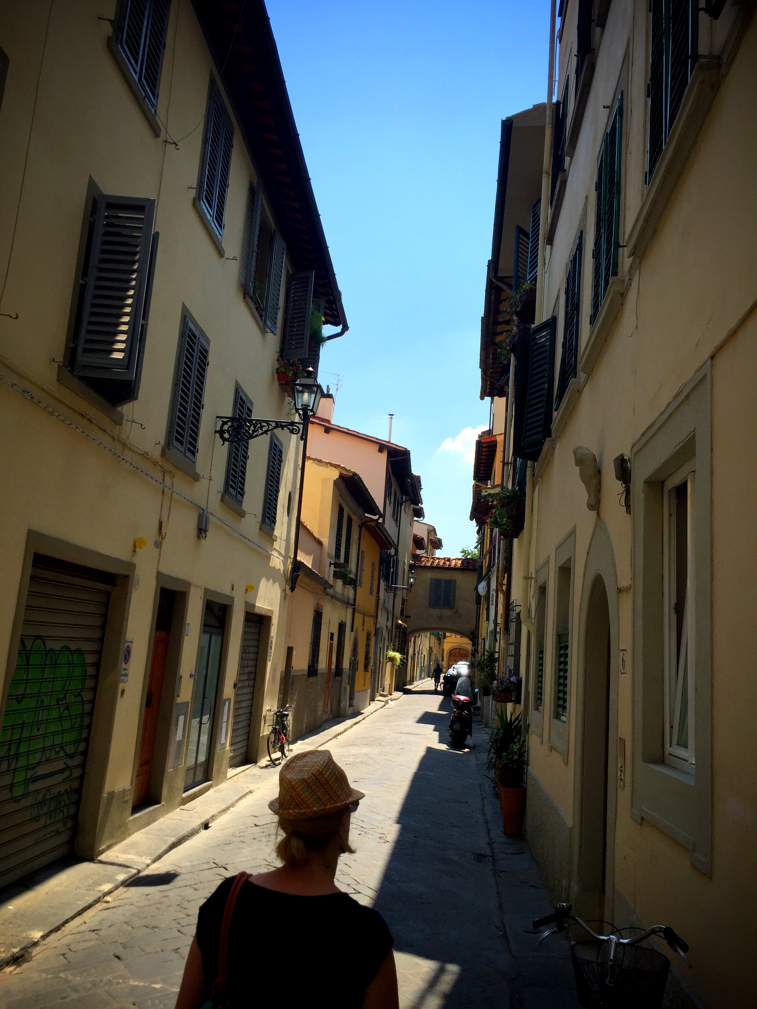 In the blazing sun, we decided to across the Arno river and visit the quaint neighborhood that we had seen the other day when we visited the Palazzo Pitti….but nothing is really all that quaint when it is 100 degrees under a relentless sun. But we did manage to pick up a few more gifts.