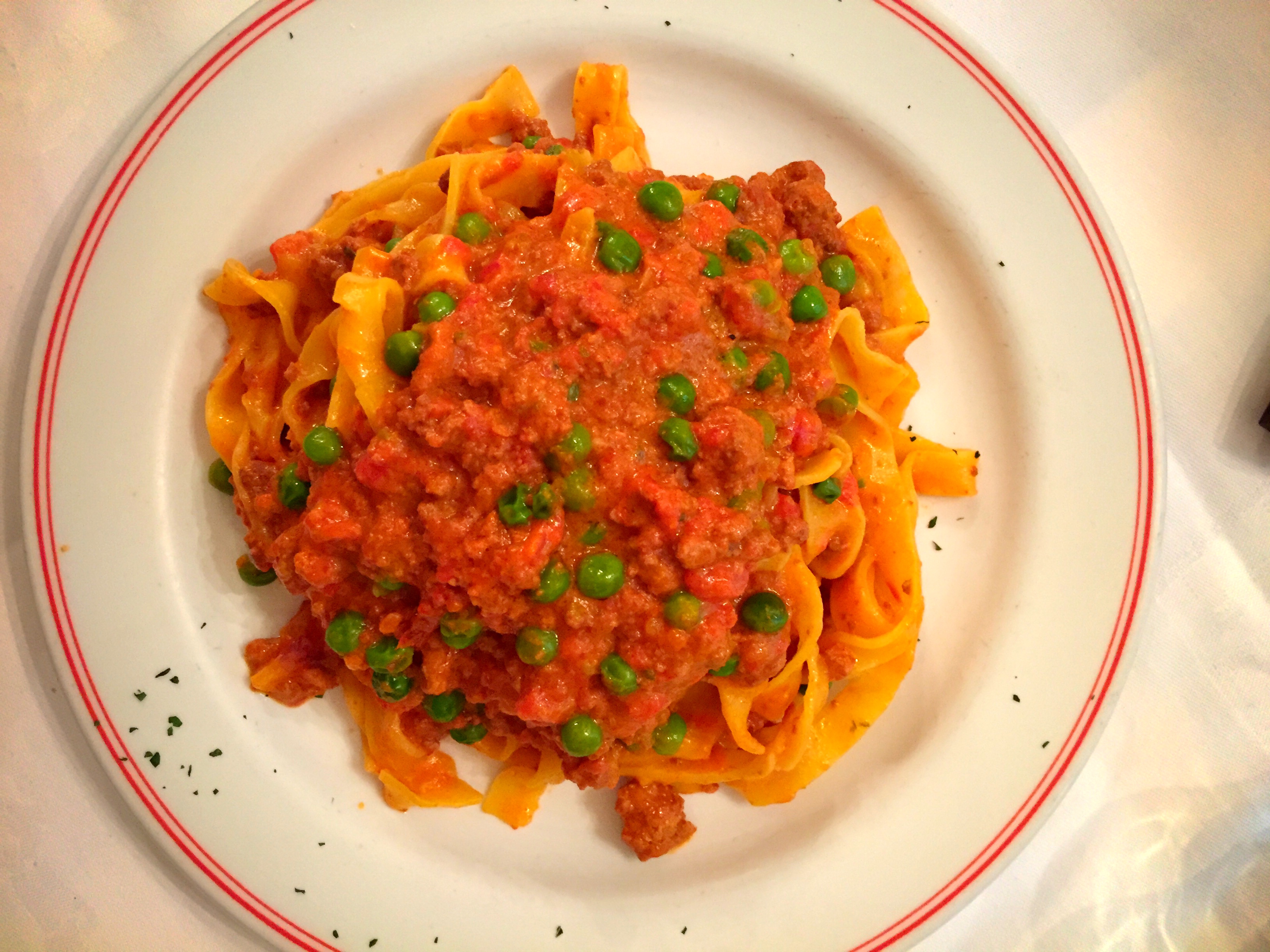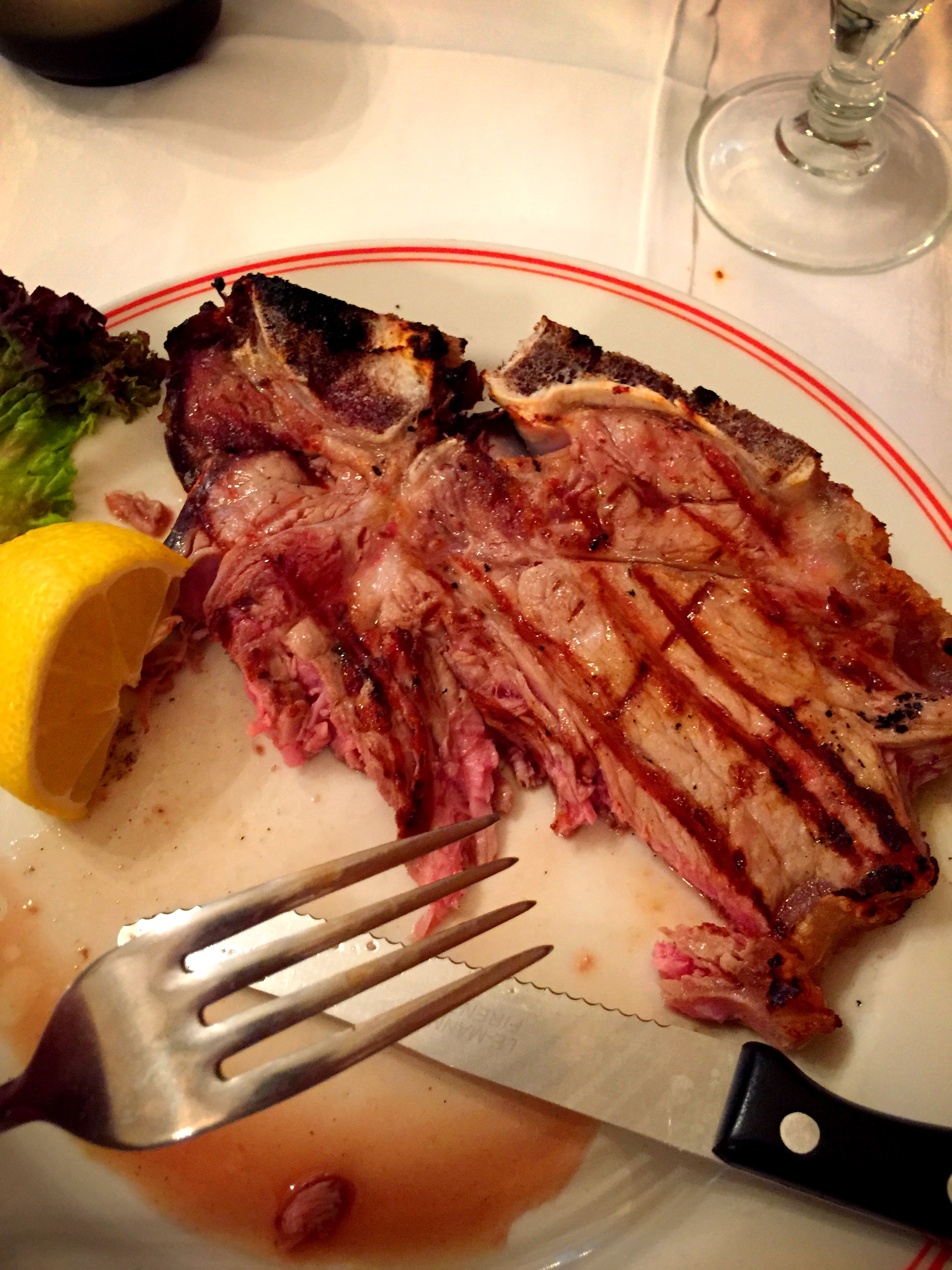 Our day ended with another delicious meal…the food in Italy is obviously very delicious. We have not had a bad meal the entire time. We went to a little trattoria right around the corner from our apartment. Josette and I shared a Florentine steak (remember those cows we saw at the vineyard farm the other day?)…as well as a pasta with a ragu…and Lena enjoyed tortellini in a cream sauce and a flan with chocolate sauce.