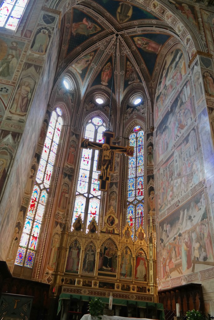Many of the frescoes that adorn the walls of the 16 side chapels were painted by Giotto and his pupils.