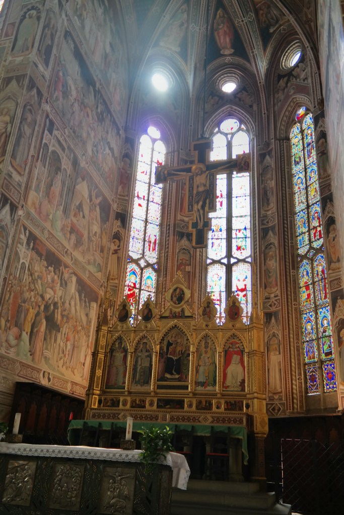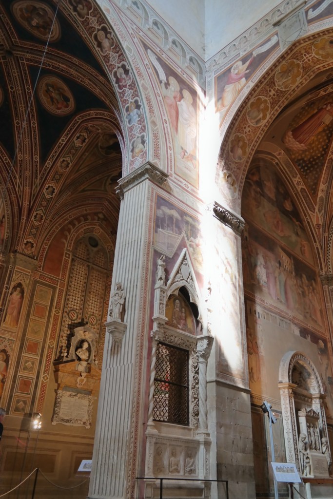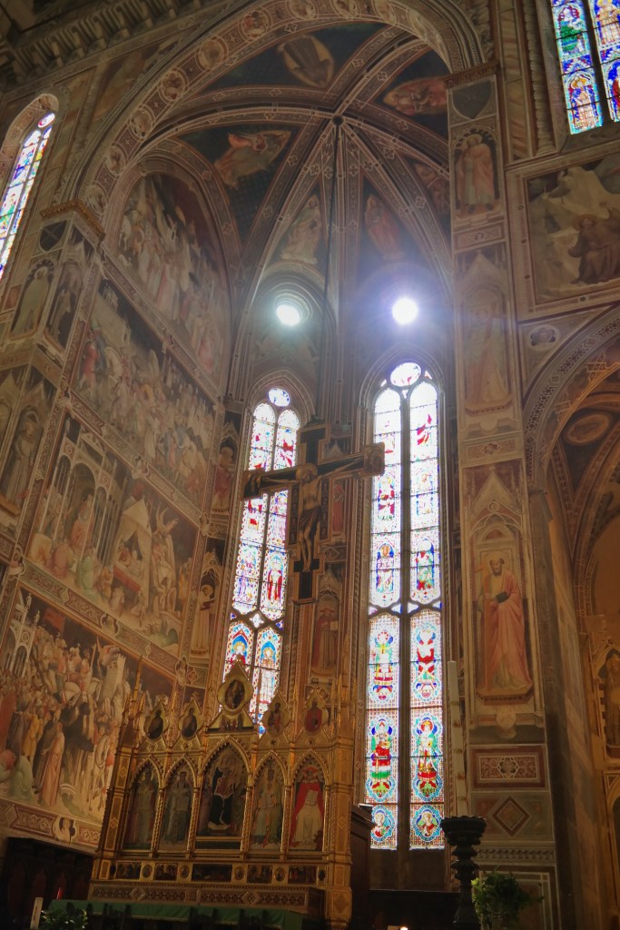 Santa Croce was beautiful…I think the frescoes on the walls were the most outstanding and the hardest to photograph. Most of the chapels have large iron gates closing them off and it’s hard to get a camera lens to photograph a wall that is perpendicular to the lens. We stopped in the Scuola del Cuoio (Leather School) and picked up a few little leather gifts for family & friends…and treated ourselves, as well.