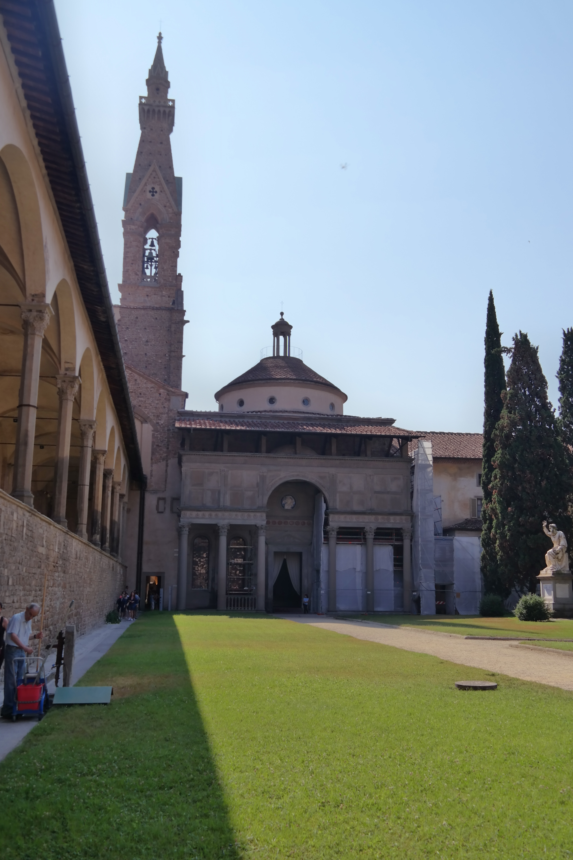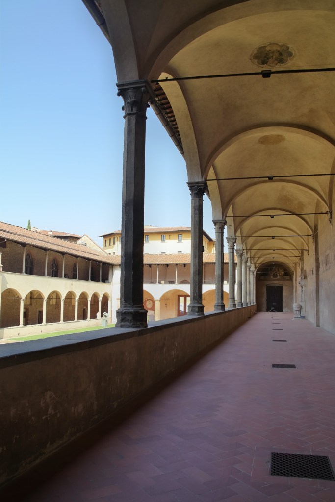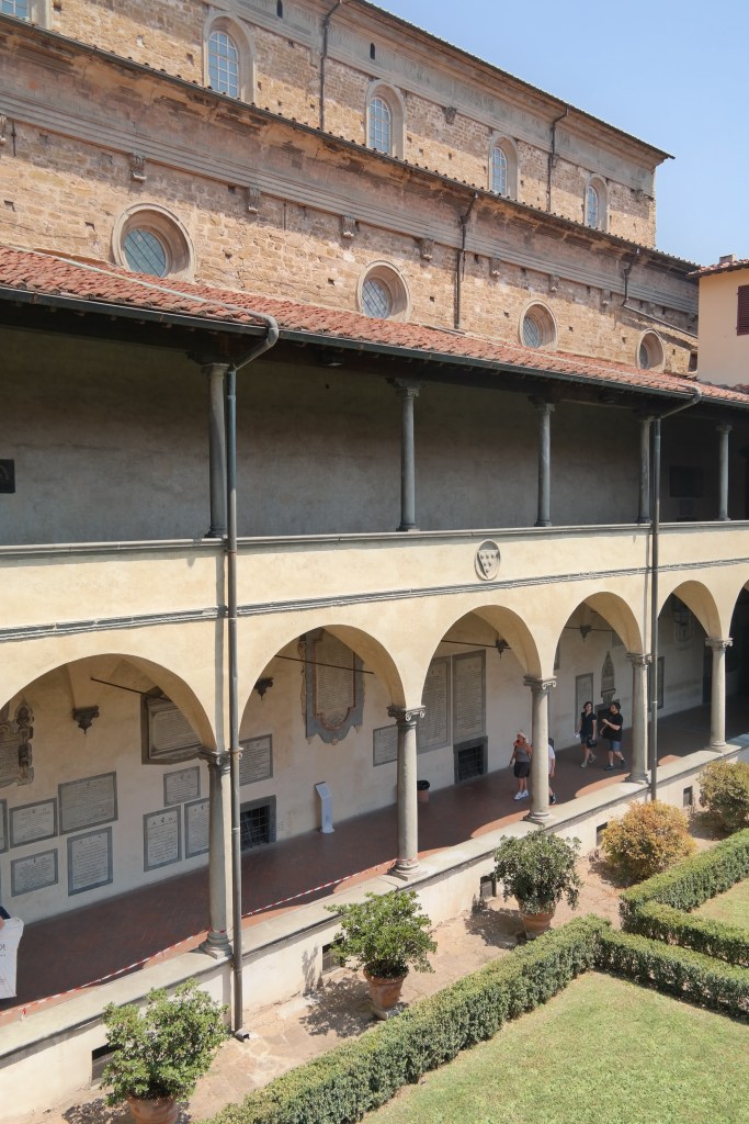 Santa Croce is a large complex comprised of several sets of cloisters, at one point in history there was a convent to the South of the Church, and it houses the famous Pazzi Chapel, whose dome was designed by Brunelleschi (designer of Florence’s famous Duomo dome). The Pazzi Chapel is considered a masterpiece of Renaissance design.