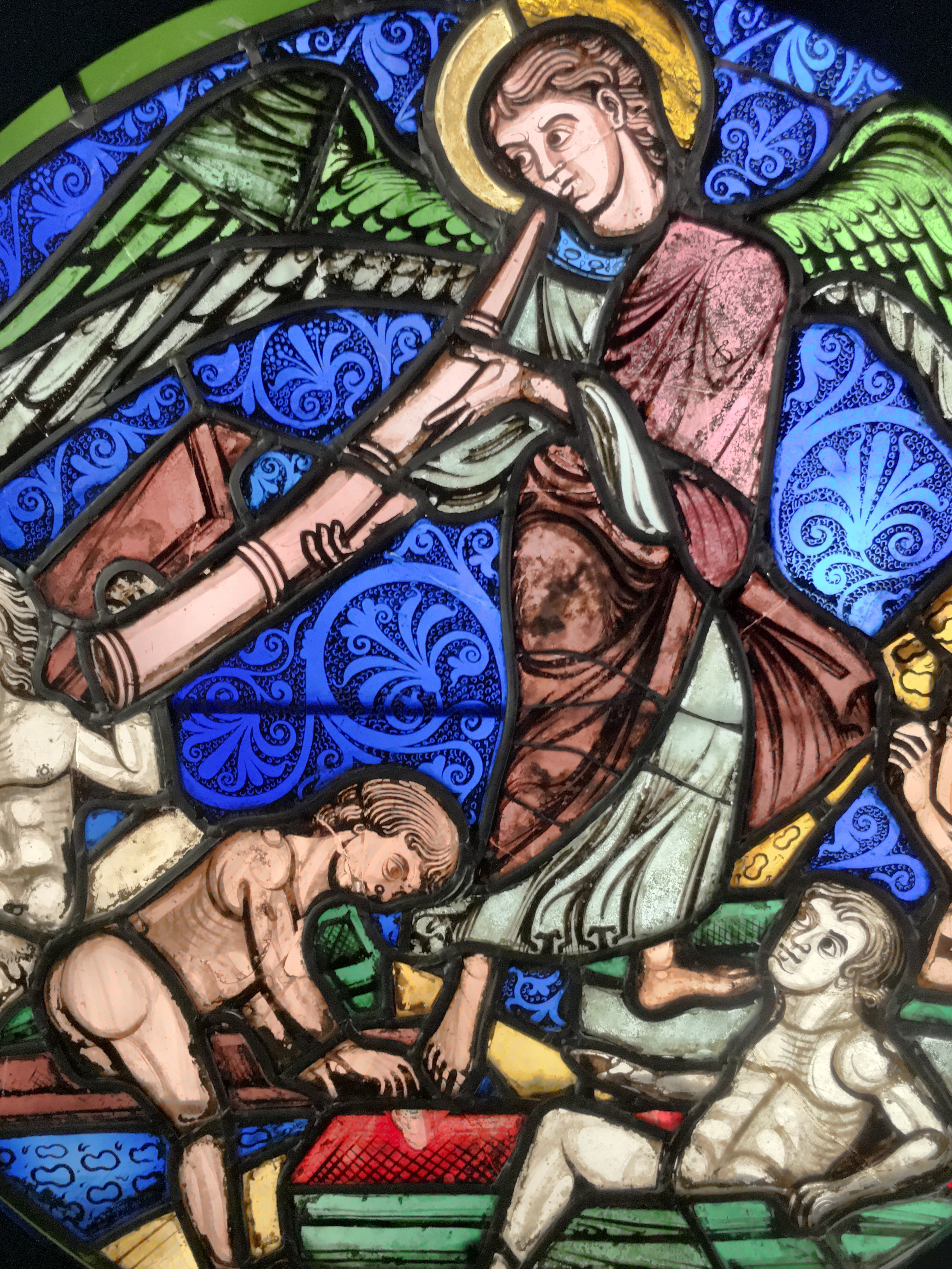 If you recall from a previous post about Sainte Chappelle (the beautiful stained glass Chapel that we visited), the Cluny possesses some of the original stained glass removed from Sainte Chappelle during the French Revolution, when the chapel was severely damaged. It’s interesting to get a chance to see the pieces up close and try to understand the technique. Many of the pieces are  3 dimensional.