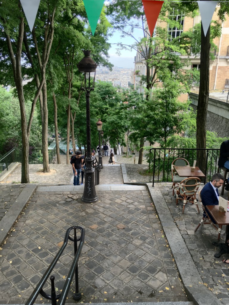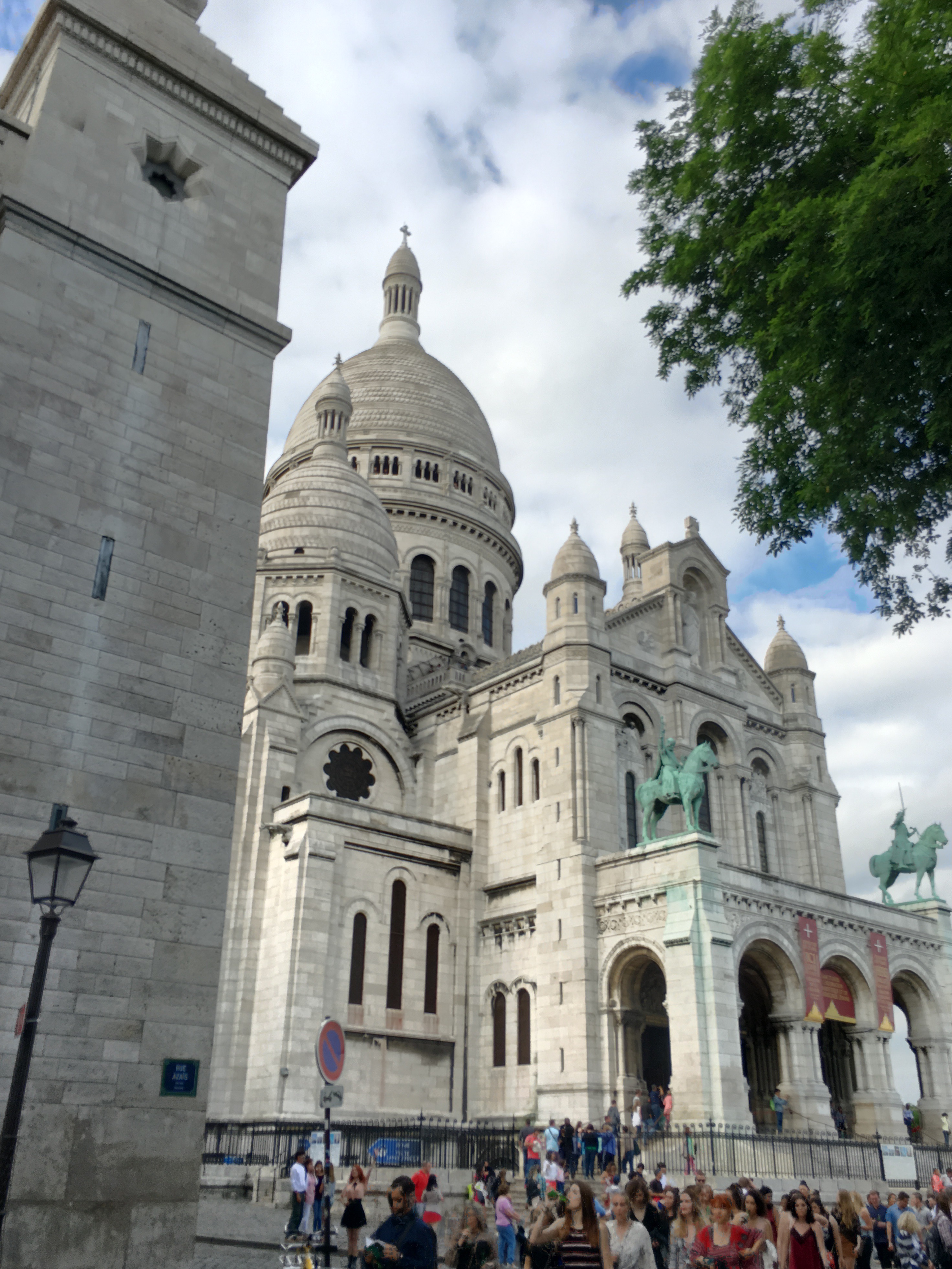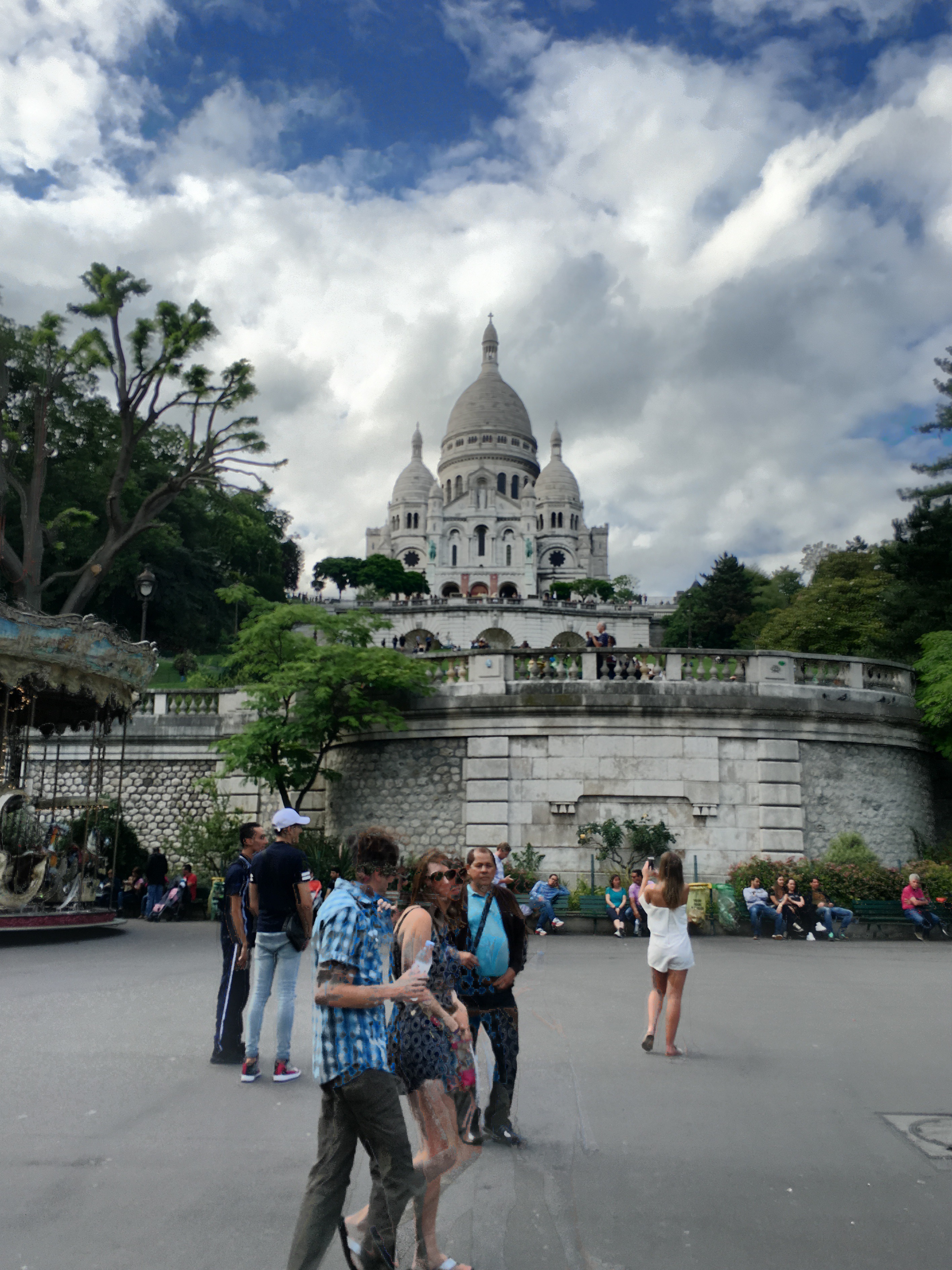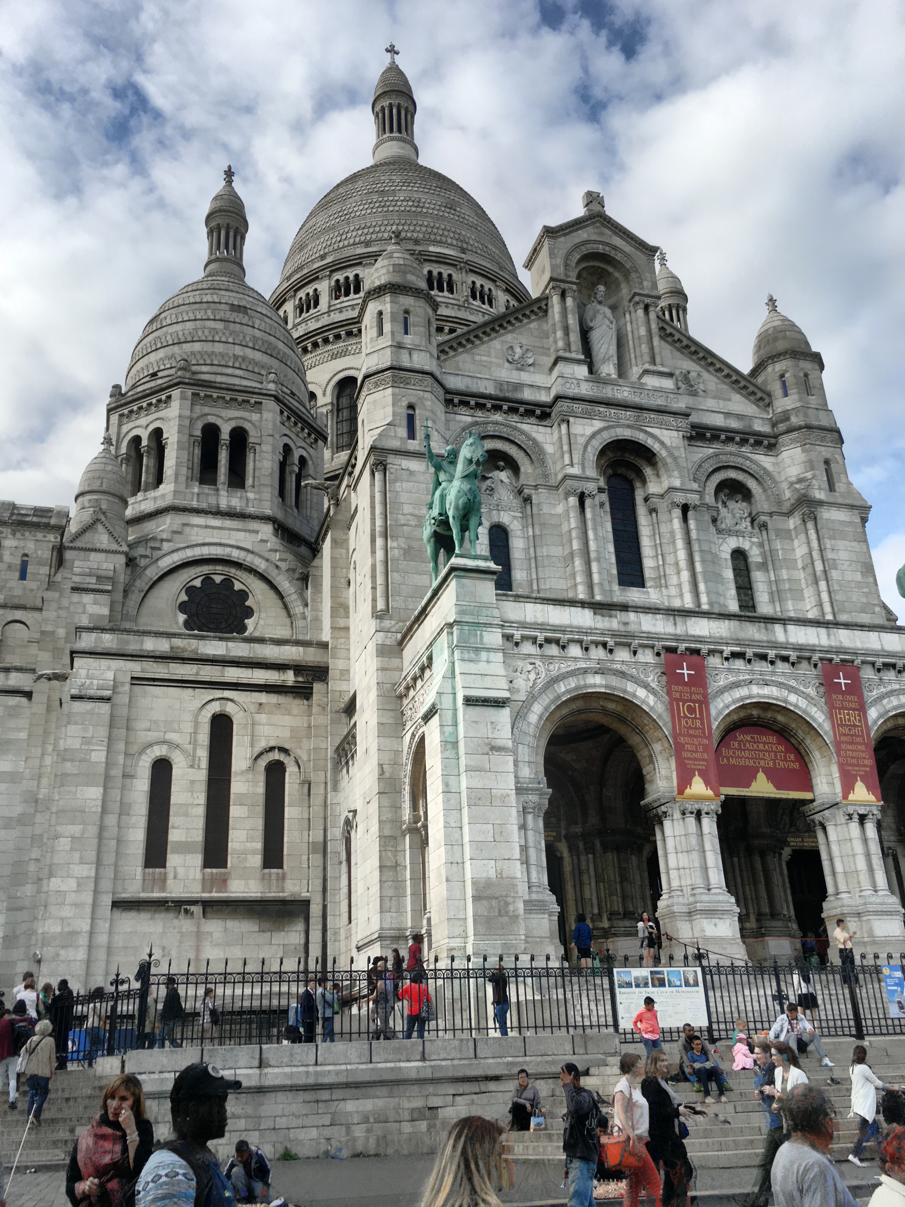 And as if the day had not been long enough, we decided to go all the way up to Monmartre to take in a sunset view from Sacré-Cœur.  On our last visit to Paris, this was not one of our favorite spots. The view is amazing and the church is gorgeous…but the area is seedy. Throngs of annoying tourists, mostly young people smoking and drinking, but also the home to loads of scam artists and pick pockets.  On this visit, I had a bit of an incident with a guy trying the string bracelet scam…he actually grabbed my wrist and when I pulled away and said “no thanks” he grabbed my shoulder and wouldn’t let go.   In hindsight, I’m embarrassed, but little old me told him to get away from me, and I threatened to punch his face if he didn’t let go of me.   Probably a stupid move as he had at least 20 friends around trying the same scam…but we came out unscathed.   I suppose with the previous terror attacks, the police have other priorities in the city….we didn’t see any police at all at Sacré-Cœur, so these scam artists have no reason not to be aggressive.  Be forewarned…it was like this 2 years ago, and has only gotten worse (IMHO).