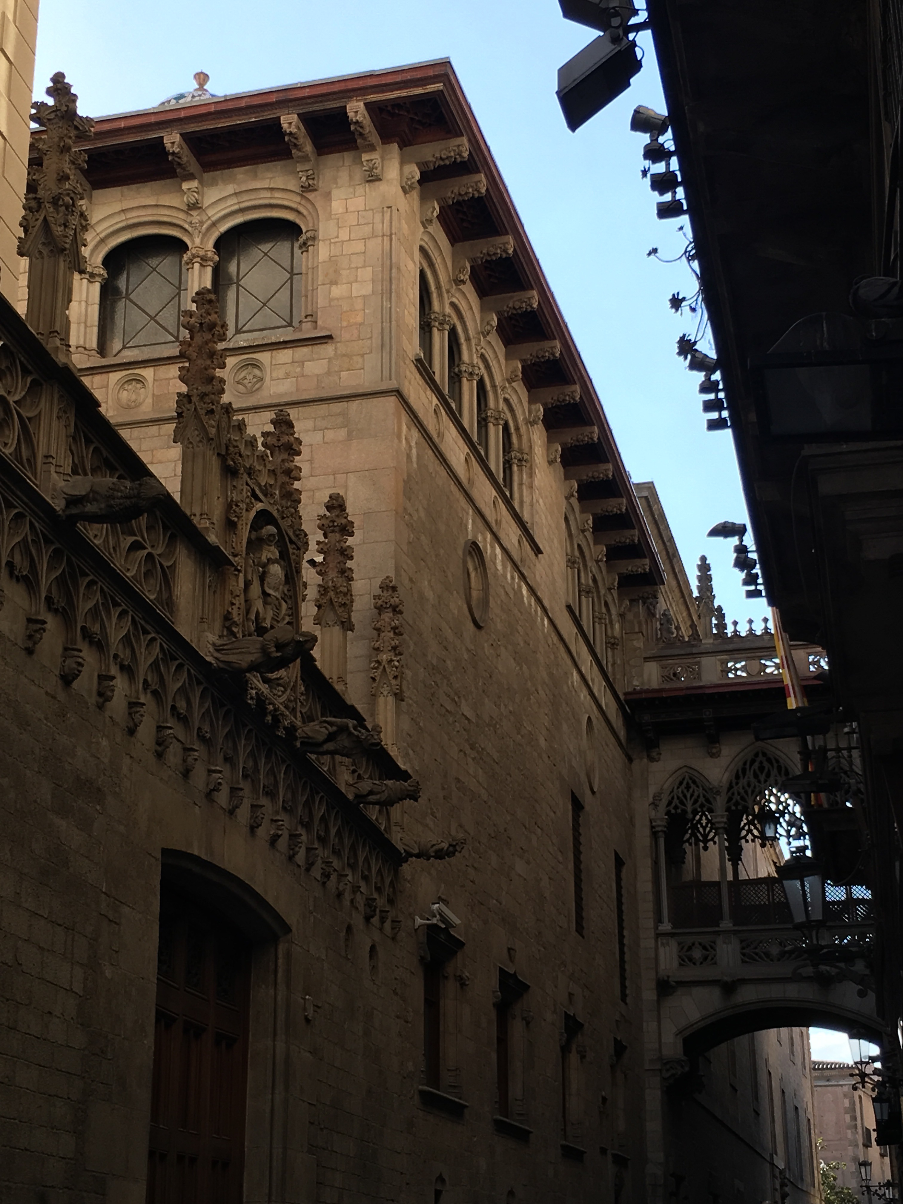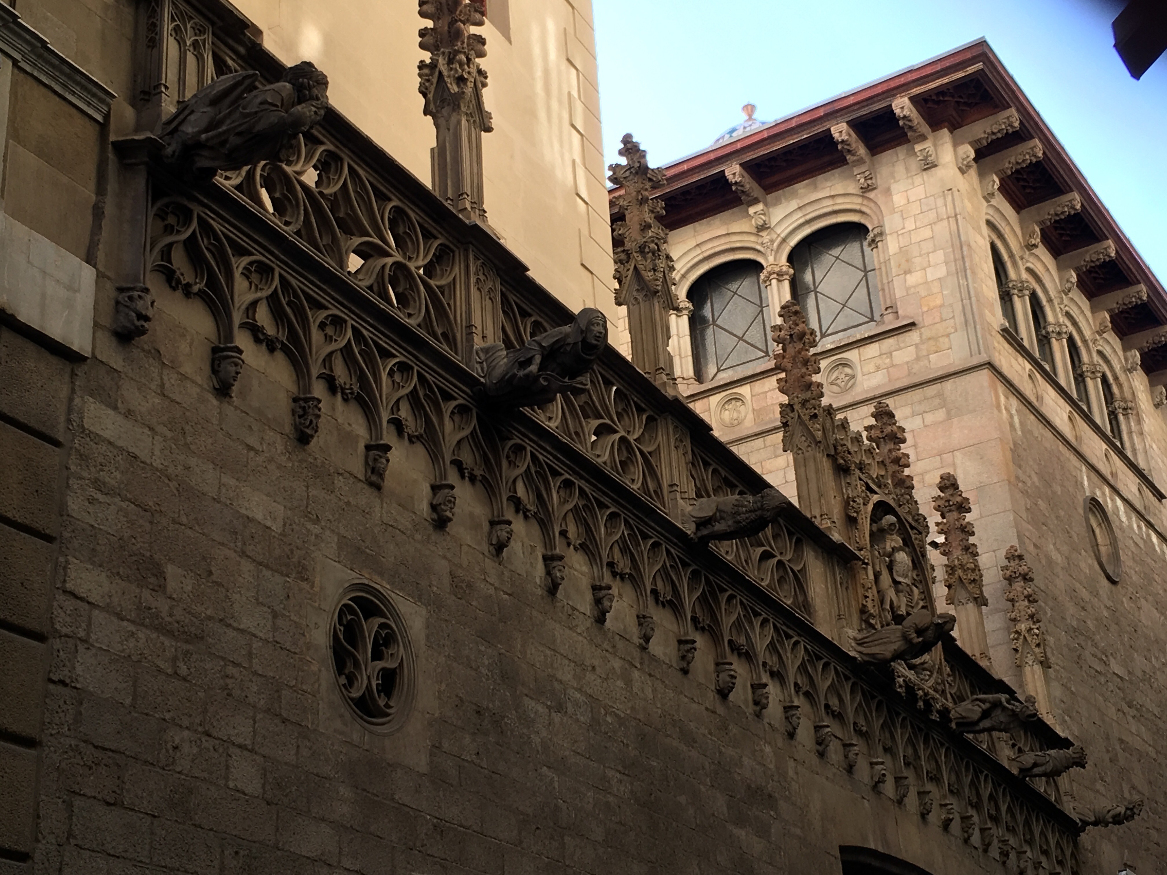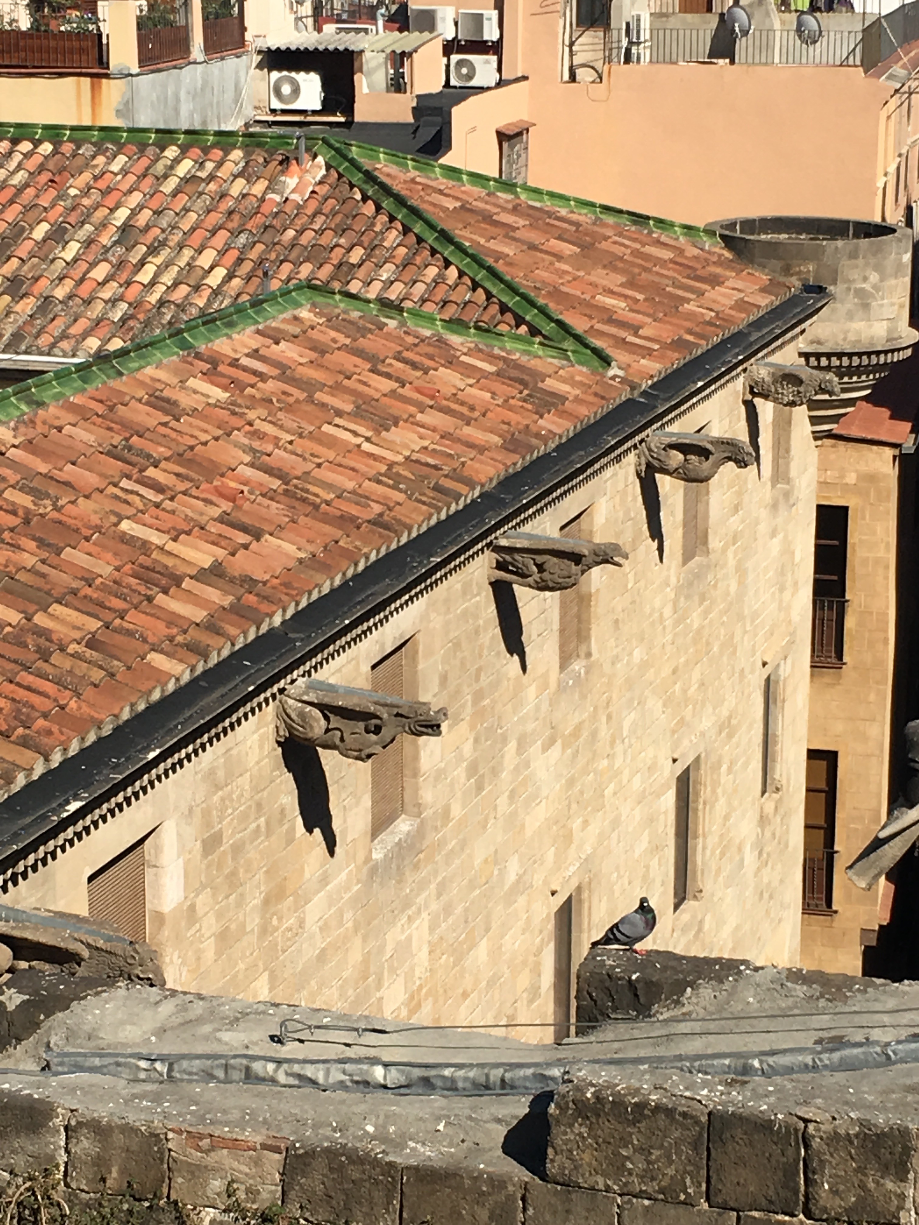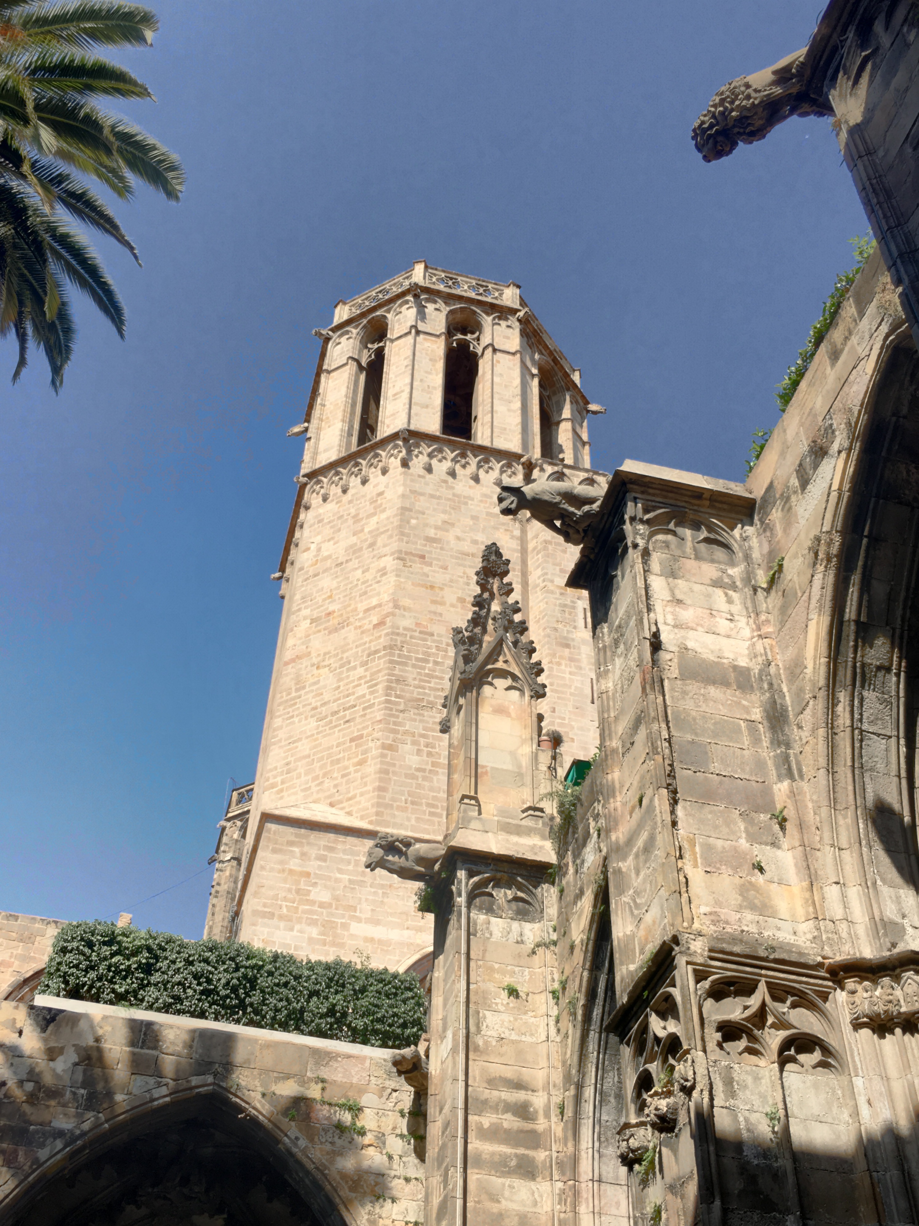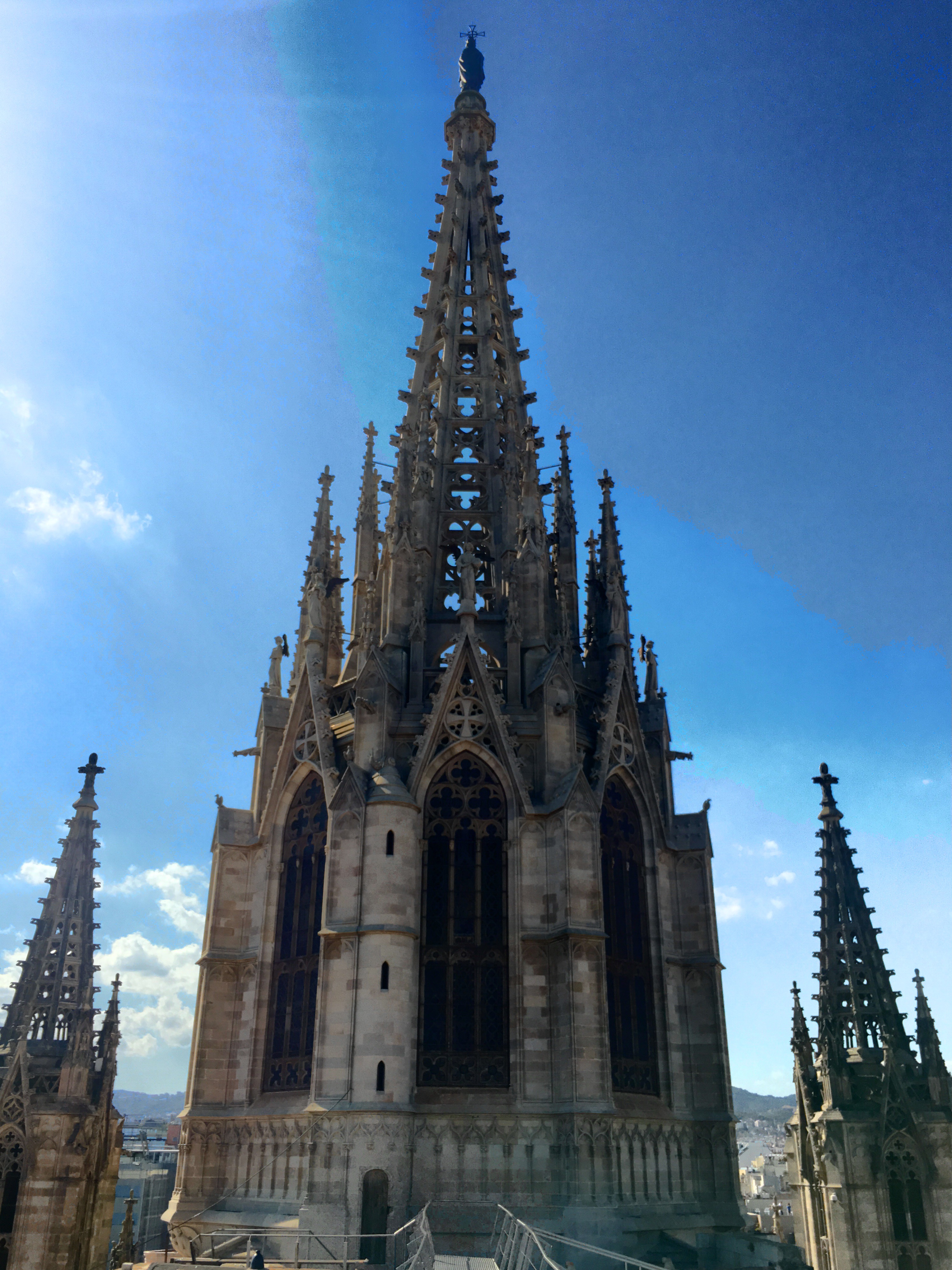The plunge pool is minuscule, but we were the only ones on the roof besides a bar tender….so I had a nice drink and Lena got to cool off. We were then ready to explore the city. We are only a short distance from the oldest part of the city, the Gothic quarter. This is the area built in the Middle Ages, with narrow little streets that twist and turn and open on to squares, typically with a church or some other building of significance.