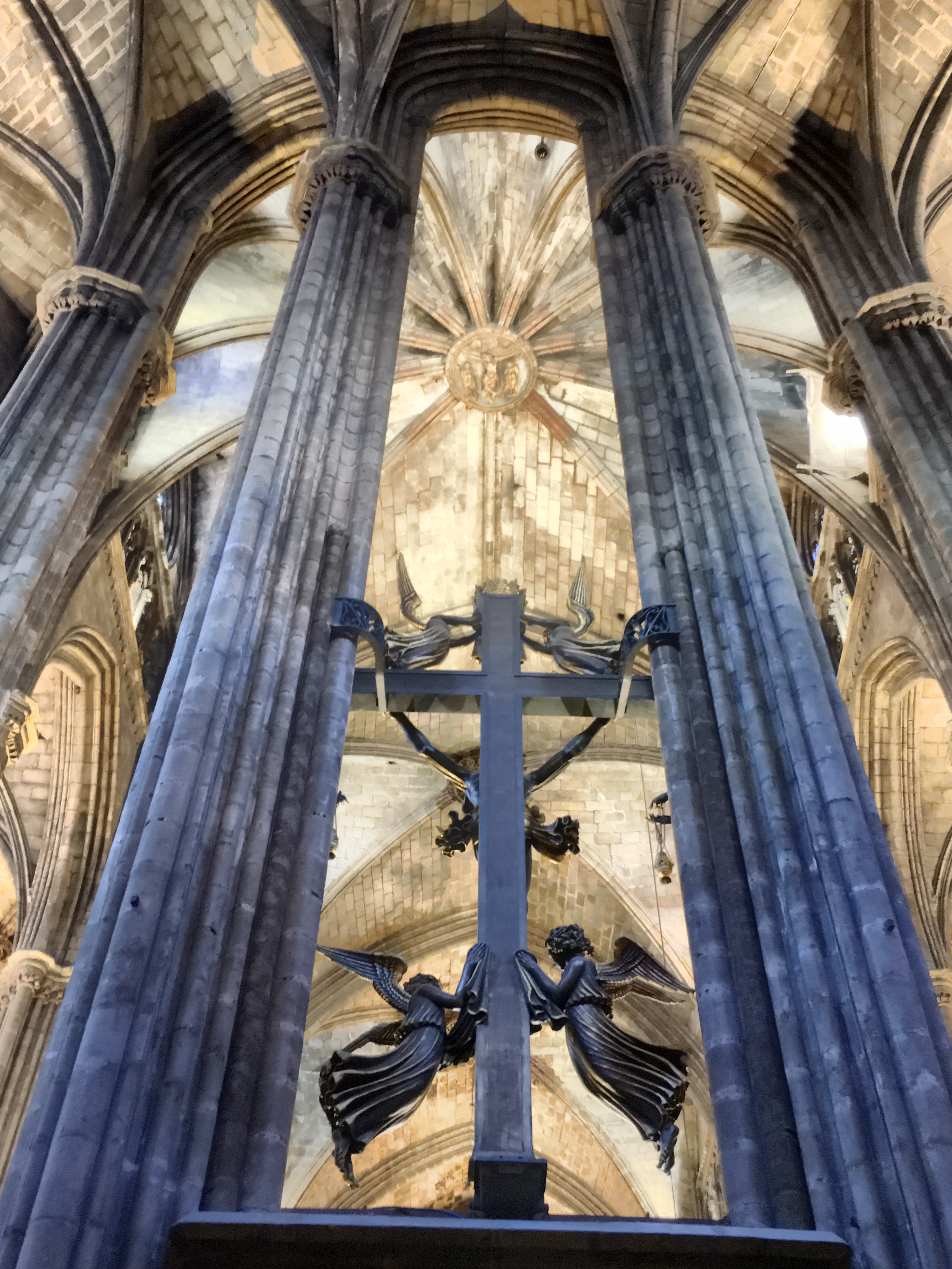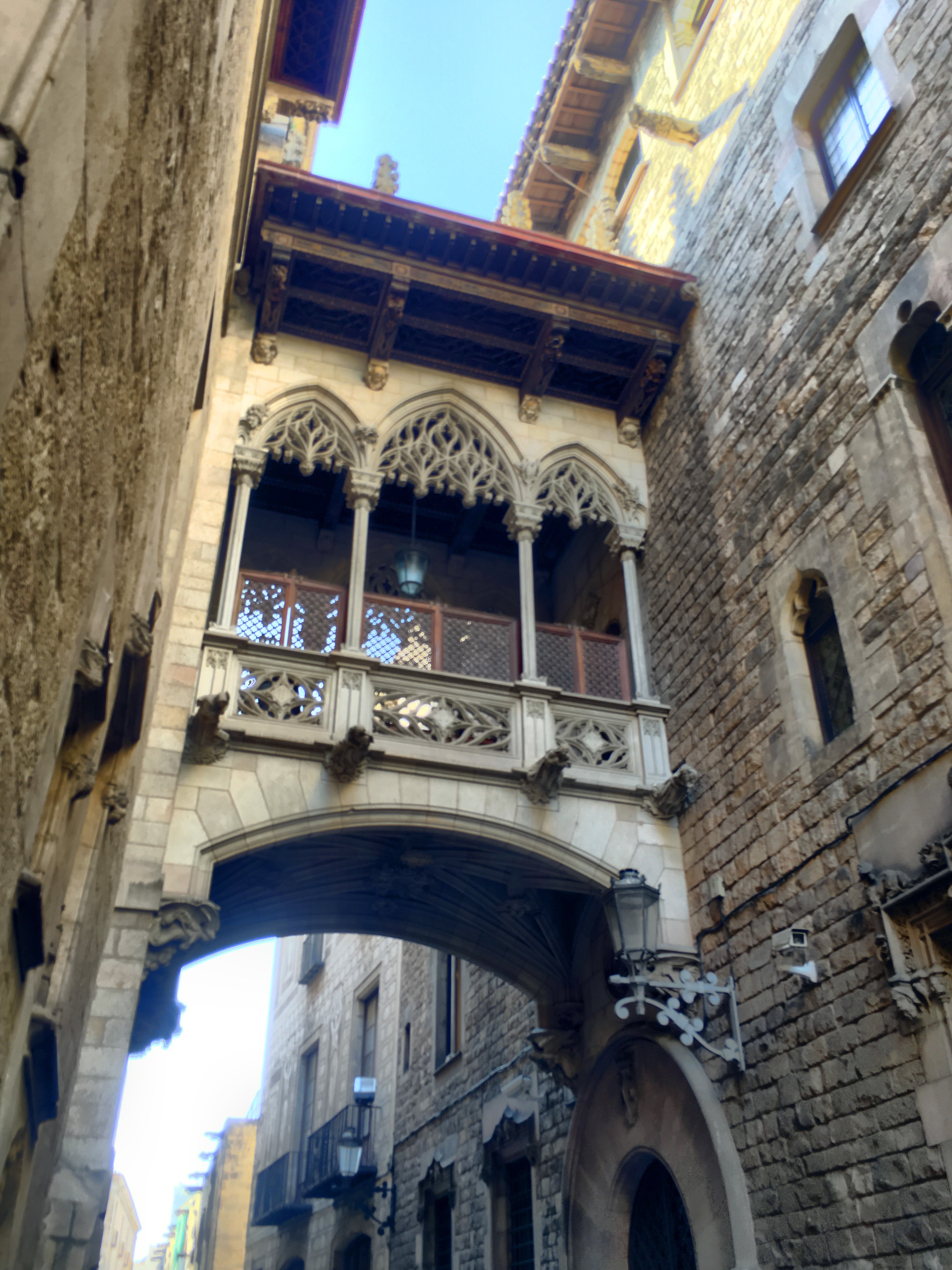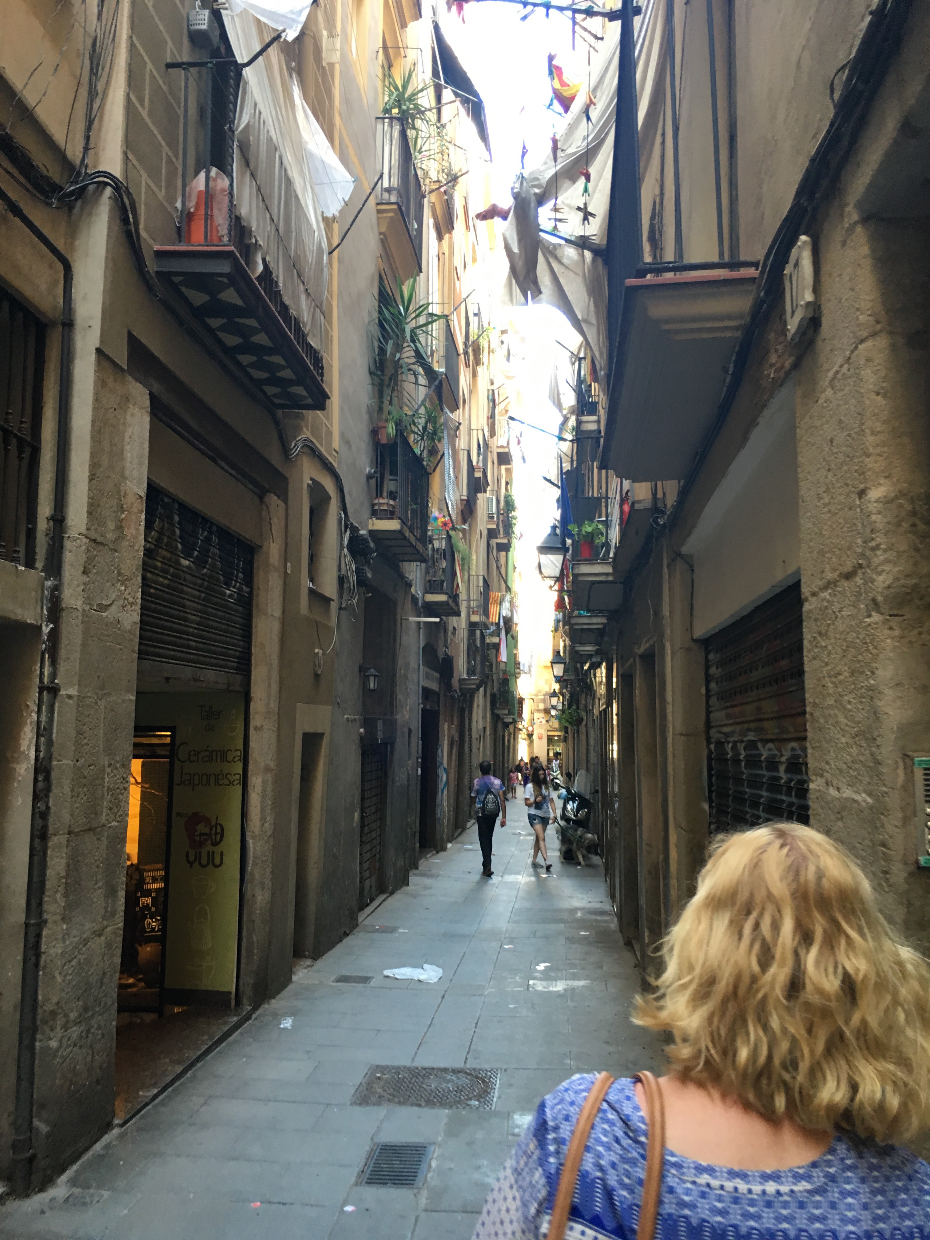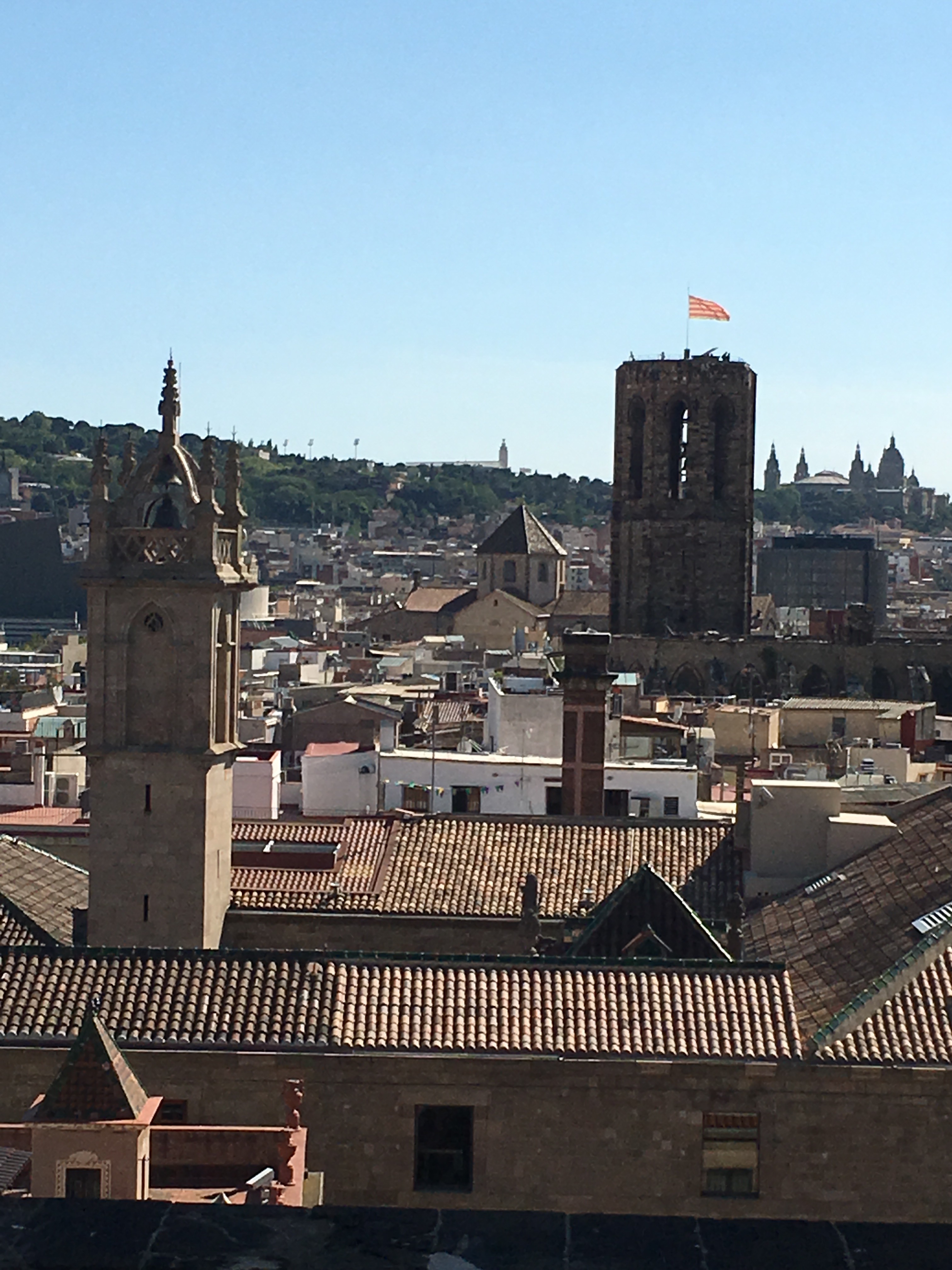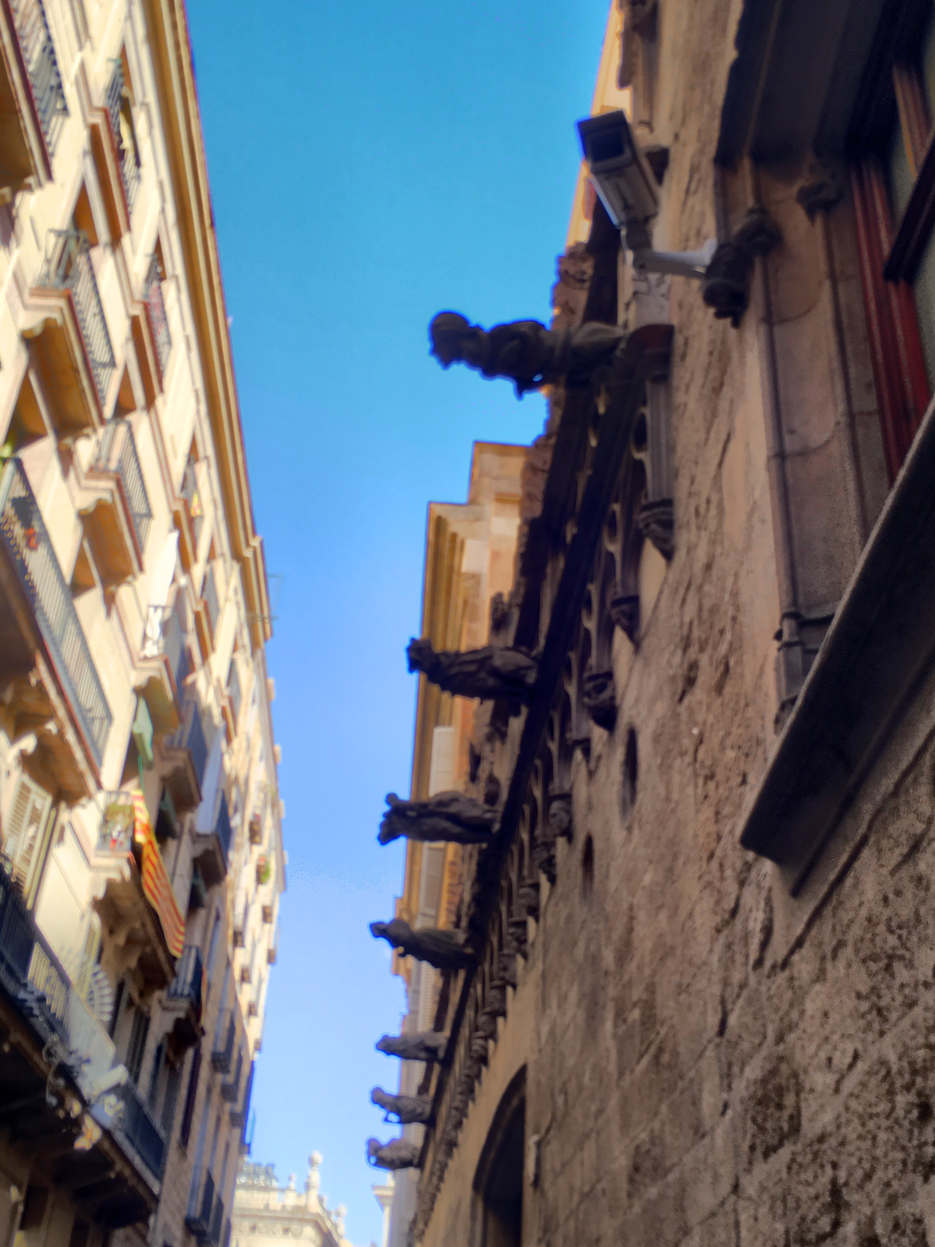 The plunge pool is minuscule, but we were the only ones on the roof besides a bar tender….so I had a nice drink and Lena got to cool off. We were then ready to explore the city. We are only a short distance from the oldest part of the city, the Gothic quarter. This is the area built in the Middle Ages, with narrow little streets that twist and turn and open on to squares, typically with a church or some other building of significance.