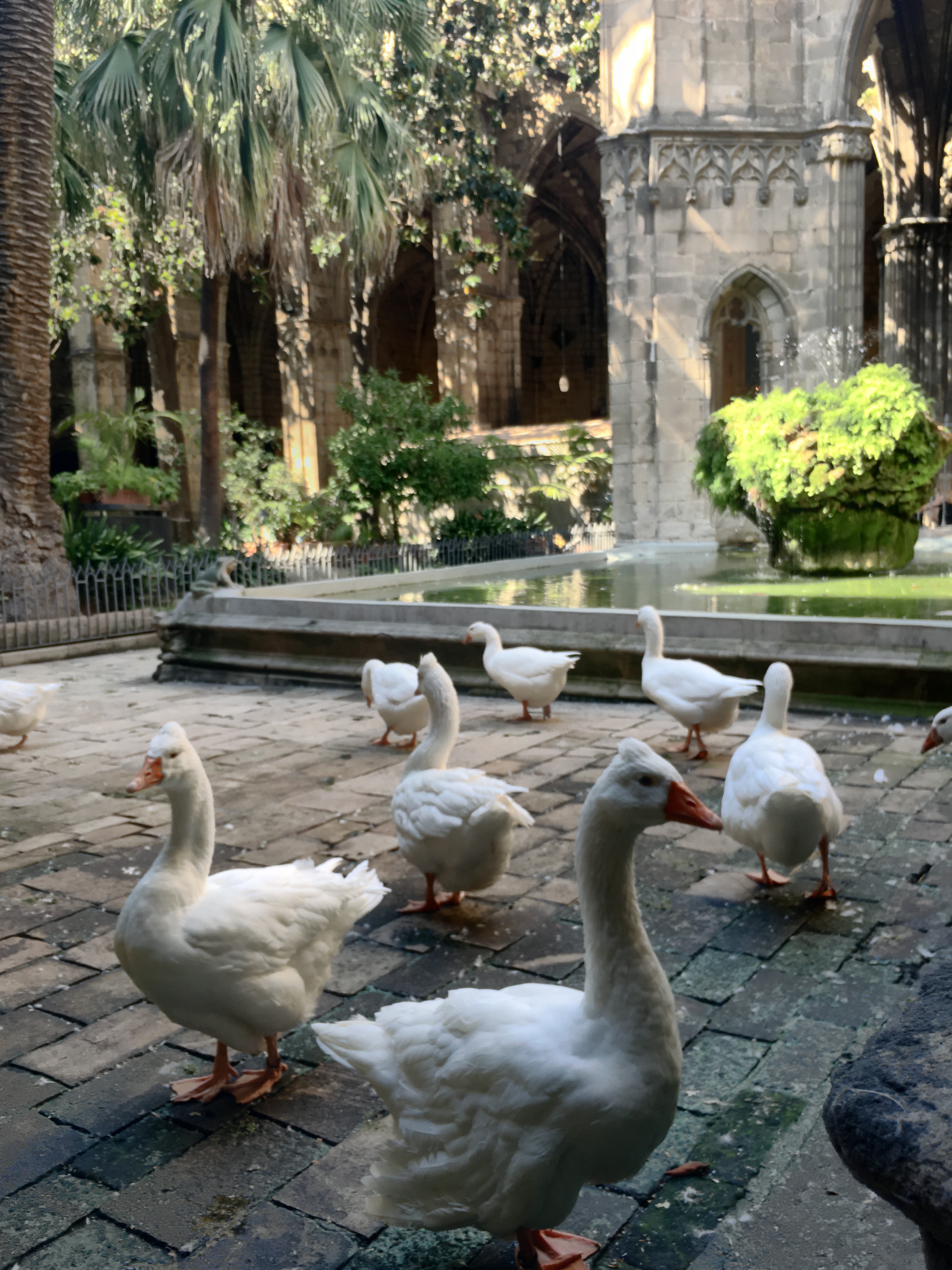 There is a lovely cloister built in 1448 that is the home of 13 white geese who live there in honor of St. Eulalia, who was 13 when she was killed by the Romans.