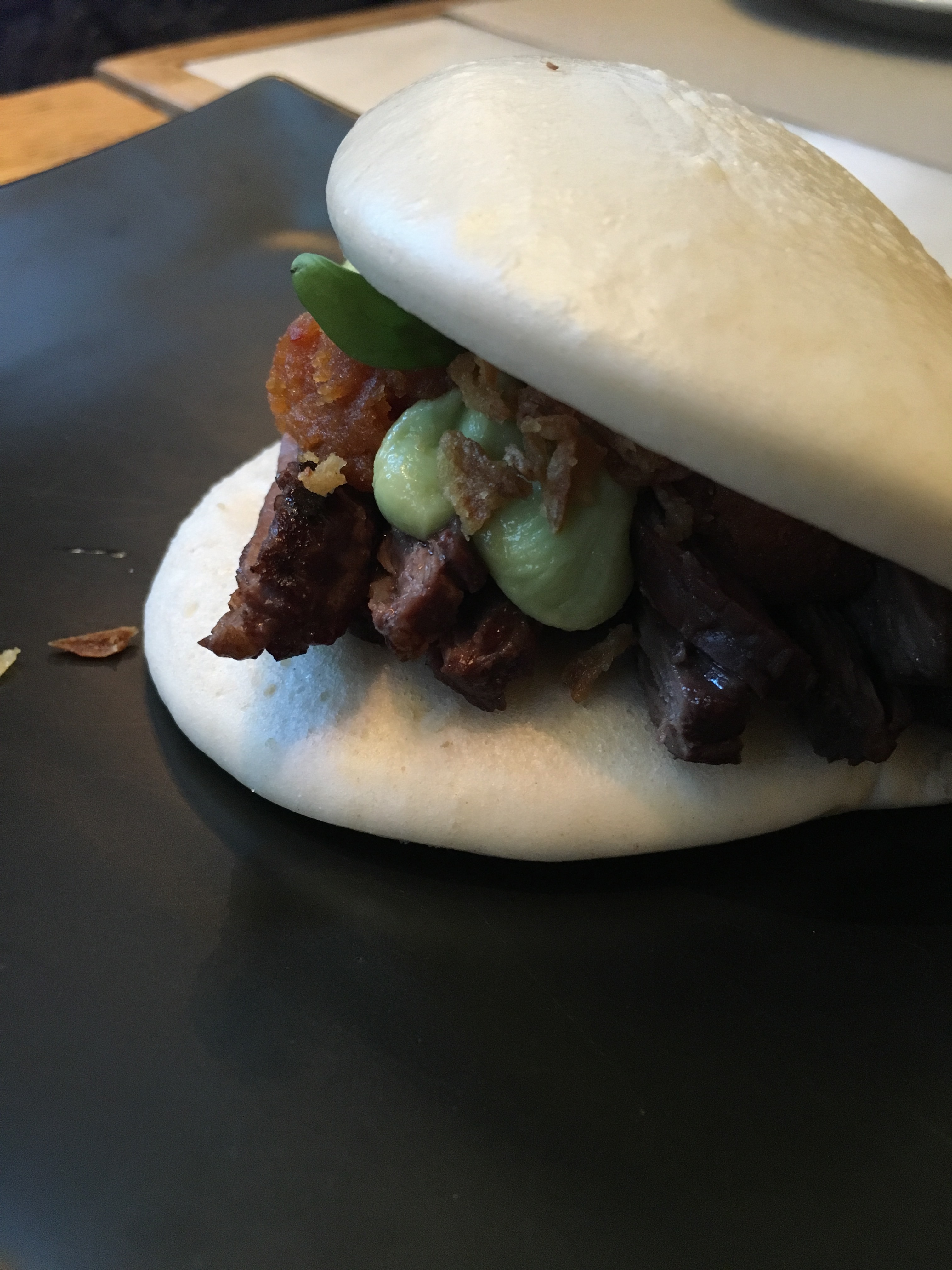 A beef and guacamole:bun