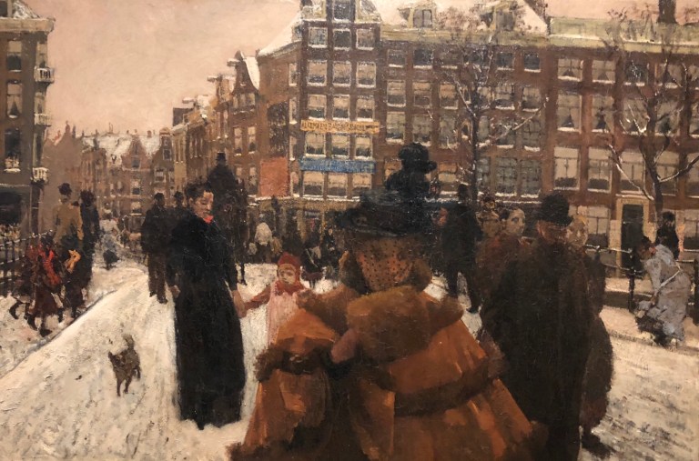 I was enchanted by this painting which looked more like a photograph to me, capturing a split second passing on an Amsterdam street