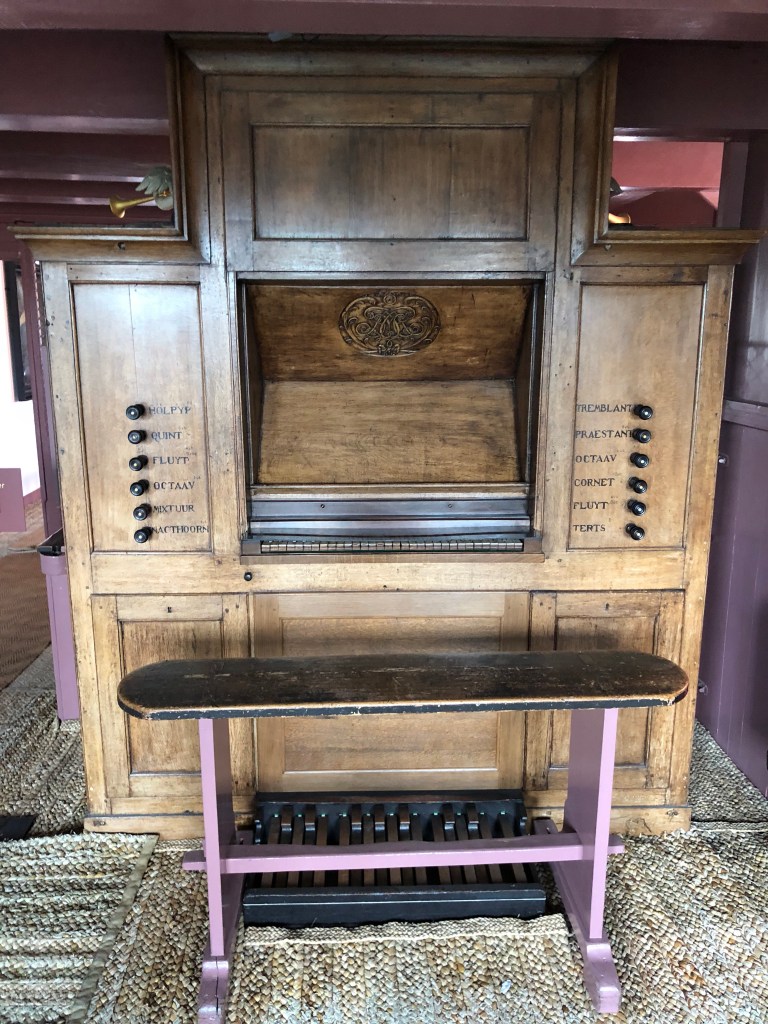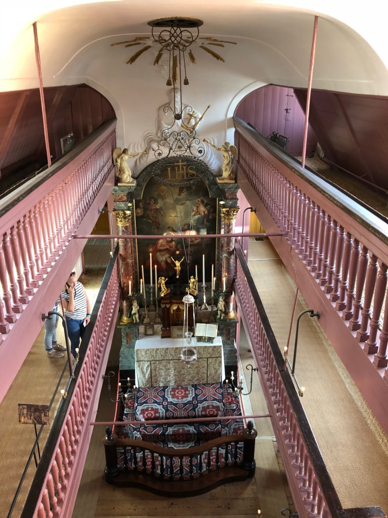 The bottom portion of the house depicts things as they would have been in the late 1600’s,  a typical merchant house along the canal.   But as you continue up through the house,  and ascend the final set of stairs, you turn the corner to find this astonishing little gem…a complete little Catholic Church–pews, an altar, an organ…two balconies…all within an attic.