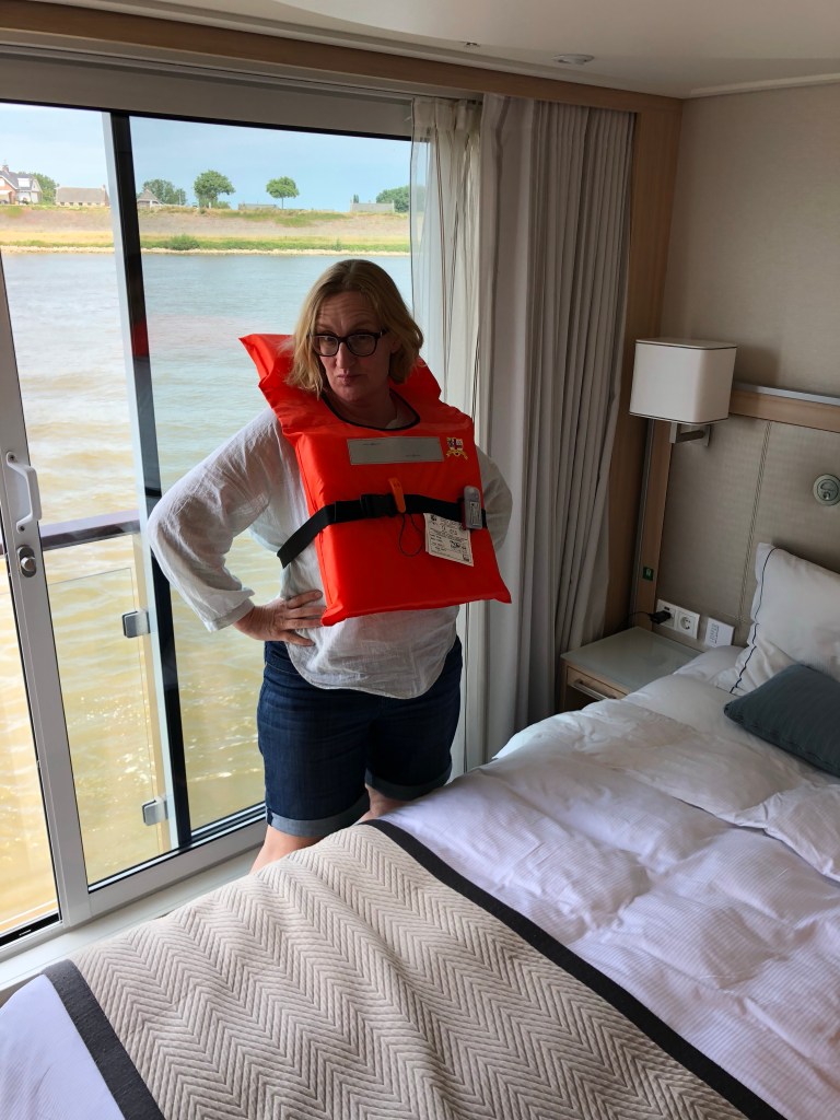 Back onboard the ship, it was time to perform a safety exercise at 2PM…we were assigned an area of the boat to report to with our life preservers. I think this is common on any type of water cruise, ocean or river. It was fairly painless, and we spent most of the afternoon sitting on our deck relaxing as we cruised down the river.