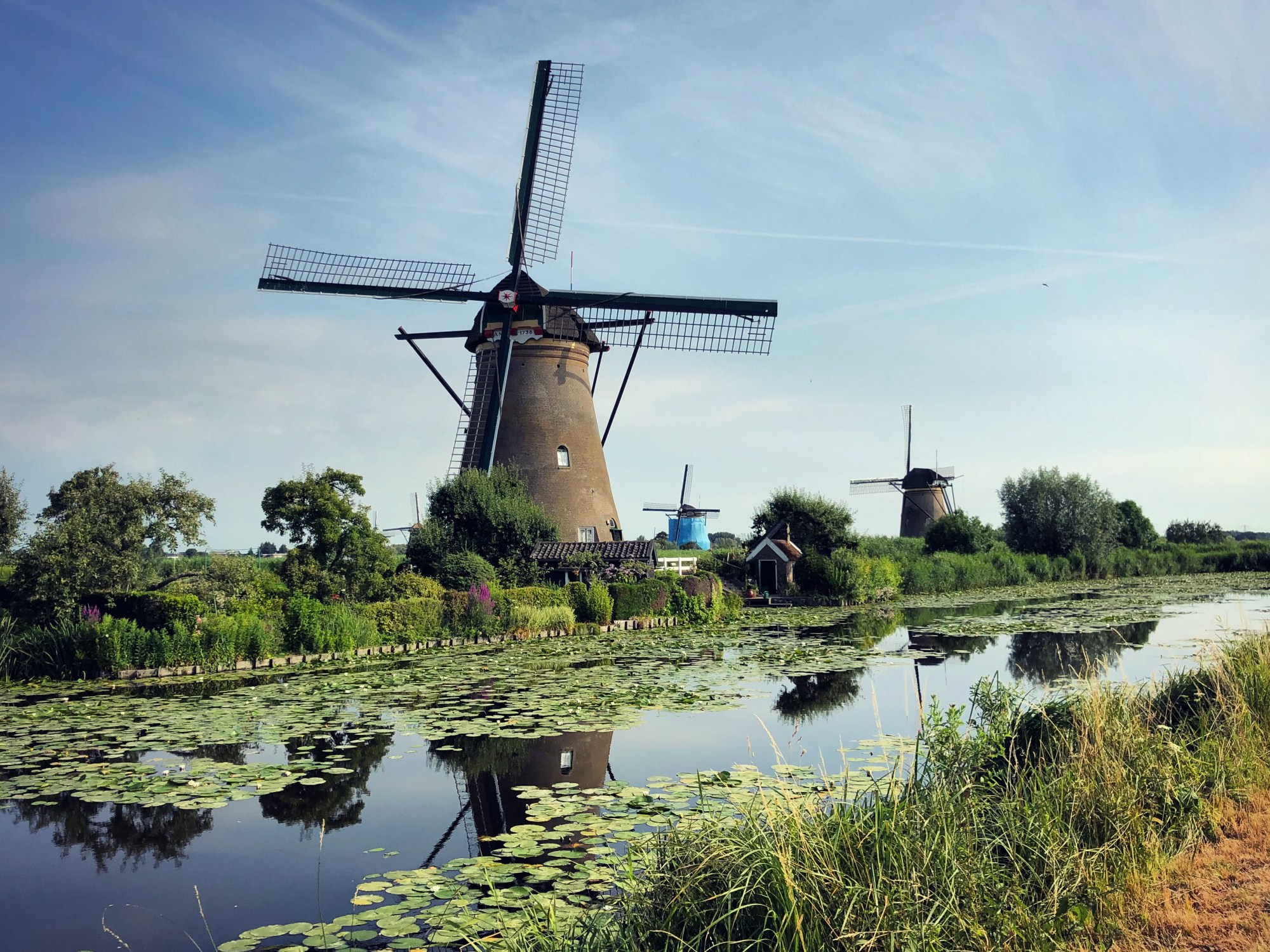 Our guide wasn’t much on words, but to be honest, there was little info to know about other than that the majority of the mills were built-in the mid 1700’s. They were used only as water pumping mills, to push water out into the river, as opposed to grinding mills such as sugar mills you see in the Caribbean. Everything you see in the photos below would be underwater, if not for the mills. Today, they have electric pumps that push the water out, but these old windmills are still 100% operational. People actually sign up to be part of a lottery system to live in the windmills. The government subsidizes the rent provided that the windmill tenant maintain the windmills at all times. All of that is interesting, but this stop was really just about riding bikes amongst one of the most picturesque places I’ve ever seen.