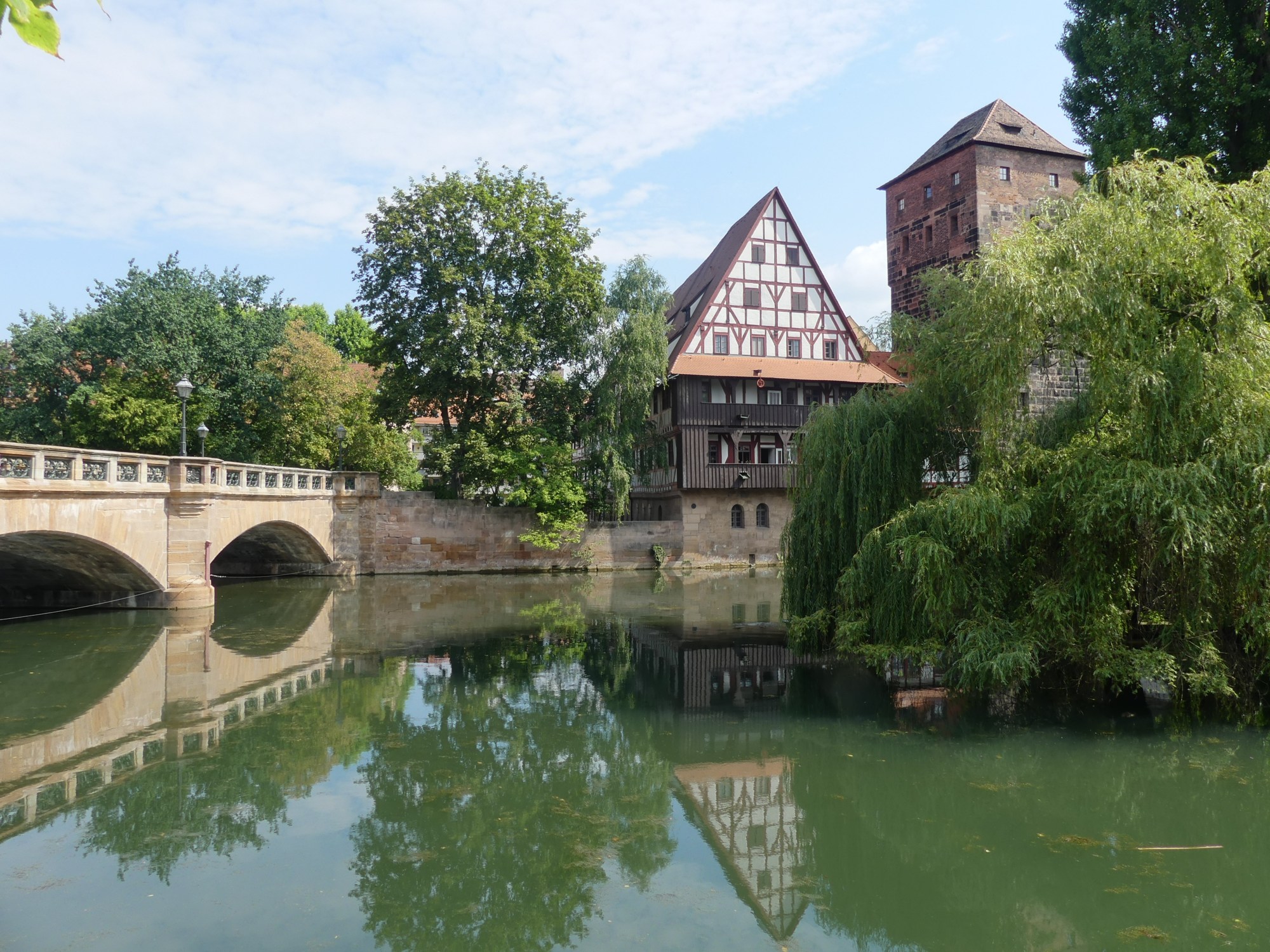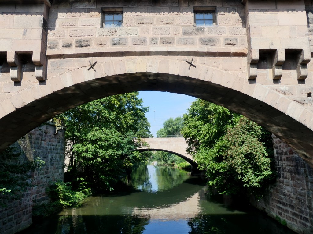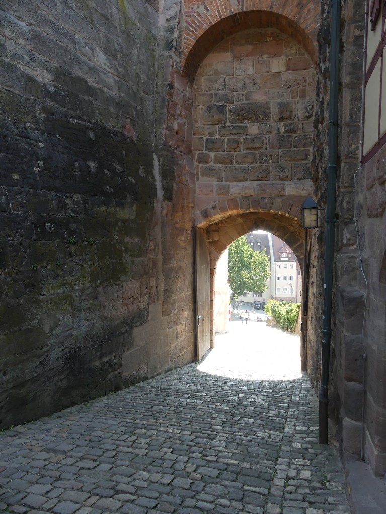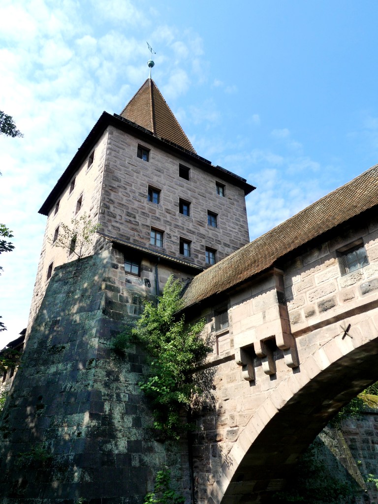 We then came across a pedestrian covered bridge crossing the river. What we later learned was that is the Henkersteg, or Hangman’s Bridge. Apparently, until the Age of Enlightenment (after 1715) every town had their own hangman who were typically socially excluded from the rest of the citizenry, as they were considered to be unholy and un-Christian. No one befriended or made contact with the lonely hangman. In Nuremberg, the open covered Hangman’s bridge (which was from 1457 but rebuilt in the 1950’s) leads to an enclosed portion of the bridge and connects to a stone tower, which is the Henker Haus, where the hangman lived (with his family) over the river. I’m pretty bummed that we didn’t know that you could tour the house and learn all about Nuremberg’s most famous hangman, Franz Schmidt. Mr. Schmidt performed over 390 executions and about the same number of punishments/torture sessions, and kept a diary in which he gives all of the details of his long, 45 year career. I’ve since gone down a worm hole and read a biography about Schmidt….he was feared, respected (and well-paid) for performing his violent job. Link to Henker Haus here: http://www.henkerhaus-nuernberg.de/