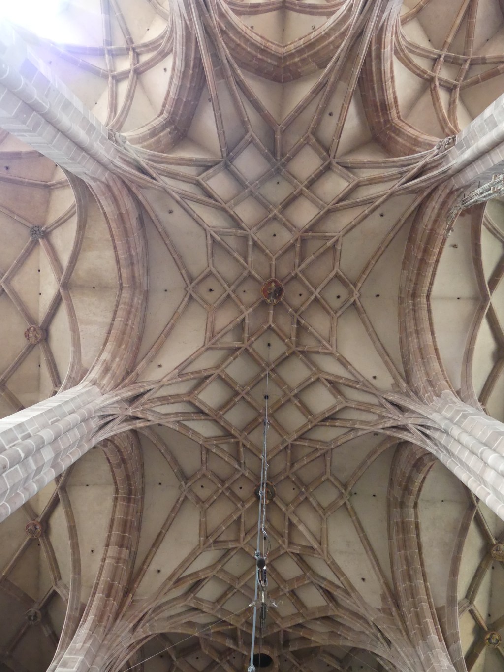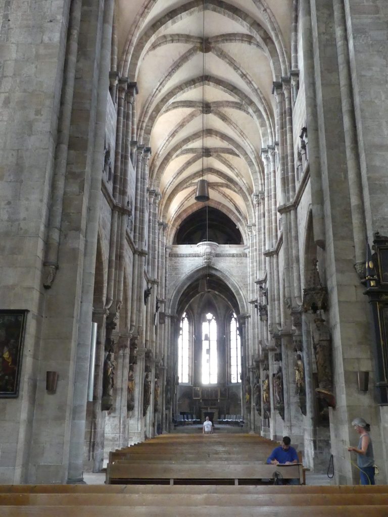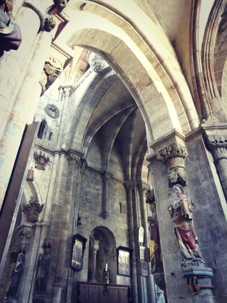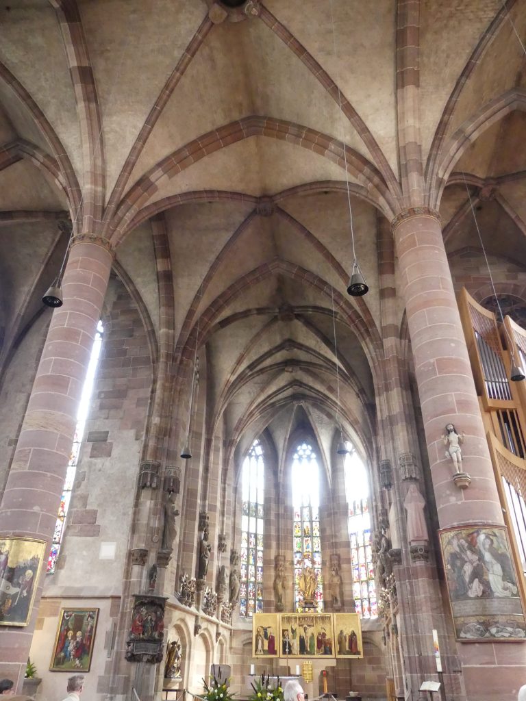 St. Lorenz is a beautiful gothic church, and it has an impressive front facade and rose window, but overall, I would say that the interior decorations stand out more than the architecture. For example, St. Lorenz possess the beautiful “Angelic Salutation” which hangs in the center of the choir.