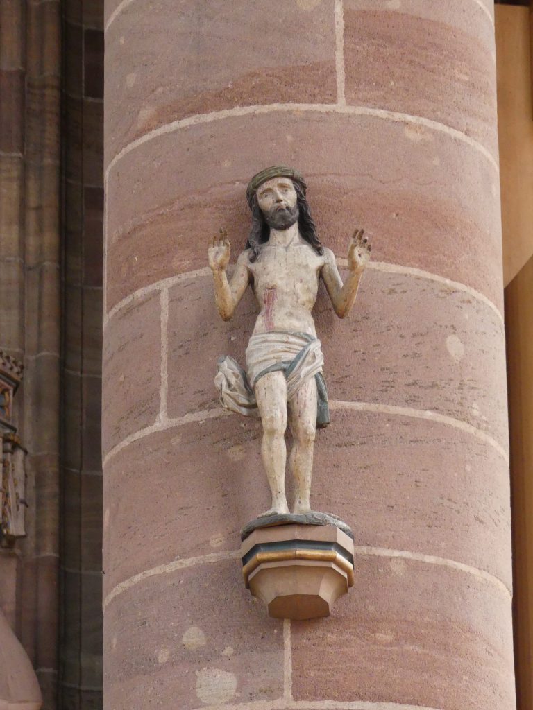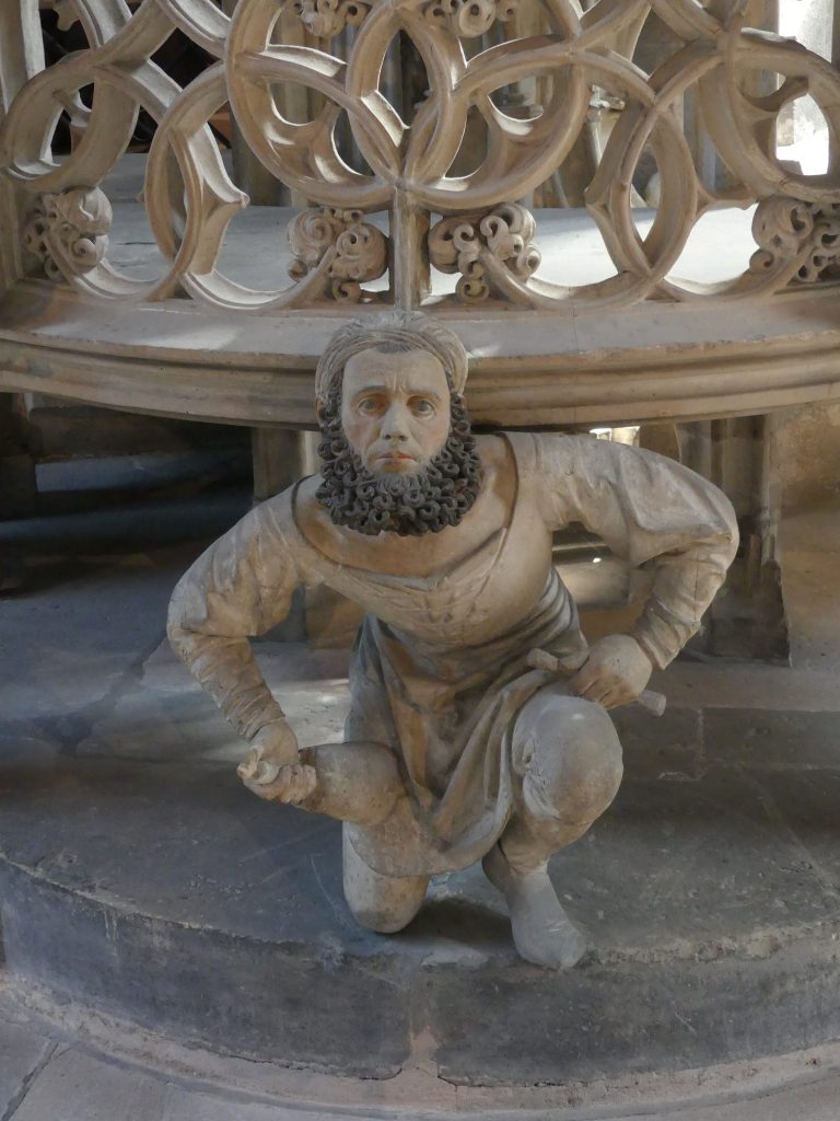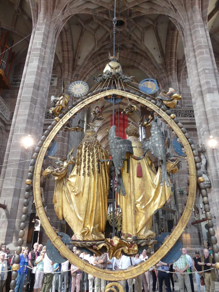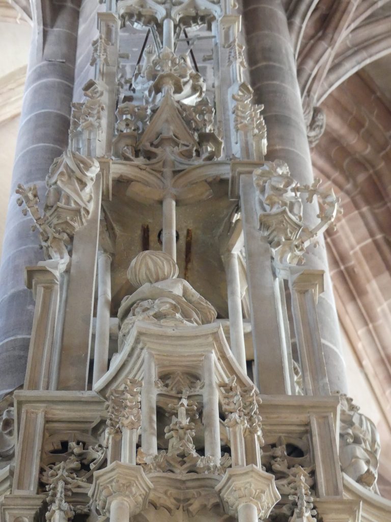 Besides the Angelic Salutation, there is another rather monumental sculptural piece at St. Lorenz…the 60 foot tall Tabernacle created in the 1490’s by sculptor Adam Kraft. This piece was also commissioned by a wealthy private citizen of Nuremberg. The massive sculpture, made to look like a gothic spire, depicts the passion of Christ.