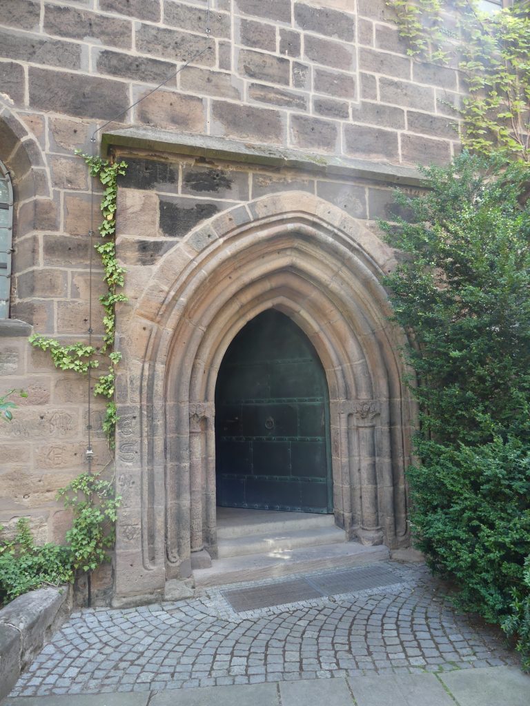 (#4 on the map) We also came across the very small, obscure church of St. Klara. Built in 1270, it’s one of the oldest sacred buildings in Nuremberg. It was originally built as a monastery church (Catholic) and then a protestant church after the reformation. Today it is an “open church” and serves as a place for people of all faiths to worship. Nurembergers or tourists can also go into the simply adorned church and meditate, relax and cleanse the mind from the hustle bustle of every day life.