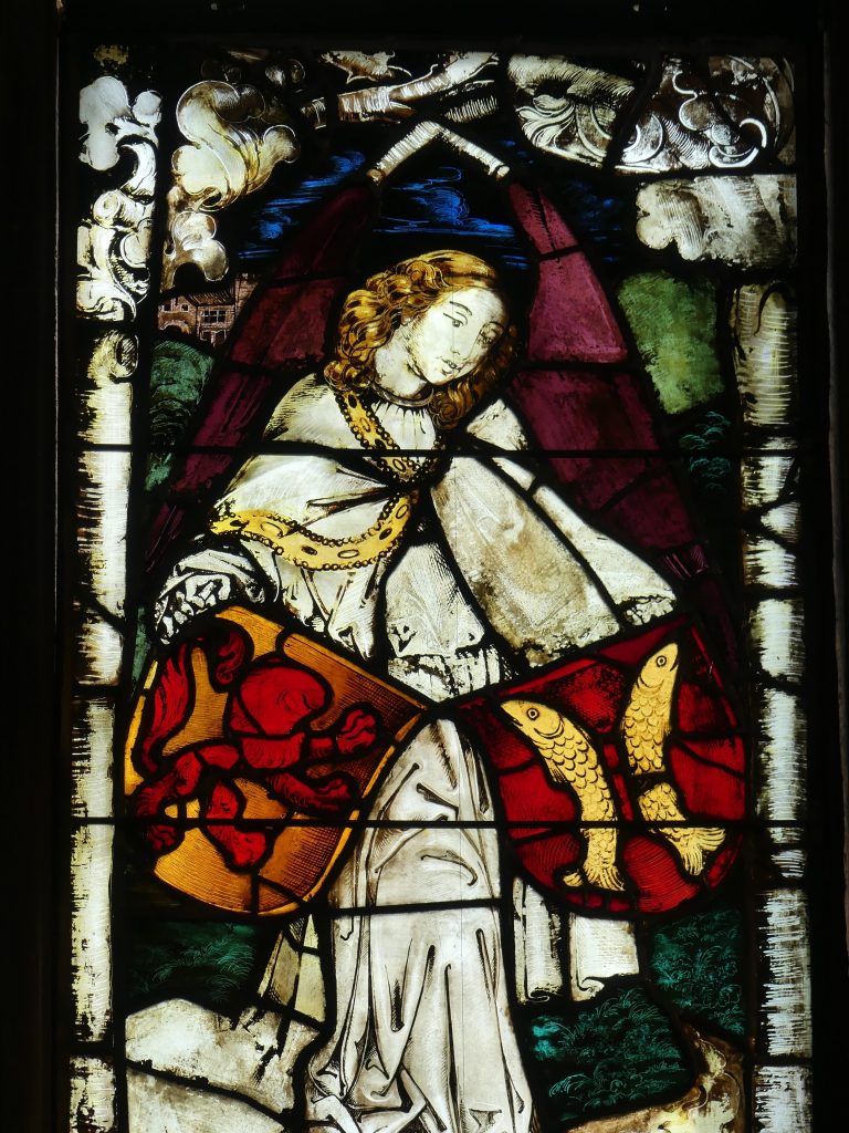 Below the stained glass window is the Tucher Epitaph, painted in an Italian style by on of Albrecht Durer’s pupils, Hans Süß von Kulmbach in 1513. St. Catherine and St. Barbara flank the Virgin Mary.