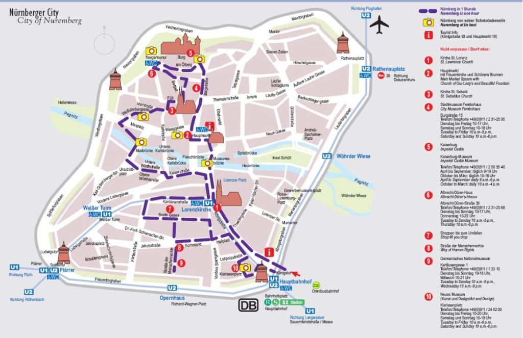 For the rest of our walking tour, I will reference the map below with the stops we made (labeled 1-7). Basically, we started outside St. Lorenz (#1) and then followed the Königstraße down to the city wall opposite the train station and back up to the main market outside of the Frauenkirche (Church of our Lady).