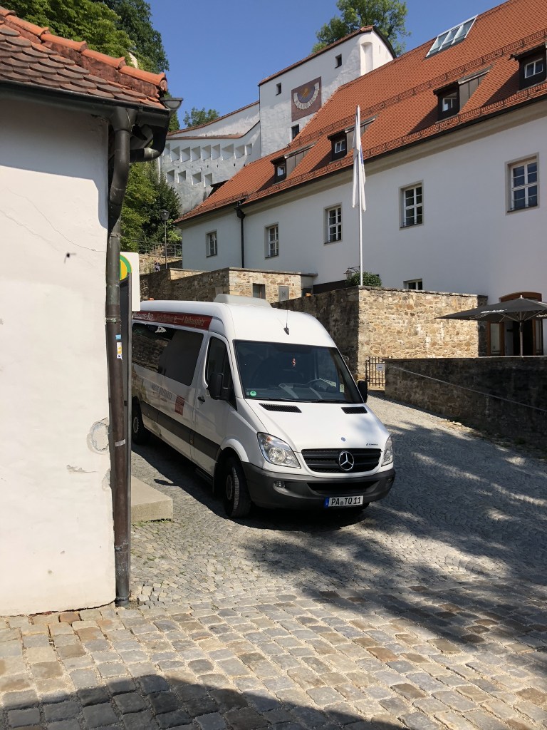 As a tourist, getting up to the Veste Oberhaus can be achieved the hard way, by climbing up a winding path through the woods, or you can take the easy way and jump on a shuttle bus (for a small fee) that will drop you just below the entrance (the bus leaves from a stop outside the old Town Hall). I think that ordinarily, had we been traveling by ourselves, we would have climbed. However, this river cruise style of traveling makes one very lazy and less energetic. We’ve gotten used to coaches waiting right beside the ship to whisk us away to our next destination. So, we took the shuttle bus.