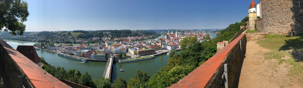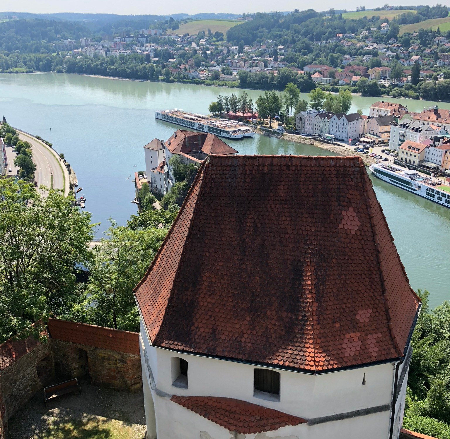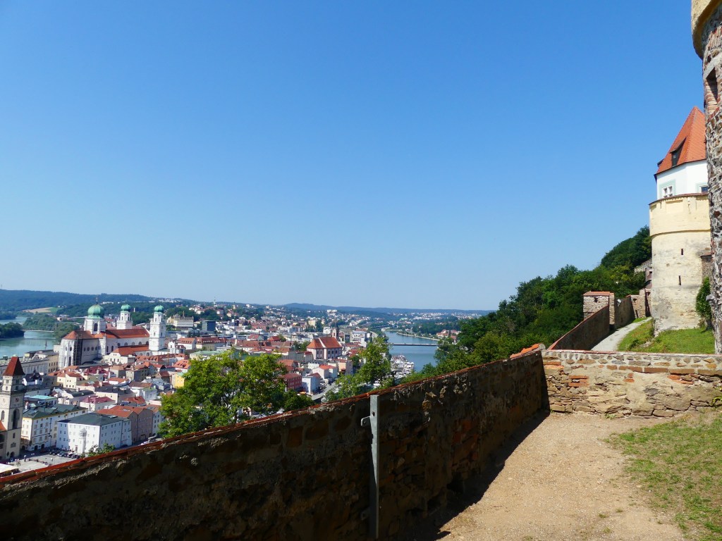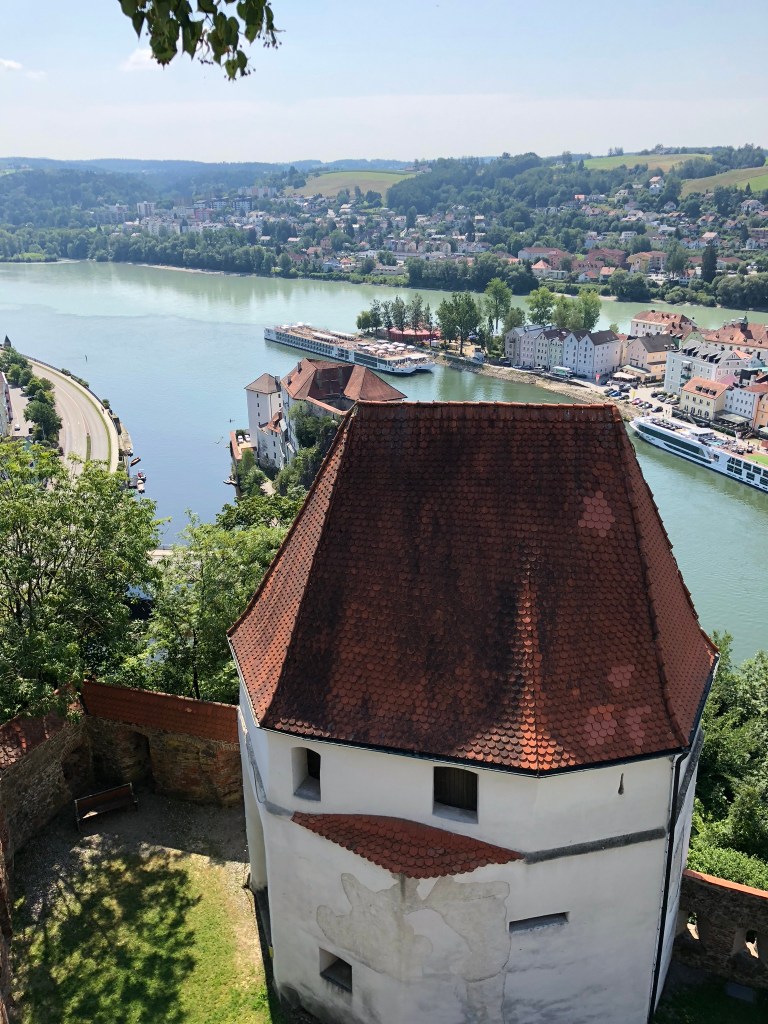 We strolled around a bit and enjoyed the spectacular views of Passau from the hilltop. Today’s view was the mirror image of what we saw from the Veste Oberhaus yesterday….and in fact, from the Mariahilf church, there is a great view of the old fortress.