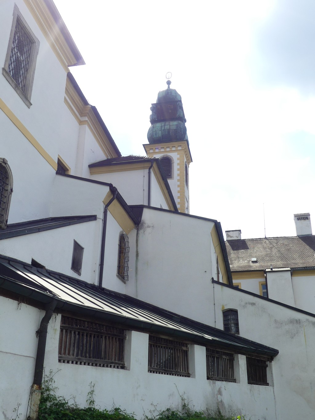Once you reach the top of the stairs, you find yourself in a sort of courtyard and of course, the baroque Mariahilf church. The interior of the church is fairly simple but has a magnificent gilded altar piece featuring the painting of Mary and Jesus that was the genesis of this whole complex.